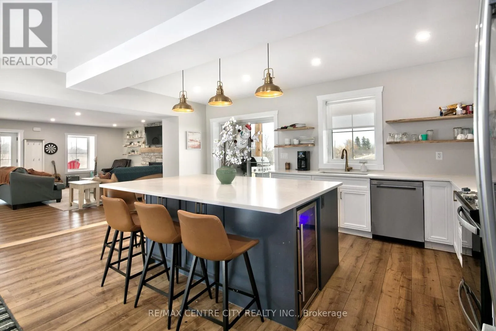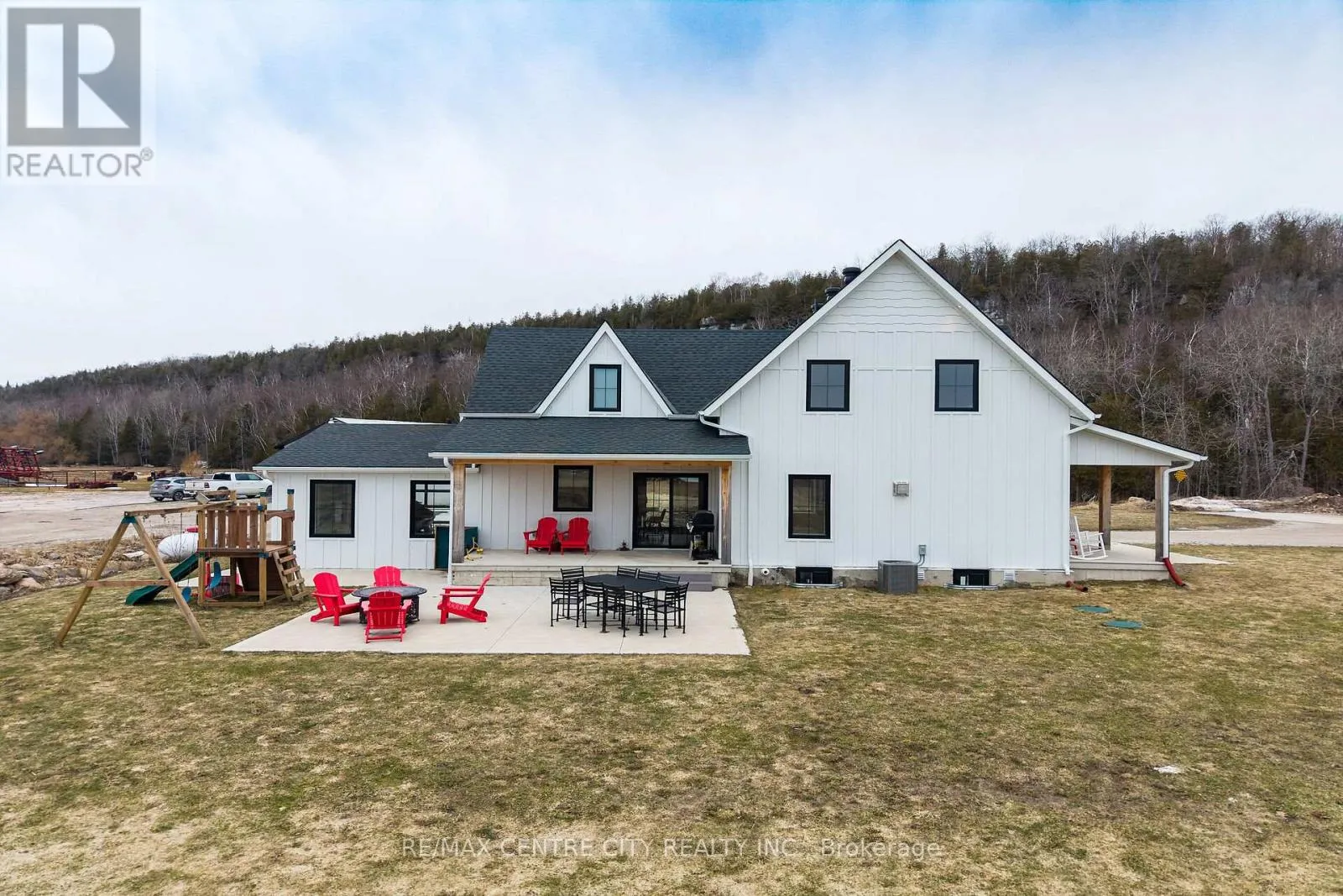 Cross Streets: Dawson Road and Sarawak Keppel Townline. ** Directions: This property is situated approximately 5KM West of Georgian Bay just South of Concession 20 between Wolseley and Kemble. Located at the end of a quiet dead-end road, this 149-acre farm offers privacy and beautiful views, with the Niagara Escarpment as a backdrop. There are 143 workable acres with a large portion of this being systematically tiled.The original 1870 farmhouse has been fully updated in 2024 with nothing left untouched and offers a nice mix of character and modern features. Inside you'll find all the modern comforts you'd expect including forced-air propane heating, central air, and on-demand hot water. The kitchen includes a large island with seating for six and patio doors that lead to a spacious side deck. The main floor also features details such as the natural stone propane fireplace, deep window sills, and a powder room.Upstairs, there are three bedrooms, a four-piece bathroom with a soaker tub and glass shower, and a large laundry room.The attached garage includes a glass overhead door, large windows, and a finished concrete floor. The basement is clean, dry and spray foam insulated.Outside, there are covered verandahs, patios, a propane fire table, and a stone-lined creek that runs year-round. Additional buildings include a very large bank barn with high ceilings and tall doors for getting equipment in and out, a large Quonset hut measuring 38 x 100 ft with sliding end doors, and a 38 x 40 ft heated shop with a good concrete floor.Even though it feels tucked away, you're still close to it all-near the Bruce Trail, scenic lookouts, and snowmobile/ATV trails, Wiarton and Owen Sound are just a short drive away. This is a well-rounded farm property that offers a large piece of workable land and a completely renovated move-in ready home, a shop to work in and a large barn that could be fit for many different animals. This farm offers a peaceful setting; close to Georgian Bay. (id:27476)