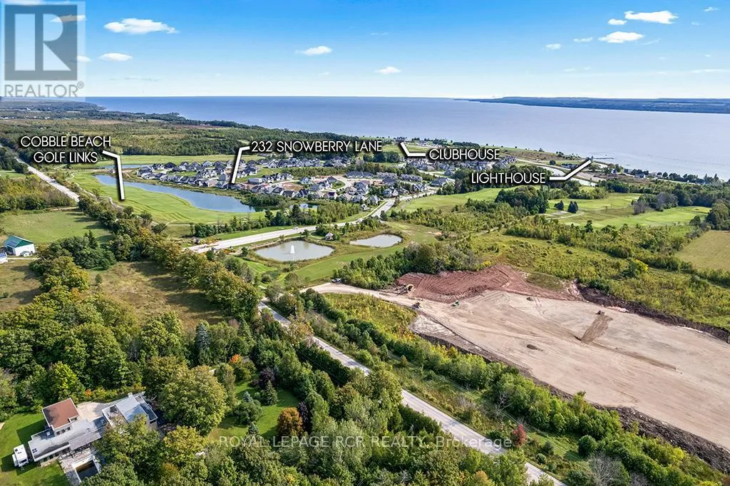 Cross Streets: Grey Road 1 / Cobble Beach Drive. ** Directions: Grey Road 1, East on Cobble Beach Dr., North on Snowberry Lane to #232. The ultimate in luxury living in this beautifully built bungalow backing onto the 12th hole in the cobble Beach Golf Resort, a waterfront community on the shores of Georgian Bay. This home operates with a newly installed $50,000 solar panel system, including a Tesla Powerwall that acts as a back-up generator and an EV charger. Make this your new home with over 3600 sq ft of finished living space, including a professionally finished basement with 2 spare bedrooms, a wet bar, steam room, elegant wine cellar, and plenty of entertainment space. Designed with elegance and comfort in mind, this 4-bed, 3-bath home features a stunning blend of functional design and modern finishes. The main floor offers 9 and 10 foot ceilings with open concept living, a stone fireplace, and large windows bringing in natural light. A gourmet kitchen with granite countertops, huge island with breakfast bar, and ample storage perfect for entertaining or casual family meals. The main floor primary suite is a luxurious retreat featuring a spa-inspired ensuite, a spacious walk-in closet and a walk-out to your own private deck. An additional main floor bedroom faces the front of the house alternatively offering a spacious office. The large covered front porch offers a welcoming space for your morning coffee as the sun rises, while your choice of multiple backyard decks with golf course views are perfect for watching the sunset as your day winds down. Quiet, friendly, and desirable neighbourhood. Enjoy access to all the resort-style amenities Cobble Beach is known for: an award-winning golf course, beachfront access, tennis courts, spa, fitness centre, nature trails, winter sports, and fine dining at the clubhouse all just steps from your door. Whether you're looking for a full-time residence or a 4-season escape, this is your opportunity to own in one of Ontario's most sought-after lifestyle communities. Book your private showing today and experience luxury living at Cobble Beach! (id:27476)