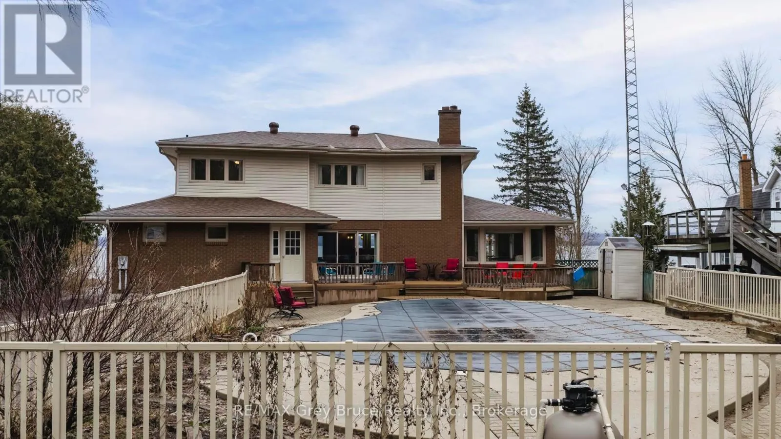 Cross Streets: Balmy Beach Road/Cottage Lane. ** Directions: North on Balmy Beach Road, east on Cottage lane to home on the west side of road. YOU AREN'T GOING TO WANT TO MISS THIS ONE! Situated on a quiet street in a highly sought-after neighbourhood just outside the city limits, this distinguished 4 + 2 bedroom, 4-bathroom residence offers exceptional 180-degree views of Georgian Bay and a refined blend of comfort, functionality, and lifestyle appeal. The well-appointed layout is designed to accommodate both family living and entertaining, featuring generous principal rooms, a double car garage, and a spacious lower level with excellent potential for an in-law suite. The outdoor space is equally impressive, showcasing a beautifully updated inground pool and a substantial 20 X 27 detached shop, ideal for additional storage, hobbies, or workspace. Recent mechanical upgrades, including a new furnace and air conditioning system installed in 2025, provide added confidence and efficiency. This is a rare opportunity to acquire a turnkey property in a prime location offering both seasonal privacy and panoramic waterfront views. (id:27476)
