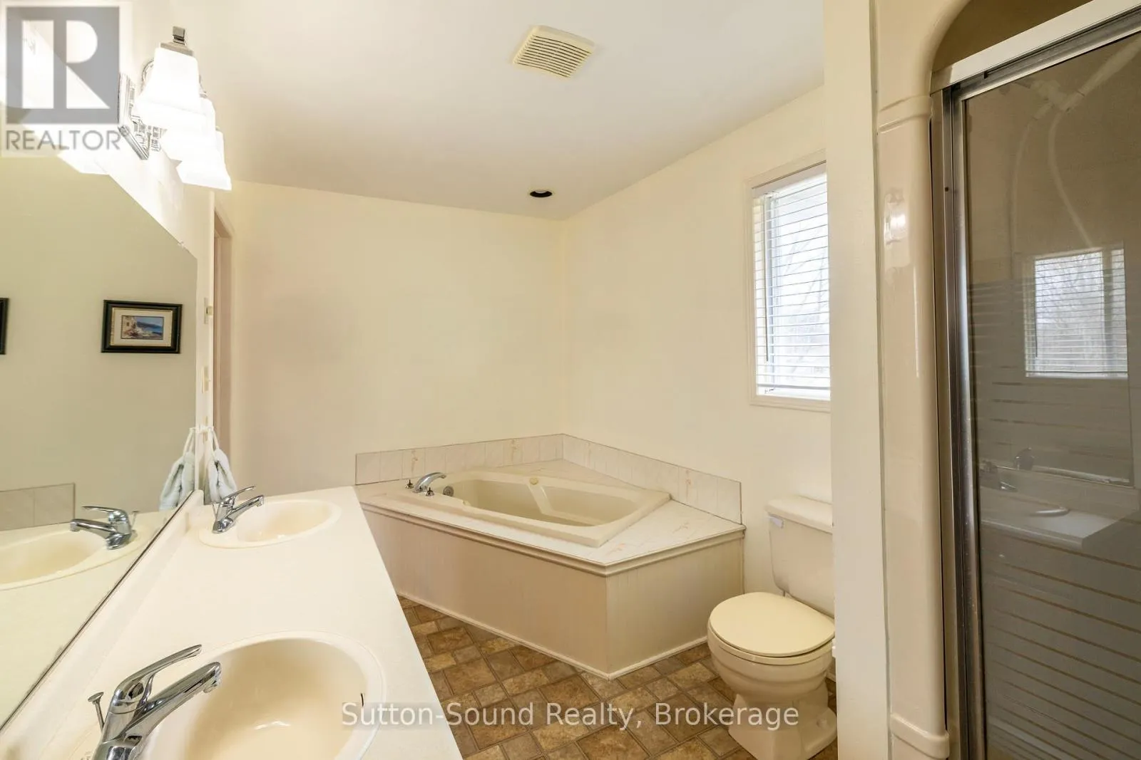 Cross Streets: Finden Street and 19th Street West. ** Directions: From Somers St East on 19th Street West to Finden Street. Property on corner of Finden Street and 19th Street West-Georgian Bluffs. Sought-After GEORGIAN BLUFFS Neighbourhood - Just Outside City Limits--Welcome to this Bright and Spacious Traditional 3-Bedroom, 2.5-Bath Family Home in one of Georgian Bluffs' most Desirable Locations-a minute from the city limit, yet surrounded by Nature and nearby Recreation. Step into a large Foyer leading to an inviting Living/Dining Room combination with gleaming hardwood floors-perfect for family gatherings. An additional cozy Den with a Wood-Burning Fireplace adds warmth and charm. The spacious Eat-in Kitchen features Granite Counters, Peninsula Island as well a Walk-out via French Doors to an updated deck appreciating the quiet landscape. A side entrance Laundry/Mudroom connects conveniently to the Oversized Garage as well a 2-Piece Bath completes the main level. The upper level features an expansive Primary Suite with a 3-Piece Ensuite and Walk-in Closet. Two additional Generous Bedrooms, both with Double Closets along with a massive Main 5-Piece Bath complete with Double Sinks, Jet Tub, and a Walk-in Shower. The partially finished basement includes a Large Rec Room, a Common Area ideal for an Office or Tech Space, and an enormous Utility/Storage room. Recent updates include a new furnace (2016) and shingles replaced approximately 6-7 years ago. Situated in a PRIME GEORGIAN BLUFFS LOCATION, this home is just a short walk to Kelso Beach, the Marina, the Harbour, and forested Trail Systems-a perfect Balance of Convenience and Outdoor Living. Space, Comfort, and Location make this property Perfect for your Family's Next Home! (id:27476)
