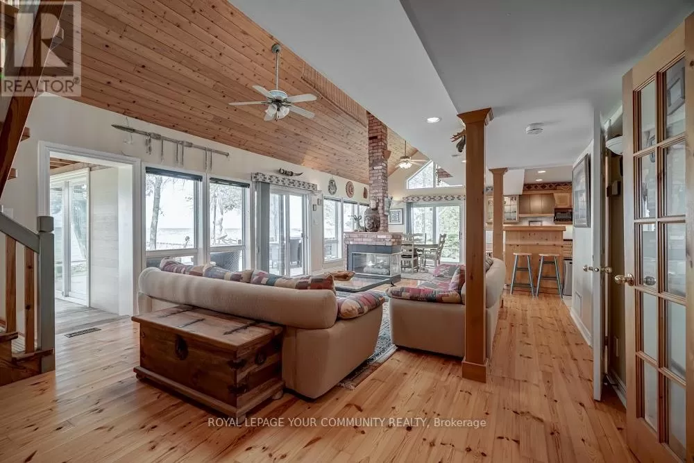 Whitefish Rd & Eagle Rd Escape to your dream waterfront getaway at 537 Eagle Rd on Georgina Island in Lake Simcoe! This stunning westerly-facing, 4-season waterfront cottage offers approximately 80 feet of prime shoreline and captivating sunset views. Designed for family enjoyment and entertaining, the cottage features a spacious eat-in kitchen, an open-concept living area with cathedral ceilings, and breathtaking views from every angle. Unwind in the bright sunroom or step out from the dining room onto the expansive L-shaped cedar deck perfect for all-day sun and outdoor entertaining. Gather around the fire pit for cozy evenings by the water. The primary bedroom offers incredible lake views, while the recreation room provides the ultimate in relaxation with a hot tub, sauna, and separate shower. With 5 bedrooms you will always have enough room for your family and guests. Bedrooms are well sized and the large Primary Bedroom is a sanctuary boasting views of the lakefront. Custom-built by the original builder for personal family use, this home showcases quality craftsmanship throughout. Included are two lots, with a 40' x 30' custom garage located directly across the road from the waterfront property. Accessible by boat or car ferry, Georgina Island offers municipal garbage/recycling services and a land lease with the Chippewas of Georgina Island in place until 2062. Enjoy boating, fishing, windsurfing, kiteboarding, or simply floating your cares away. Explore nearby destinations like Barrie, Orillia, Jacksons Point, Beaverton, Lagoon City, and Lake Couchiching all offering lakeside festivals, shopping, and year-round recreation. A true four-season lakeside retreat combining comfort, relaxation, and an unbeatable waterfront lifestyle! (id:27476)