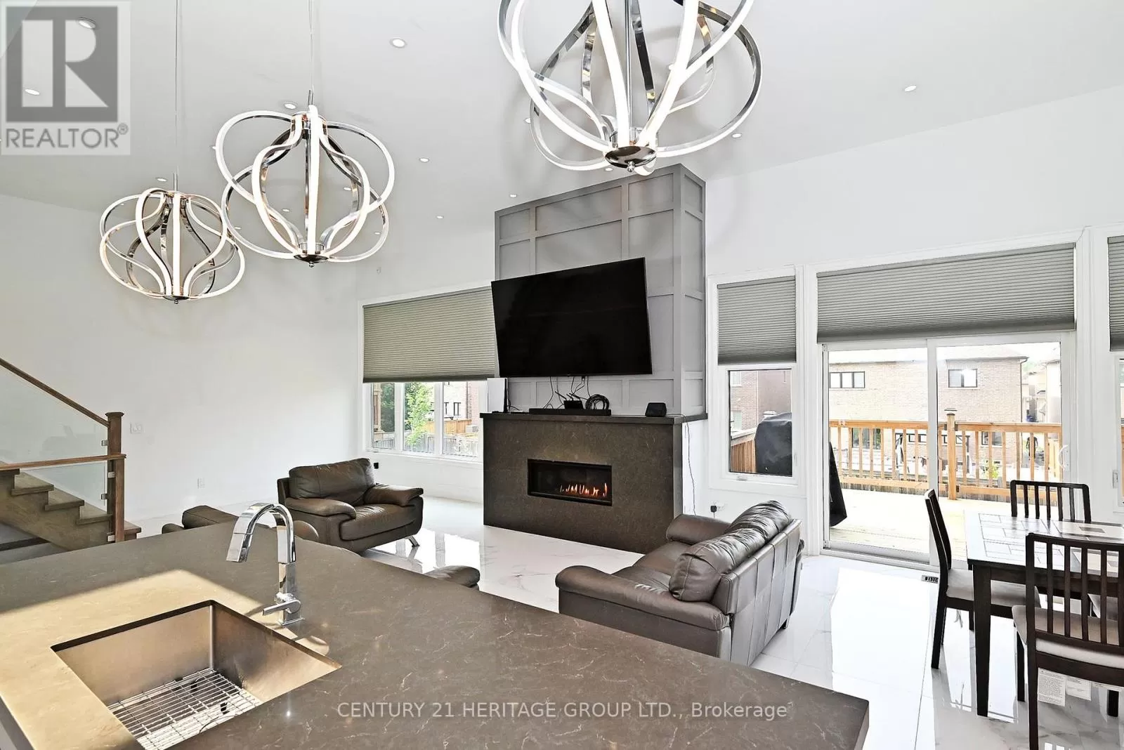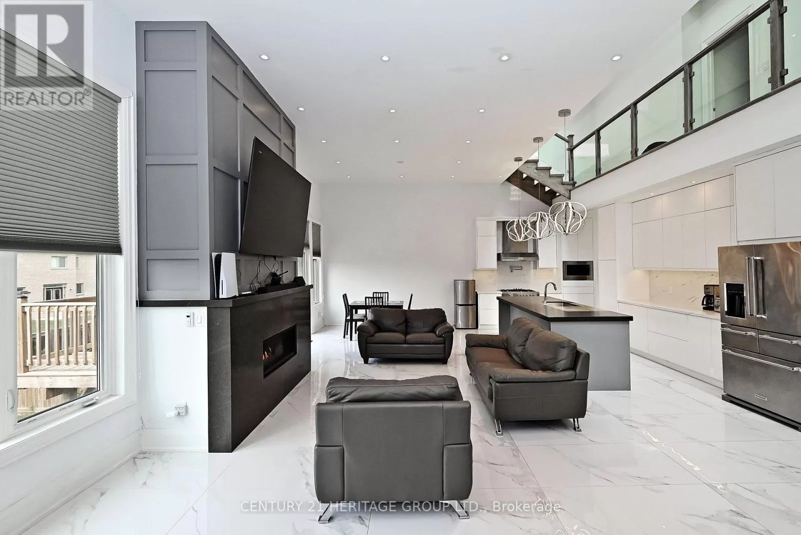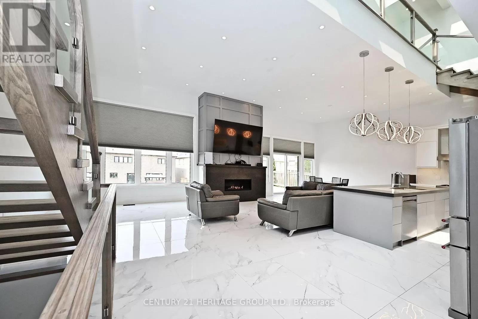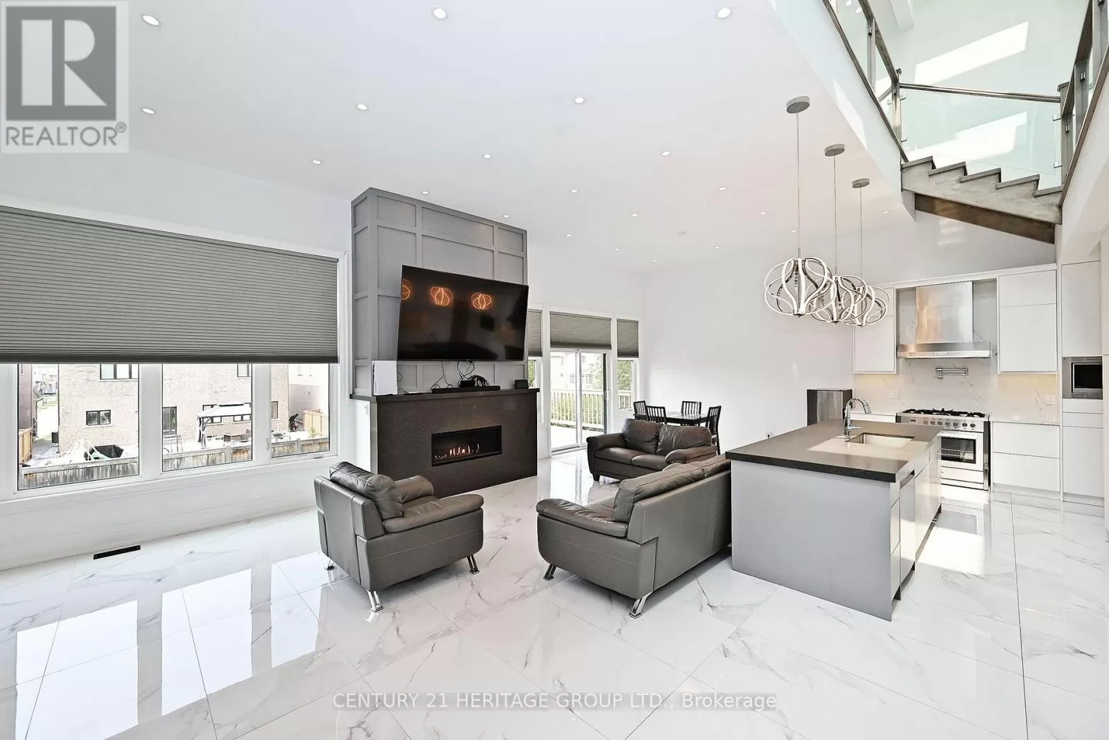 Metro Rd N & Church St Discover luxury living in this exquisite, custom-built masterpiece, spanning 3,122 sq ft with a fully finished walk-out basement. The open-concept main floor dazzles with soaring 12-foot ceilings, sleek ceramic tile flooring, and a striking oak and glass staircase leading to the upper level. The chef-inspired kitchen is a showstopper, featuring premium stainless steel appliances, modern push-open cabinetry, elegant quartz counter tops and backsplash, and a spacious centre island with a deep sink perfect for entertaining. Cozy up by the stunning gas fireplace with a quartz surround, framed by expansive windows that flood the home with natural light. Upstairs, cathedral ceilings elevate the bedrooms, complemented by luxurious quartz-finished bathrooms. (id:27476)