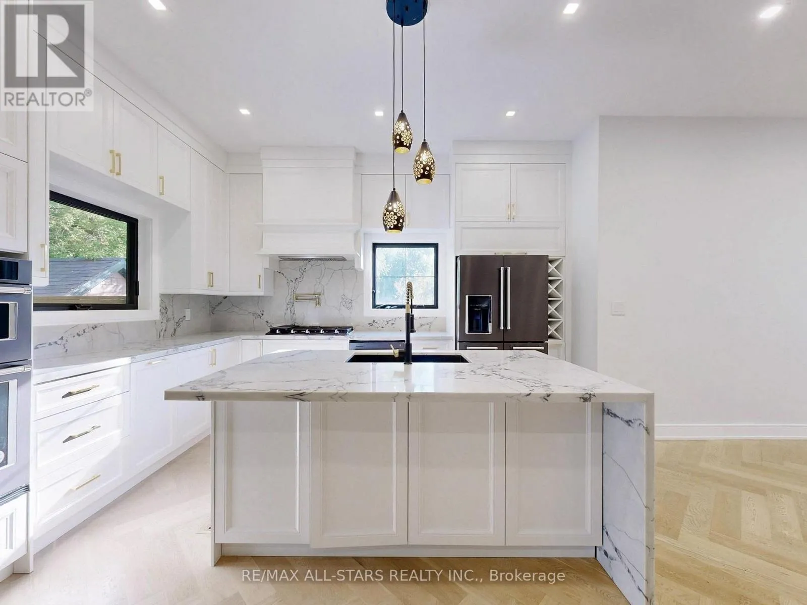 The Queensway to Glenwoods Built in 2022, this stunning custom home on full-service lot with Lake Simcoe access. Situated on a deep 50' x187' lot, this custom-built two-storey home was designed with a focus on natural light and modern living. The main level features an open-concept layout anchored by a chef's kitchen with premium finishes. The fabulous premium kitchen is open concept and shares a stunning gas fireplace with the dining area. a large library features a 4 piece ensuite allowing it to double as a guest room. Upstairs, the massive great room with skylit vaulted ceilings will accommodate family, friends and all things to entertain. The spectacular primary bedroom features a heated floor and heated towel rack as well as a rainfall and steam shower and separate tub complete the pampering! The finished basement includes two separate living spaces: a nanny suite and a fully self-contained apartment, both equipped with full kitchens and baths and personal laundry facilities making it Ideal for multigenerational living or income potential. Outside there is a double-wide driveway with parking for a dozen cars, and a large detached garage. Ownership includes optional low fee membership to two private beaches and a boat launch with direct entry to Lake Simcoe-perfect for boating, swimming, and year-round recreation. (id:27476)