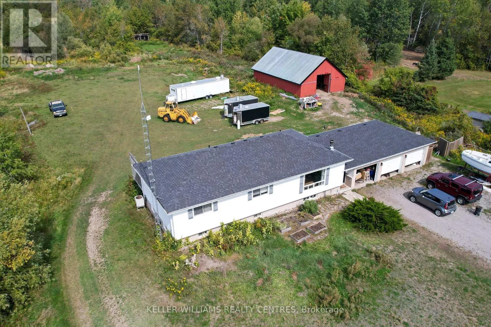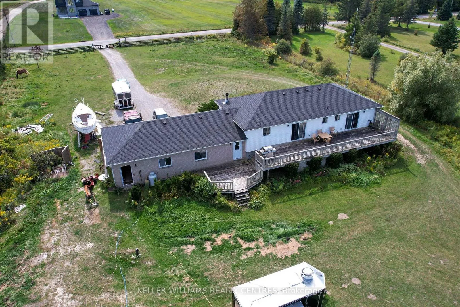 Cross Streets: Highway 48 / Frog St. ** Directions: Highway 48 to Frog St. 3 Bedroom Bungalow on spectacular 10.62 Acres with Horse Barn and Pond and a 3 Car Garage. This Home offers an unparalleled blend of comfort, style and nature. The Kitchen features Corian Countertops and a Breakfast Bar. Enjoy formal dining in the spacious Dining Room where double doors open to the Backyard. The Primary Bedroom also features double doors leading to a sprawling multi-level Deck, plus a renovated 3-piece Ensuite. The insulated 3-car garage provides plenty of space for vehicles, toys and hobbies. Outdoors, immerse yourself in natural beauty with a Pond and sweeping panoramic views from every angle.This one-of-a-kind Property is a rare opportunity to own a private retreat with unmatched scenery. (id:27476)
