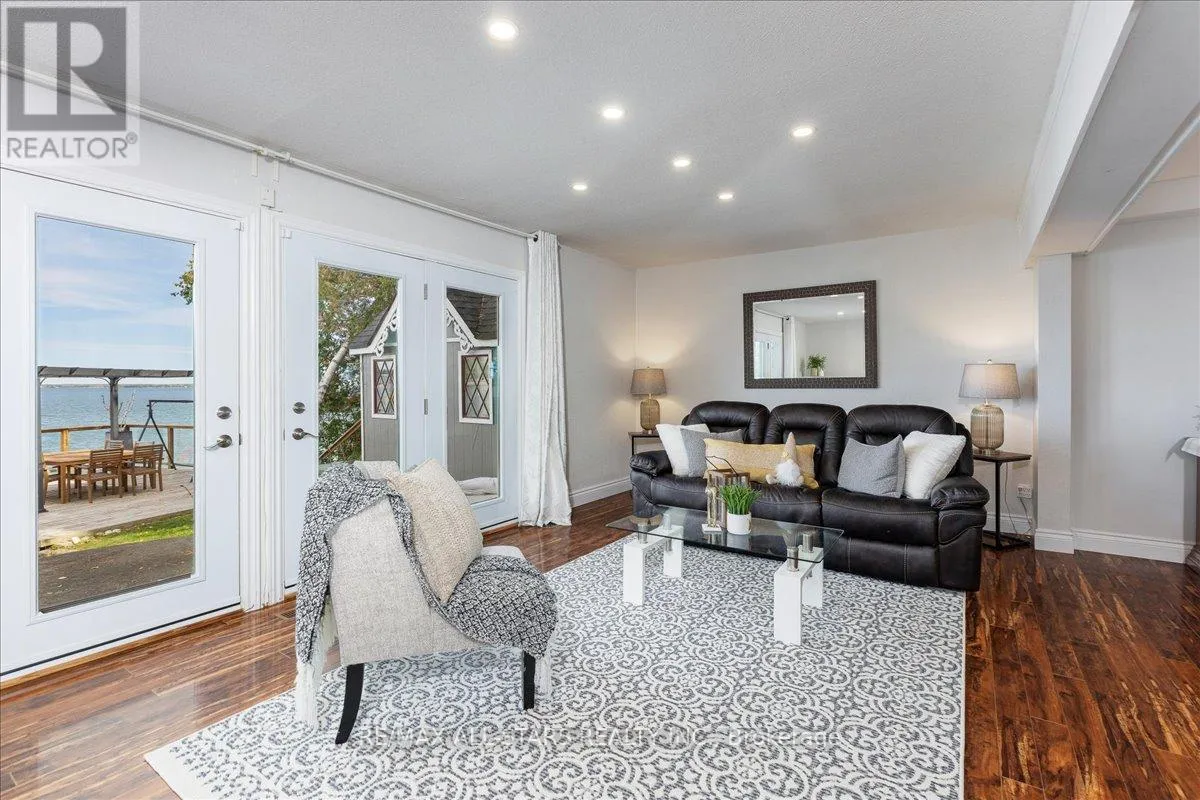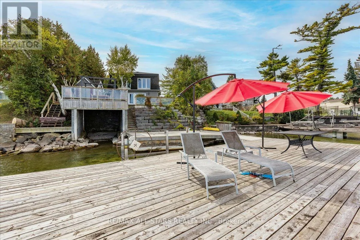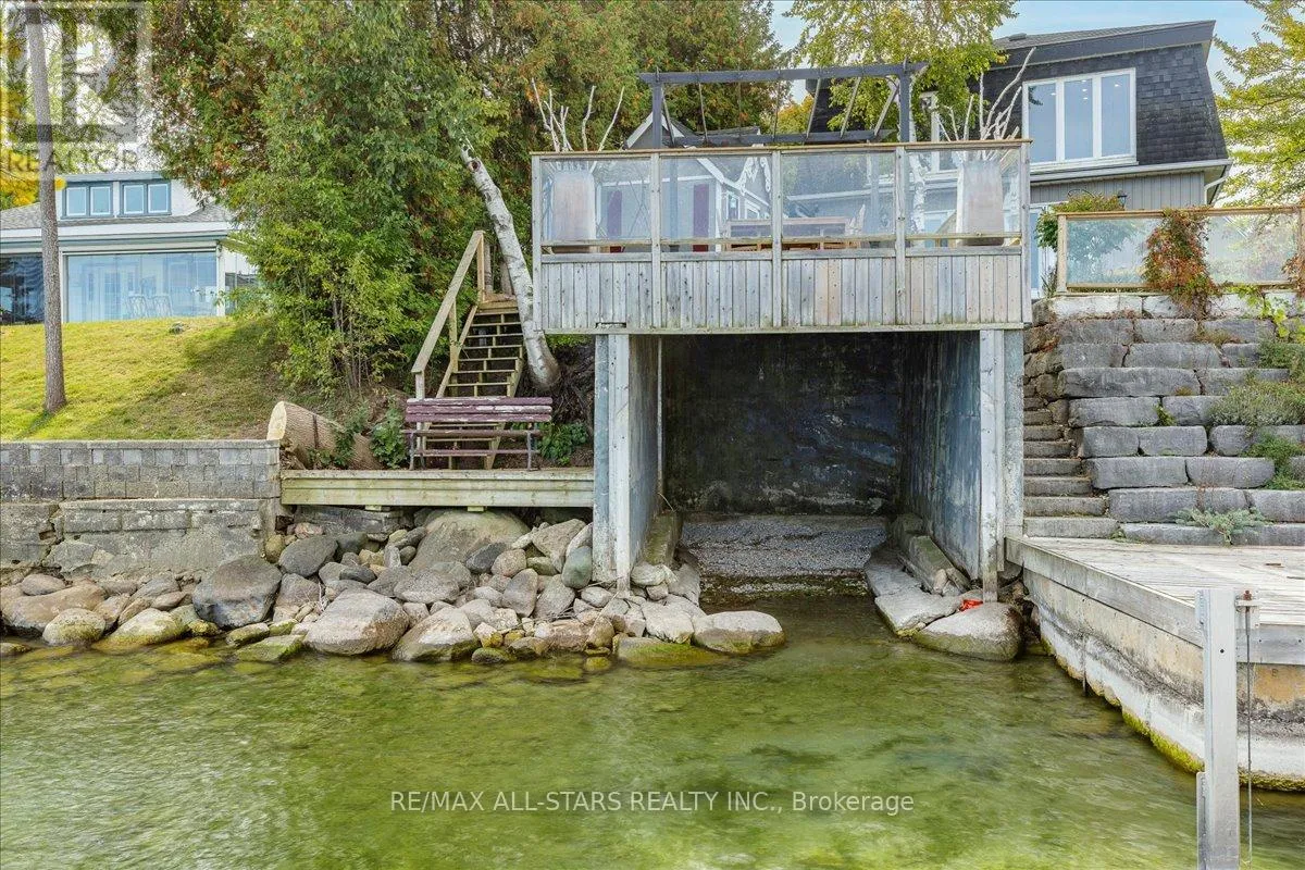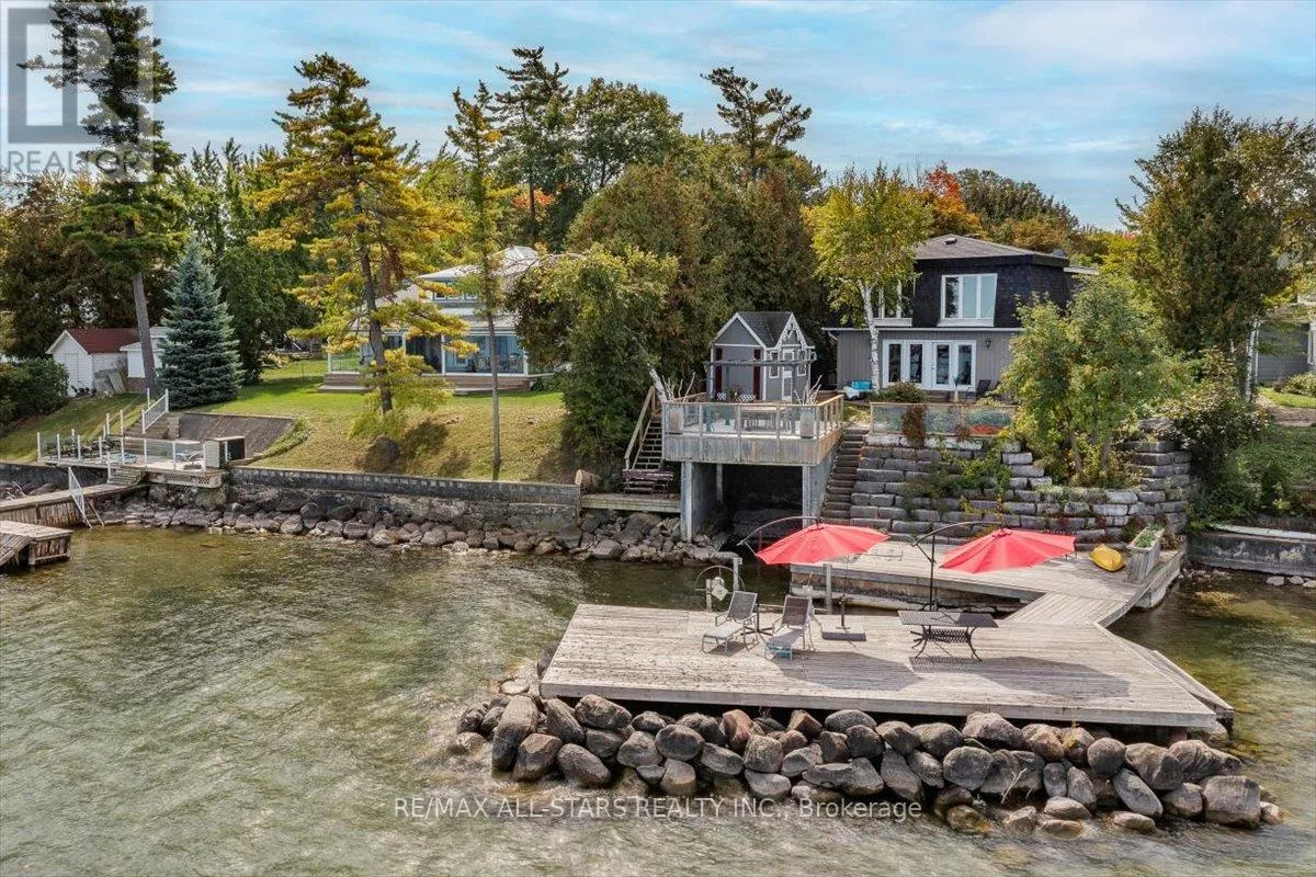 Cross Streets: Pinery Lane and Hedge Road. ** Directions: Lake Dr to Pinery to Cedarhurst Park. Welcome to this rare opportunity to own a direct waterfront property on beautiful Lake Simcoe. Nestled in a private setting, this unique three-bedroom home is designed to take full advantage of its breathtaking surroundings. The primary bedroom is a true retreat, featuring wall-to-wall windows that frame stunning, panoramic views of Lake Simcoe. Two additional bedrooms provide generous space for family and guests. The main floor is tailored for both comfort and entertaining. A custom kitchen boasts a large granite island and built-in appliances, seamlessly flowing into a spacious dining area. The living room is anchored by a striking stone fireplace and a wall of glass that opens to the waters edge. Step outside to the expansive deck and patioperfect for hosting gatherings or simply enjoying peaceful lakeside moments. The permanent dock provides an ideal spot to moor your boat or relax while taking in the incredible vistas. Whether its boating, fishing, or simply soaking in the serene sunsets, this property delivers the ultimate waterfront lifestyle. Dont miss your chance to experience lakeside living at its finest. (id:27476)