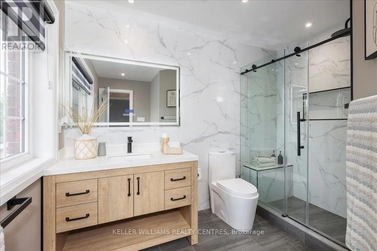 Cross Streets: Old Homestead Rd & Highcastle Ave. ** Directions: Old Homestead Rd to Highcastle Ave. Welcome to 63 Kerfoot Cres, a beautifully updated home in the desirable Northdale Heights Community of Keswick. Set on an impressive 42.65 x 203.05 ft. lot, this property offers a rare combination of modern upgrades, spacious living, and outdoor enjoyment just steps from Lake Simcoe. Inside, you will find a thoughtfully maintained 3-bedroom, 3-bathroom home where every bedroom features a walk-in closet. The heart of the home is the stylish kitchen, complete with granite countertops, a striking new backsplash, modern pendant lighting, and freshly repainted. A perfect blend of function and design for cooking and entertaining alike. The primary suite is a true retreat, boasting a fully renovated ensuite with quartz counters, stunning tile floors, a seamless doorless shower, tinted windows, and a custom built-in vanity. The second bathroom has also been fully remodeled with a Bluetooth mirror, new shower, vanity, and toilet. The main floor further impresses with motorized blinds, brand-new showpiece staircase with custom railings, and a refreshed 2-piece powder room. Additional upgrades include all new interior doors, a brand new washer/dryer, central vacuum system, and updated garage doors. The unfinished basement includes a bathroom rough-in and large cold cellar, offering endless customization potential. Step outside to your private oasis, complete with a Bullfrog R Series hot tub under a skylight gazebo with bar and privacy blinds, a Weber BBQ hooked up to gas, a stone patio, landscaped gardens, and newly planted trees. Located just minutes from St. Thomas Aquinas Catholic School, downtown Keswick, shops, transit, and parks, and only a short drive to Georgina's beaches, this home blends convenience with comfort. Don't miss your chance to own this move-in ready home on a premium lot in a family-friendly community. (id:27476)