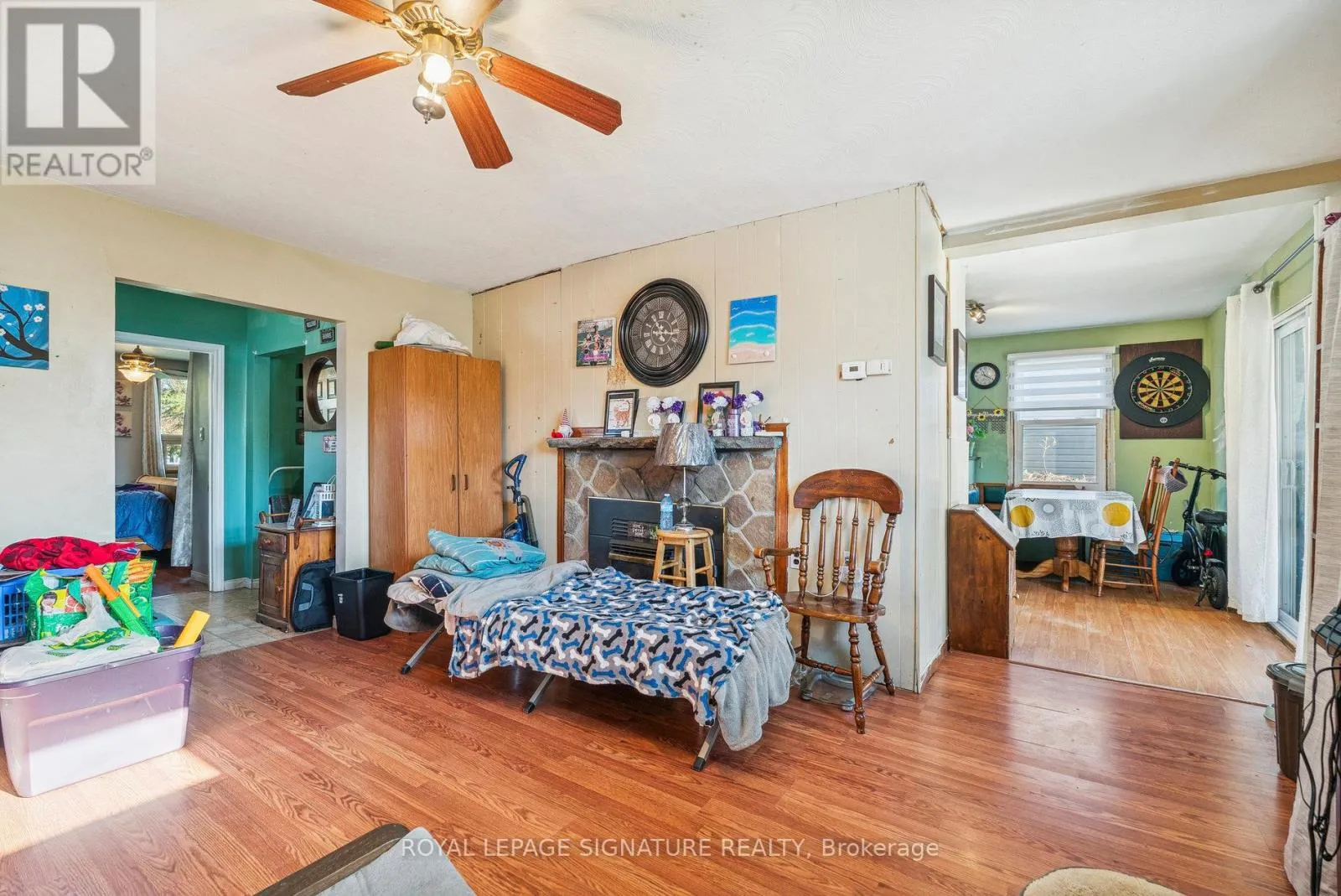 HOLLYWOOD DR/LAKE DRIVE Welcome to 353 Hollywood Dr. A charming, well-maintained bungalow offering approximately 800 sqft of comfortable main floor living. The spacious living room features warm laminate flooring,a gas fireplace, and a large window that fills the space with natural light. The bright eat-in breakfast area flows nicely into the kitchen, offering ample cabinetry and a great layout for everyday living.The primary bedroom provides generous space with a large closet and window overlooking the yard, while the second bedroom makes an ideal guest room, home office, or nursery. All on one level perfect for downsizers, first-time buyers, seniors, or investors.Situated on a quiet, family-friendly street close to the lake, parks, schools, shopping,Southlake Hospital, and Highway 404, this property offers unbeatable convenience and value.Tons of possibilities to entertain with the large private lot, or to plan your futureexpansion.property is Estate sale so being sold as is. (id:27476)