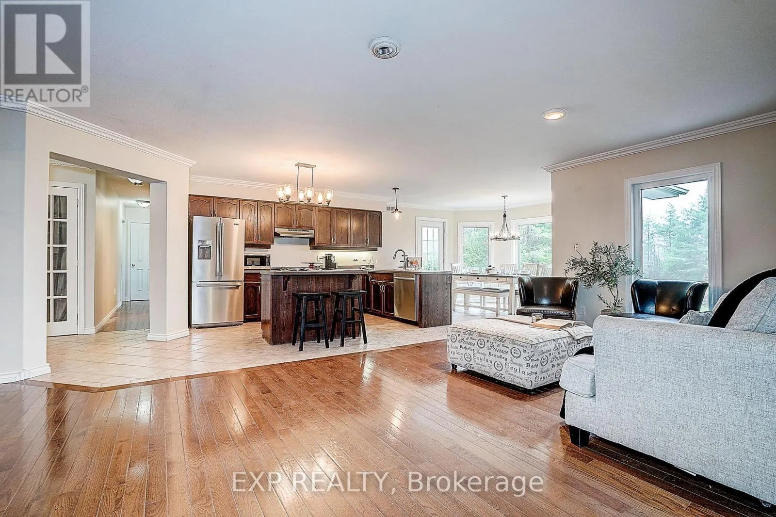 Cross Streets: Weir/Old Homestead. ** Directions: Hwy 48 North to Old Homestead Rd. Make right. Welcome to 8327 Old Homestead Rd, a timeless Royal Homes bungalow (2001) set on 15 acres of serene countryside with 680 ft of frontage and nearly 1,000 ft of depth. A winding, tree-lined driveway leads to over 4,500 sq. ft. of finished living space, perfectly blending tranquility, comfort, and functionality. Inside, the main level features 4 spacious bedrooms, 2 bathrooms, a dedicated home office, a formal dining room, and two family rooms offering space for both relaxation and entertaining. Large windows frame the natural beauty outdoors, while the open-concept design and warm finishes create an inviting atmosphere. The bright walk-out basement extends your living space with 2 additional bedrooms, 2 bathrooms, a full kitchen, and an open family area-ideal for multi-generational living or guest accommodations. Step outside to enjoy the expansive deck, lush forest, and private walking trails. A barn and garden shed offer storage, workspace, or potential for a hobby farm. The circular driveway accommodates 6+ vehicles with ease. With high-speed internet, you can enjoy peaceful country living without sacrificing modern comfort. Ideally located minutes from Hwy 48, Lake Simcoe, marinas, schools, and shops, this move-in-ready rural retreat is less than 60 minutes from the GTA. (id:27476)