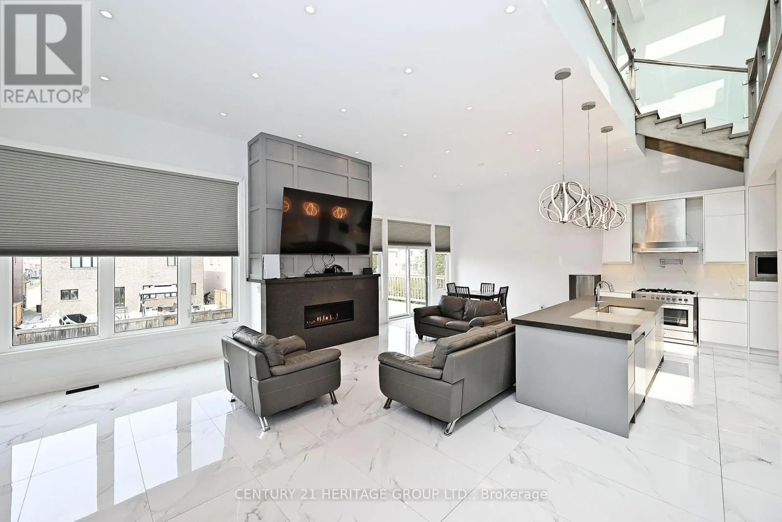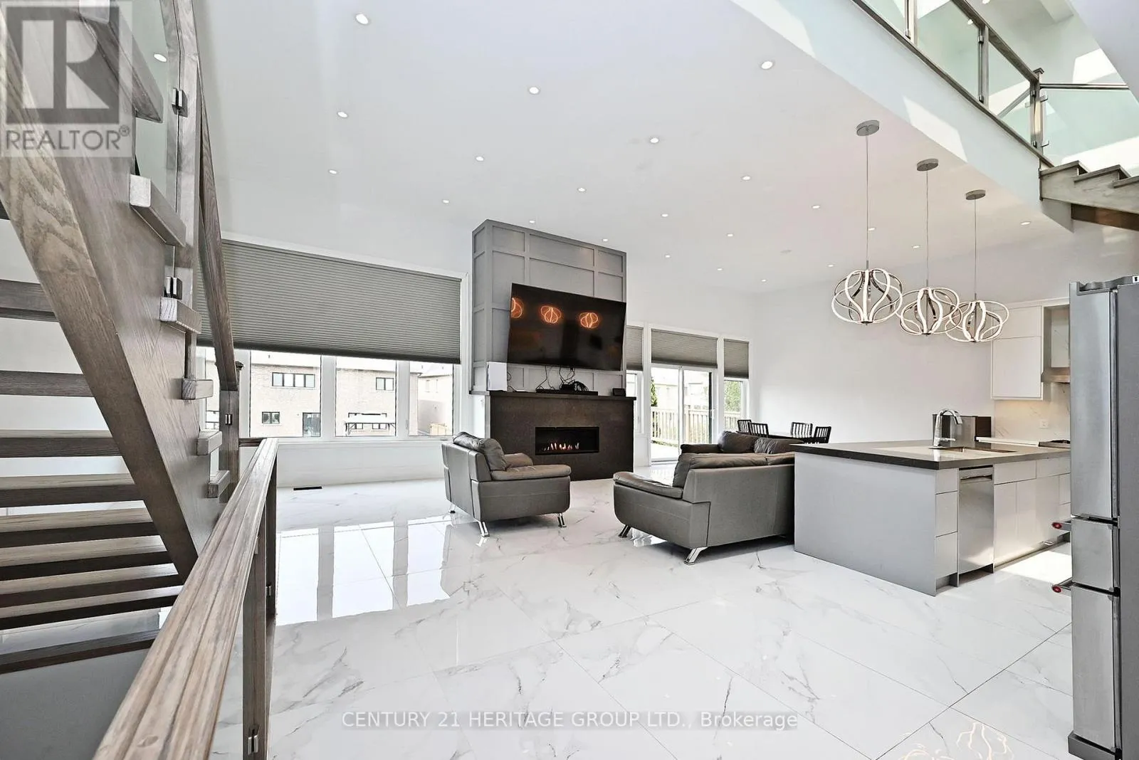 Metro Rd N & Church St Discover luxury living in this exquisite, custom-uilt maserpiece, spanning 3,122 sq ft with a fully finished walk-out basement. The open-concept main floor dazzles with soaring 12-foot ceilings, sleek ceramic tile flooring, and a striking oak and glass saircase leading to the upper level. The chef-inspired kitchen is a showstopper, feauring premium stainless steel appliances, modern push-open cabinetry, elegant quartz counter tops and backsplash, and a spacious centre island with a deep sink perfect for entertaining. Cozy up by the stunning gas fireplace with a quartz surround, framed by expansive windows that flood the home with natural light. Upstairs, cathedral ceilings elevate he bedrooms, complemented by luxurious quartz-finished bathrooms. (id:27476)