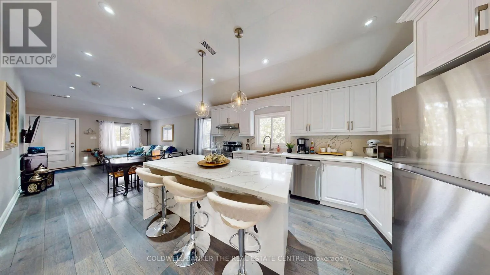 Cross Streets: Metro Rd N & Kennedy Rd. ** Directions: metro rd. to churchill lane. Stunning Turnkey Bungalow with Private Lake Simcoe Access!Welcome to single-level luxury living in this completely renovated 3-bedroom, 2-bathroom bungalow. Every detail has been thoughtfully updated, offering a modern, move-in-ready experience. The heart of the home is the open-concept living, dining, and kitchen area, featuring stunning quartz countertops including a large breakfast island, and sleek stainless steel appliances-perfect for entertaining.Escape to the spectacular primary bedroom retreat, boasting soaring vaulted ceilings, dual closets, and a spa-inspired 5-piece ensuite. Enjoy your morning coffee by stepping directly from the primary suite into the fully fenced backyard.Practicality meets style with a covered front porch leading into an oversized attached garage (with rear man door to the yard). Additional upgrades include updated flooring throughout, modern smart switches, a new furnace, and on-demand hot water (rental). The exterior is equally impressive with a large garden shed and plenty of privacy.Located for an exceptional lifestyle, this property includes private community access to Lake Simcoe and is just minutes from Willow Beach Waterfront Park. Enjoy easy access to schools, shopping, and the 404 extension for a seamless commute. Don't miss out on this gem! (id:27476)