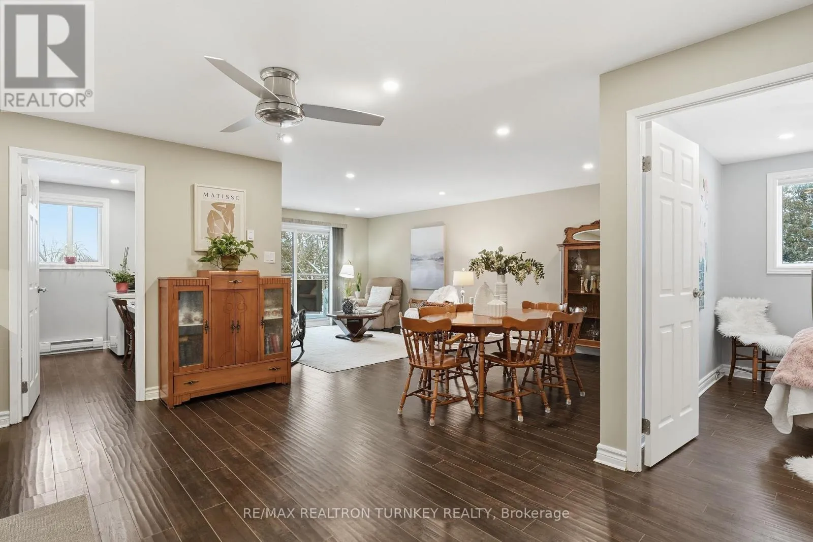 Cross Streets: Metro Rd/ The Queensway S. ** Directions: The Queensway S. Want to downsize but not sacrifice space? Check out this Bright, Modern & beautifully renovated 3-bedroom condo offering stylish, low-maintenance living with hardwood flooring throughout and complemented by neutral paint tones that suit any décor. Updated Flat ceilings with pot lights throughout the condo enhance the open, contemporary feel, while the extended kitchen with Granite counters and stainless steel appliances makes the kitchen both functional and inviting. The renovated bathroom features a spacious, spa-like Walk-In shower and stone top vanity. The large primary bedroom includes a walk-in closet and a large window allowing in plenty of natural lighting, plus two additional bedrooms with large windows allow for guests to stay in comfort. One bedroom is an ideal home office or guest room. Enjoy a bright and spacious living room with a walk-out to a huge balcony overlooking a private backyard with gardens, perfect for relaxing or entertaining. Location is everything-you're steps to the Stephen Leacock Theatre, a bus stop right at the front of the building, & only a short walk to Lake Simcoe, parks, & beaches. Minutes to HWY 404, transit, shopping, restaurants, & all of Keswick's amenities. Units in this building rarely come available, with these modern & stylish renovations. Don't miss this opportunity to enjoy quiet, comfortable living close to everything Keswick has to offer while combining comfort, style, and unbeatable convenience. (id:27476)