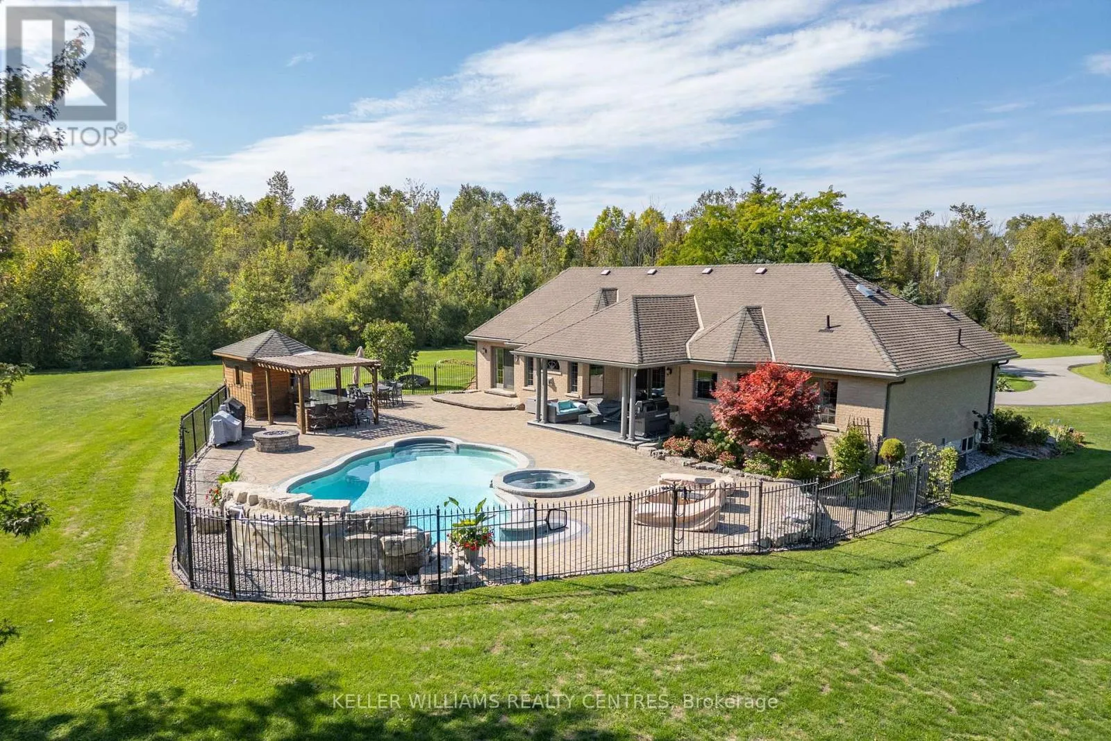 Cross Streets: Park Road/Black River. ** Directions: Park Road to Black River. Nestled on 25 picturesque private acres, this stunning ranch-style bungalow offers an unparalleled living experience both inside & out. From carpet-free interiors & radiant in-floor heating to your own private poolside oasis, every inch of this country estate has been thoughtfully designed & meticulously maintained. The home combines the serenity of country living w/ top-tier modern amenities & tech, perfect for entertaining, working from home, or simply enjoying peaceful luxury in a quiet private setting minutes from Lake Simcoe & Sibbald Point, schools, amenities, stores & the town of Sutton. Inside, impressing at every turn this thoughtfully designed home offers a practical & luxurious layout which includes a primary suite that features a W/O to a stunning spa like patio w/ a large step-in salt water pool, waterfall, & hot tub. There are 2 additional main level bedrooms, & a home office. The chefs kitchen is a standout feature, boasting a custom stone arch, stone countertops, gas countertop range, center island w/ prep sink, & expansive views of the pool & a mature & private forested yard. Enjoy the fully finished basement w/ its sprawling recreation room, perfect for a games room & a dedicated theatre room complete w/ Paradigm surround sound speakers, a projector, Canadian-made Palliser theatre seating, & custom B/I cabinetry making it a true cinematic experience right at home. You'll also find a fully equipped fitness area, featuring an array of exercise equipment & an infrared sauna, ideal for post-workout relaxation. A custom wine cellar w/ illuminated shelving offers a stunning showcase for your collection, blending form & function in a most elegant way. Your saltwater in-ground pool awaits, w/Cabana & Pergola, stone bar, multiple cooking areas, outdoor TV all crafted for unforgettable gatherings. Whether you're looking for a full-time escape, multi-generational living, or a lifestyle upgrade just outside the city, this one-of-a-kind estate has it all! (id:27476)