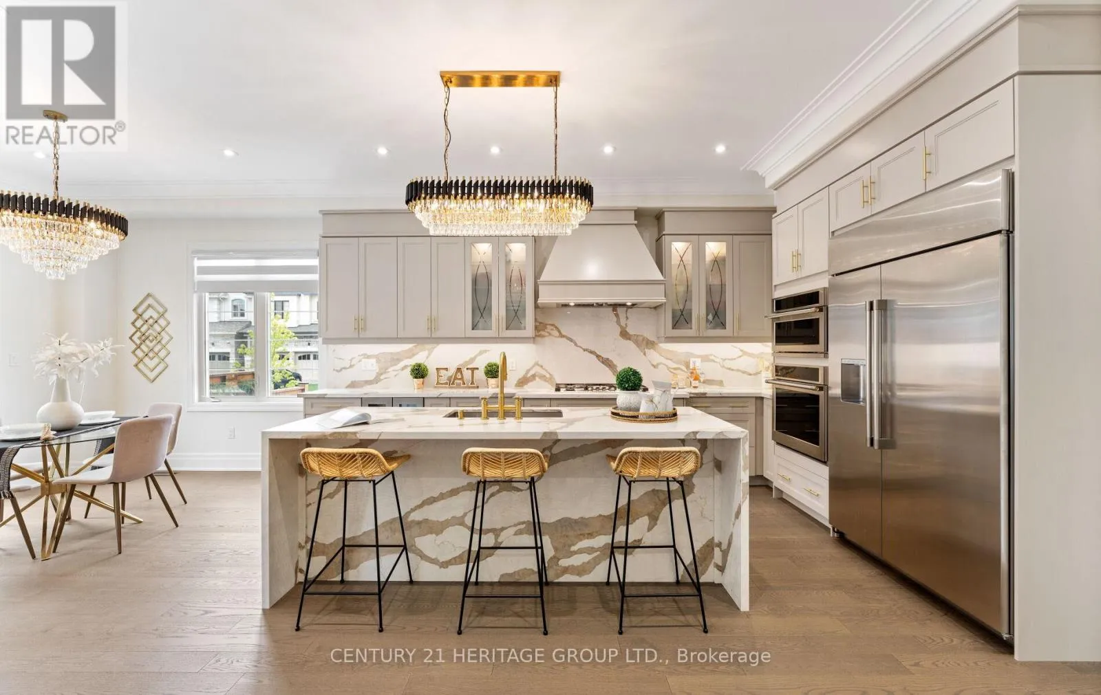 Woodbine Avenue and Church Street Just minutes from Lake Simcoe, this exceptional residence is situated on a premium lot and showcases timeless craftsmanship with modern upgrades across 3,720 square feet. 319 Danny Wheeler Blvd. welcomes you with 10-foot main floor ceilings, 9-foot second floor ceilings, and elegant tall doors. A thoughtfully designed layout offers five spacious bedrooms, each with its own ensuite bathroom, including one semi-ensuite, ideal for multi-generational living or effortless hosting. Hardwood floors flow throughout the home, beautifully illuminated by crystal chandeliers in the dining room, kitchen, breakfast area, and along the staircase. The chef-inspired kitchen features built-in stainless steel appliances, including a gas cooktop and bar fridge, complemented by quartz countertops and a bright breakfast area that seamlessly connects to the family room. The main-floor ceiling is insulated for added warmth and noise reduction, while pot lights enhance the living space. The home is equipped with gas heating and central air conditioning. Additional highlights include a double garage, parking for six vehicles, an epoxy-finished garage floor, and two garage door openers with remotes. The backyard is designed for both entertaining and low maintenance, featuring stone-finished landscaping, two gazebos, and a mini bar. Zebra blinds add a minimalistic look with Remote controls in the kitchen and family room. Located on a quiet street close to schools, parks, and shopping, and only minutes from Lake Simcoe's waterfront and marinas, this home perfectly balances luxury, comfort, and lifestyle. Under Tarion Warranty. (id:27476)