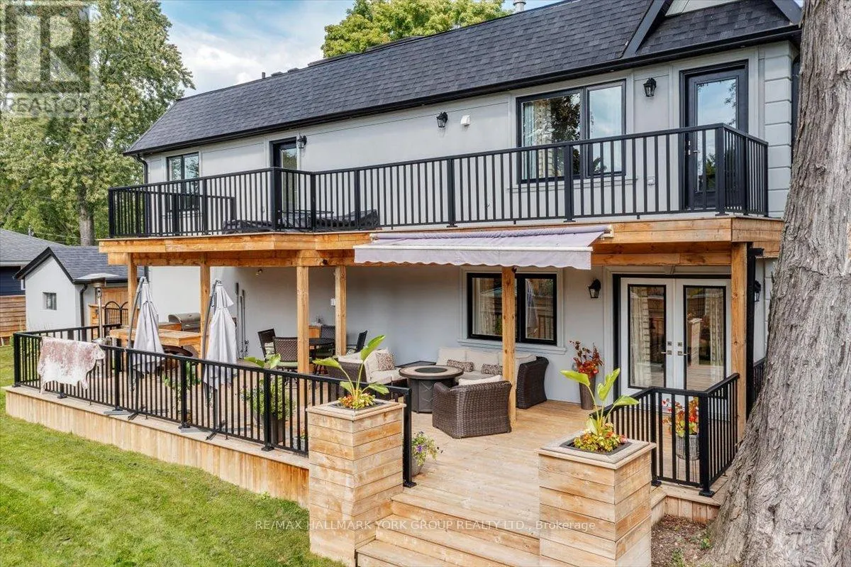 Cross Streets: Lake Dr. N./Orchard Beach Rd. ** Directions: Lake Dr. N to Orchard Beach Rd. Pristine, one of a kind Custom Contemporary home built in 2021 is located in the Historical Lakeside Community of Orchard Beach and just steps to Lake Simcoe. Beautiful private and fully landscaped, the home overlooks the beautiful sunsets of Cooks Bay and an exclusive neighbourhood parkette. Offering luxury and rich finishings throughout this 2300 Sq. Ft. 3 bedroom, 4 bath home has a pot lit covered porch entry to an exceptional open main level design featuring in-floor radiant heat, pot lights and coffered ceilings throughout. The stunning kitchen with Quartz Counters, Stainless Steel Appliances and large center island is open to the Dining/Living Combo with a floor to ceiling marble gas fireplace, built-in entertainment unit and a walkout to a covered deck featuring a built-in outdoor kitchen and fully fenced yard. The oversized Oak staircase leads to the sky-lit 2nd floor with hardwood floors and a huge primary retreat with 3 piece heated floor ensuite, walk-in closet, marble fireplace and a walkout balcony overlooking the lake. The 2 additional bedrooms feature their very own full ensuites and the 2nd bedroom walks out to a balcony overlooking the parkette. There is also a conveniently located 2nd Floor Laundry. Detached garage and inground sprinkler system. Close to all amenities and perfect for daily walks along the lake this home also offers lake access to 2 private community beaches. Lakeside lifestyle at its best and not one you will want to miss, come see it today! (id:27476)