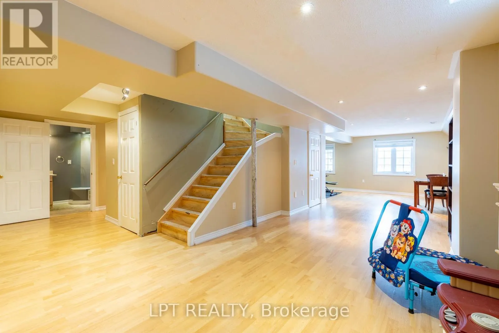 Metro Rd N & Old Homestead Rd Your family's next chapter begins in this welcoming four-bedroom, four-bath all-brick home in the sought-after Northdale Heights community. Set on an almost 50-foot-wide lot, the home offers great curb appeal and everyday conveniences, including a four-car driveway with no sidewalk, double garage, exterior pot lights and flagstone, all on a quiet, low-traffic street. From your driveway, enjoy the rare convenience of seeing the walking path to school and the nearby park - perfect for morning routines and after-school adventures. Inside, the home offers a warm and functional layout designed for real family living. Sun-filled formal living and dining rooms with hardwood flooring provide space to gather and celebrate, while the kitchen, complete with stainless steel appliances and an oversized breakfast area, overlooks the cozy family room to keep everyone connected. A main-floor laundry room with direct garage access creates an ideal "drop zone" for busy family life, easily handling backpacks, sports gear, and boots. Upstairs, the primary bedroom is a relaxing retreat with double doors, dual closets, and four-piece ensuite featuring a corner soaker tub - your own quiet escape at the end of the day. The finished basement feels bright and welcoming thanks to oversized above-grade windows, and offers flexible space for growing families, guests, or multi-generational living. It includes a private in-law suite or fifth bedroom with walk-in closet and three-piece bath, along with a generous recreation and gym area ready for movie nights, playtime, or workouts. Outside, the fully-fenced west-facing backyard includes a deck with acrylic panels and plenty of room for gardening, outdoor activities, and play. With major updates already completed - roof (2019), furnace (2019), air conditioning (2020), and second-floor windows (2019) - this home is ready for its next family to move in, add personal touches, and create lasting memories. (id:27476)