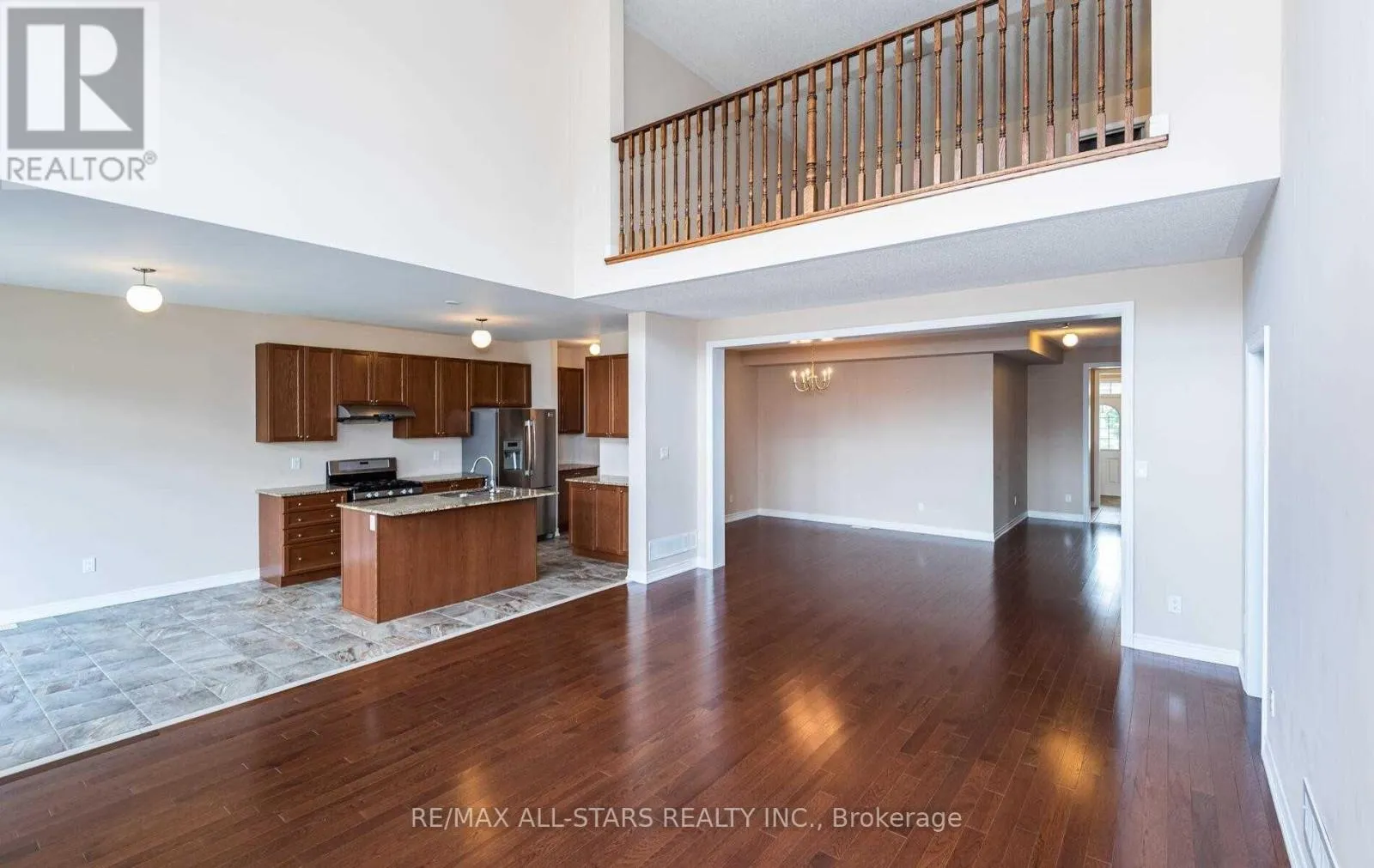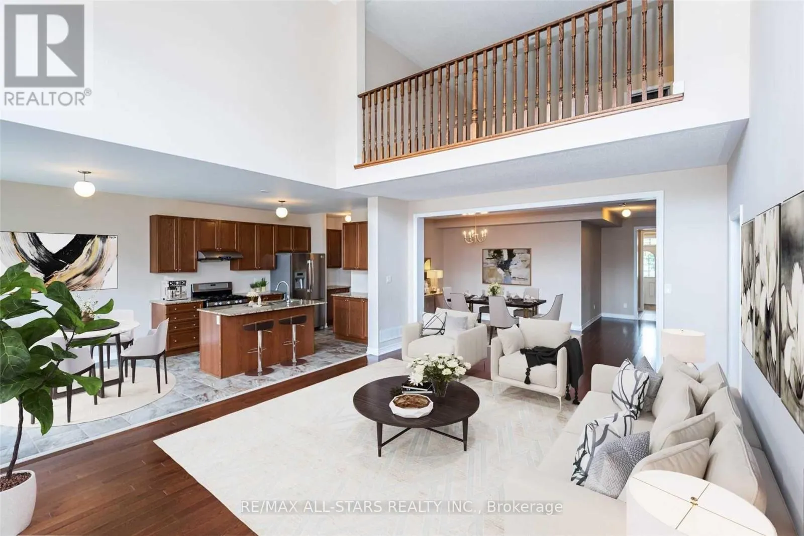 Lampkin St & Timberbank Sq. This beautifully designed and truly unique bungaloft features a main-floor primary bedroom and a stunning open-concept layout highlighted by a soaring cathedral ceiling. A gas fireplace and expansive windows create an inviting, stylish atmosphere, complemented by gleaming hardwood floors. The double-door entry and spacious kitchen showcase elegant slate-look flooring, while an 8-ft walkout leads to a deck and fully fenced yard. You'll love the main-level primary suite, complete with a walk-in closet and a luxurious ensuite featuring a separate shower and an oversized oval bathtub. The impressive loft overlooks the living area and includes a fourth bedroom and an additional 4-piece bath-perfect for guests or extended family. Located just steps from a fantastic park with a splash pad, basketball courts, and scenic trails, this home offers something for every member of the family. Bring the whole crew-there's room for everyone! Seller says bring offer! Some pictures virtually staged. (id:27476)