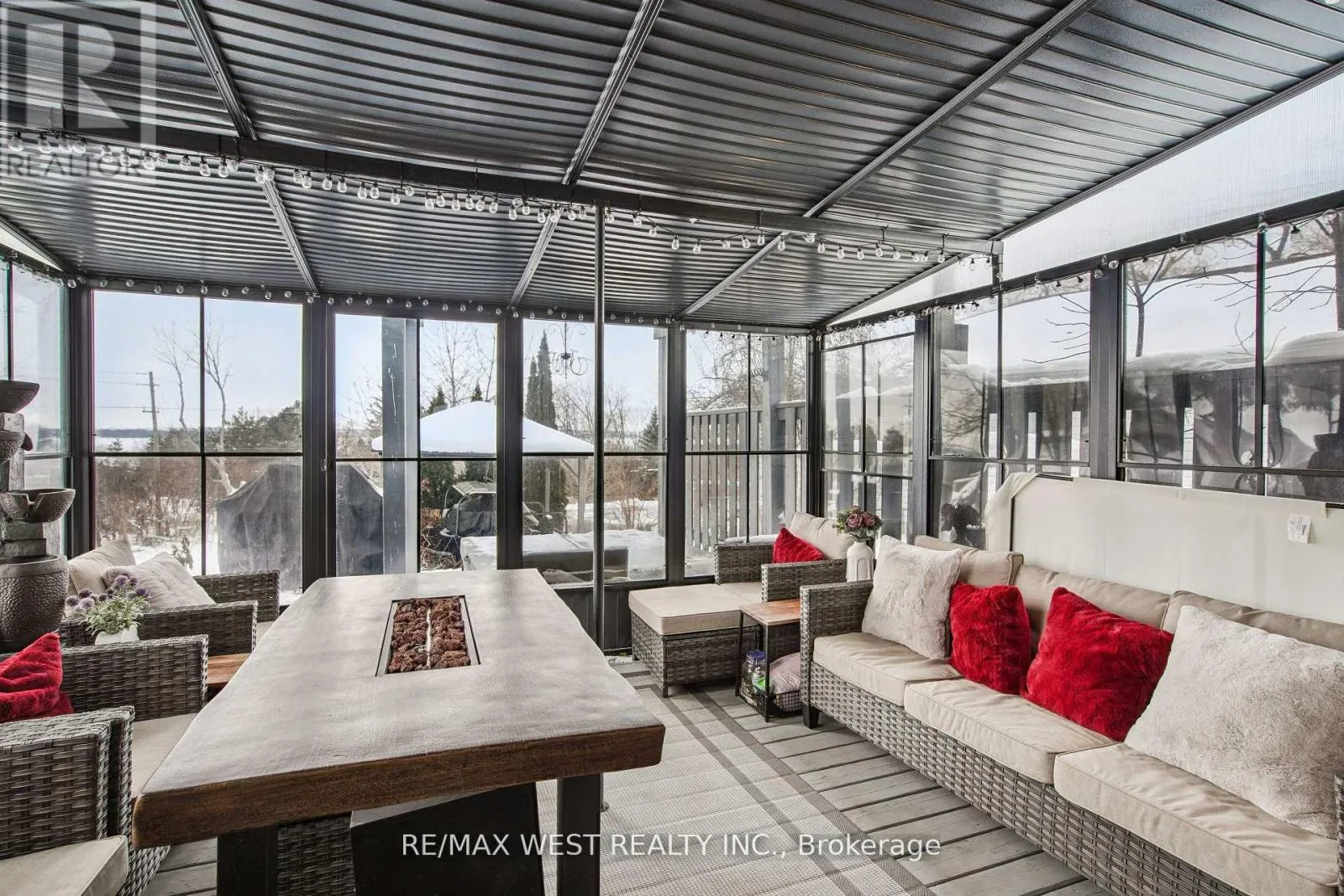 Cross Streets: Metro Road N & Ferncroft Dr. ** Directions: Metro Road N to Ferncroft Dr, North on Quiet Heights Lane. Welcome to 30 Quiet Heights Lane, nestled on one of Georgina's most desirable cul-de-sacs. Set on just shy of half an acre, this beautifully updated two-storey home offers breathtaking western views overlooking Lake Simcoe and an exceptional blend of space, comfort, and lifestyle. This four-bedroom residence features a bright, open-concept main level with gleaming engineered hardwood floors and sun-filled principal rooms. The recently renovated kitchen is a true showpiece, complete with stainless steel appliances, quartz countertops, custom fixtures, and a well-appointed island-perfect for everyday living and entertaining. The spacious living room provides seamless access to a private backyard oasis featuring a custom two-tiered deck, enclosed gazebo, a prolific cherry tree, and recently installed saltwater hot tub, ideal for hosting gatherings of any size and enjoying evening sunsets overlooking the lake . Also on the main floor is a convenient bedroom with an adjacent, recently renovated three-piece bath featuring a steam shower and high-end luxury finishes-perfect for extended family or multigenerational living. Upstairs, enjoy a true primary retreat, recently expanded to offer ample storage, a walk-in closet, an additional full mirrored double closet, and a spa-like oversized semi-ensuite with custom vanity, luxury fixtures, and a stand-alone soaking tub. Additional highlights include two separate driveways offering abundant parking, a detached garage ideal for a hobbyist or craftsman, & an enclosed front porch with hydro-perfect for enjoying morning sunrises. All of this is conveniently located close to in-town amenities while offering the tranquility and privacy of a rural-like setting. Updates include: Steel Roof on House, Kitchen Renovation with appliances, Bathroom Renovations with Luxury 'Smart' Fixtures, Flooring, Pot Lights, Solar Panels (Negotiable), Furnace & A/C, Custom Hidden Storage Pantry, Hot Tub, Enclosed Front Porch with Hydro, Enclosed Gazebo. (id:27476)