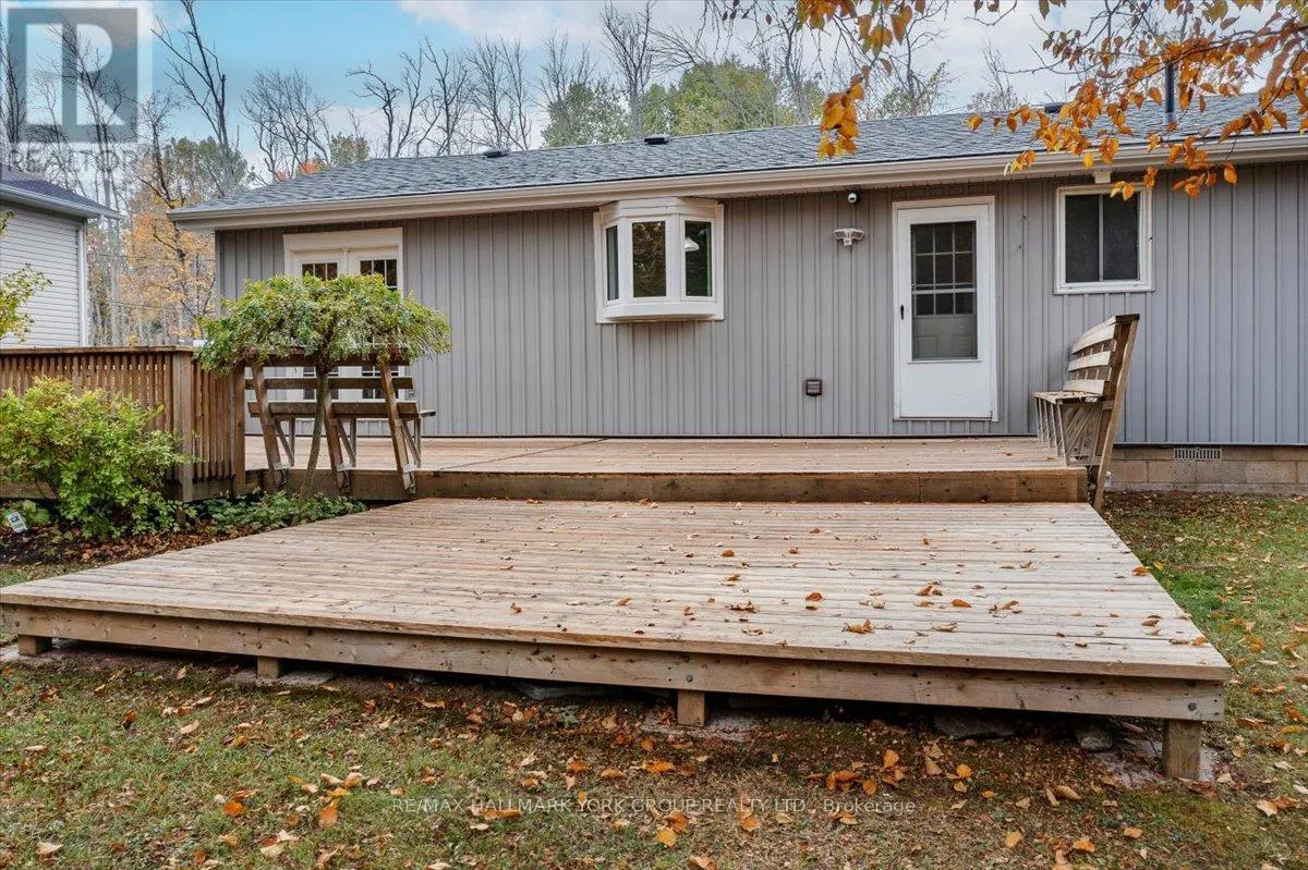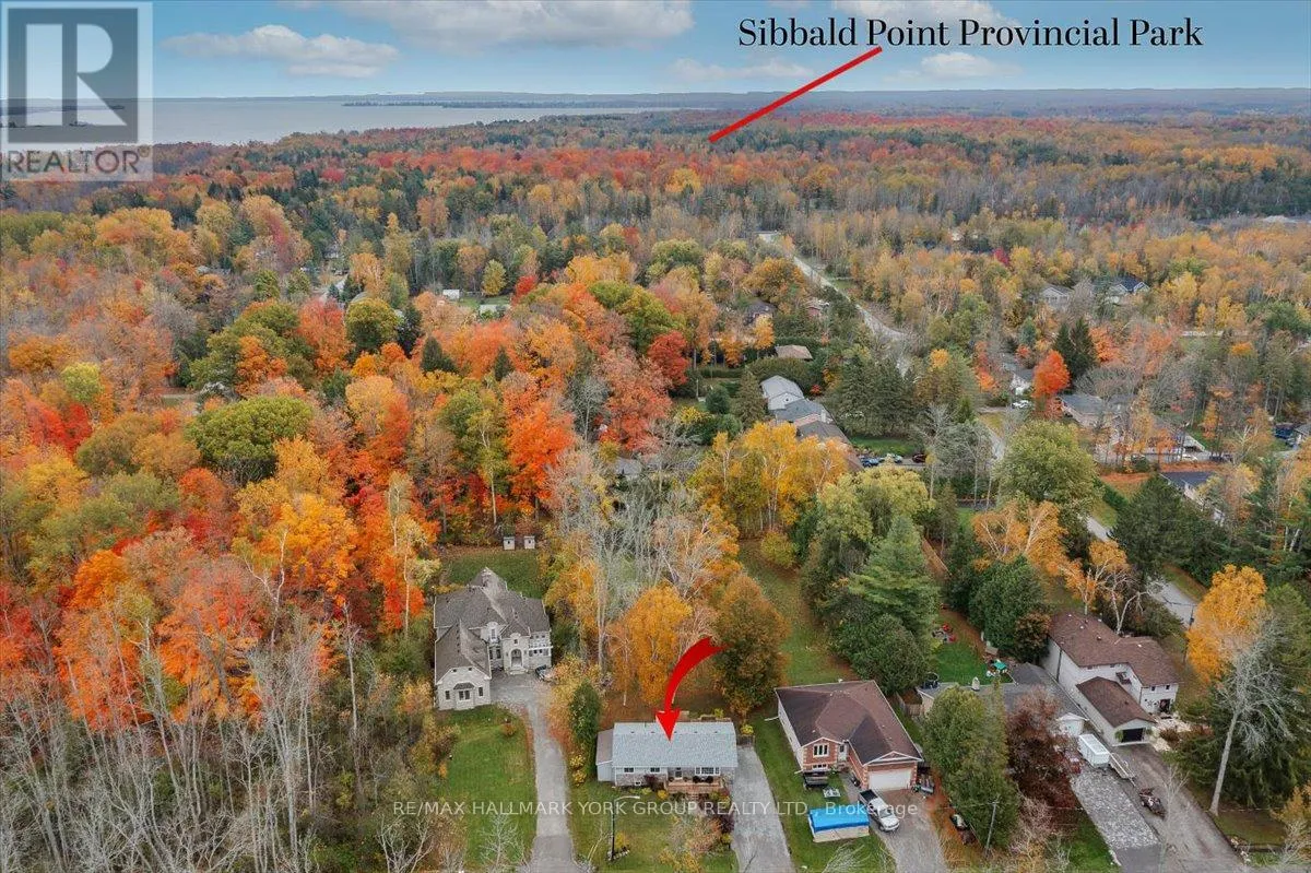 Cross Streets: Park Rd & Evans Ave. ** Directions: Park Rd to Evans Ave. Charming 3-Bedroom Bungalow nestled on a quiet no-exit street and set on nearly half an acre, this delightful 3-bedroom Viceroy offers the perfect blend of comfort, privacy, and nature. Enjoy peaceful views of the surrounding forest, all within a short walk to Sibbald Point Provincial Park and the sparkling shores of Lake Simcoe. The home features a bright and spacious living room with a stylish barn door entry and a large picture window that fills the space with natural light. The eat-in kitchen and dining area provide plenty of room for family meals and gatherings, with a walk-out to a 30 Ft. x 12.5 Ft. tiered entertainer's deck-perfect for summer barbecues and outdoor living. Relax by the cozy firepit or unwind in your private, treed backyard, surrounded by nature. This year round residence offers a serene lifestyle just minutes from parks, trails, and the lake. (id:27476)