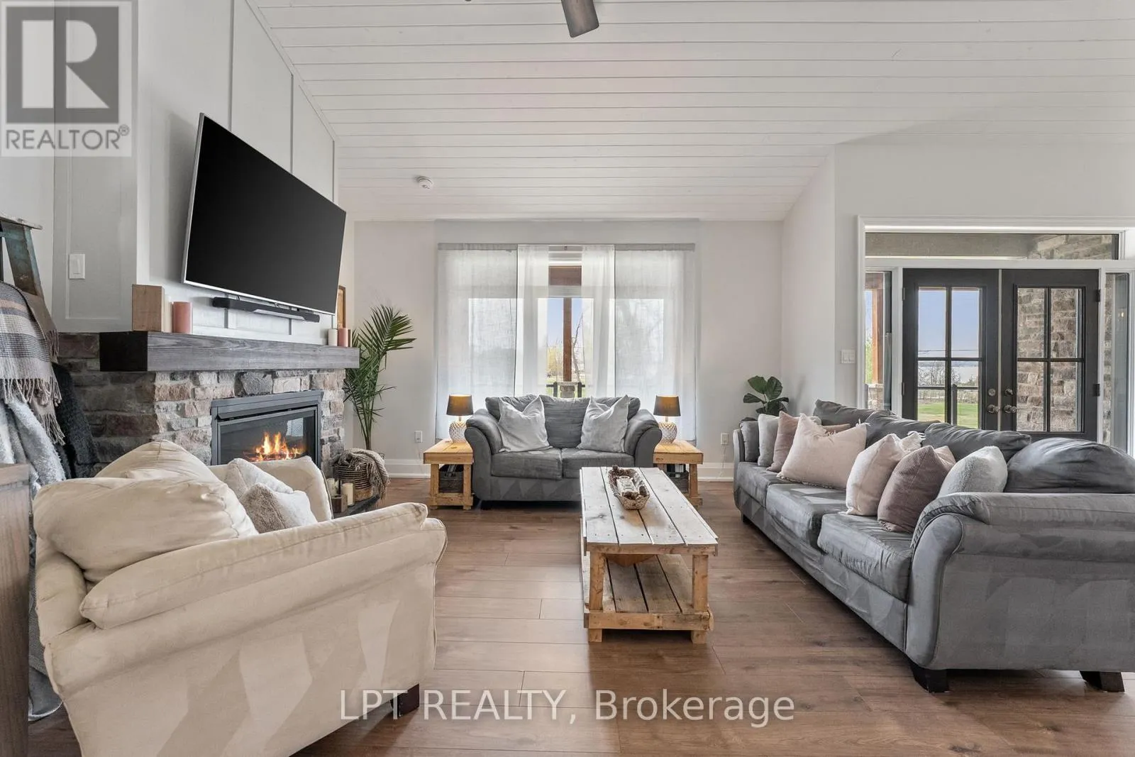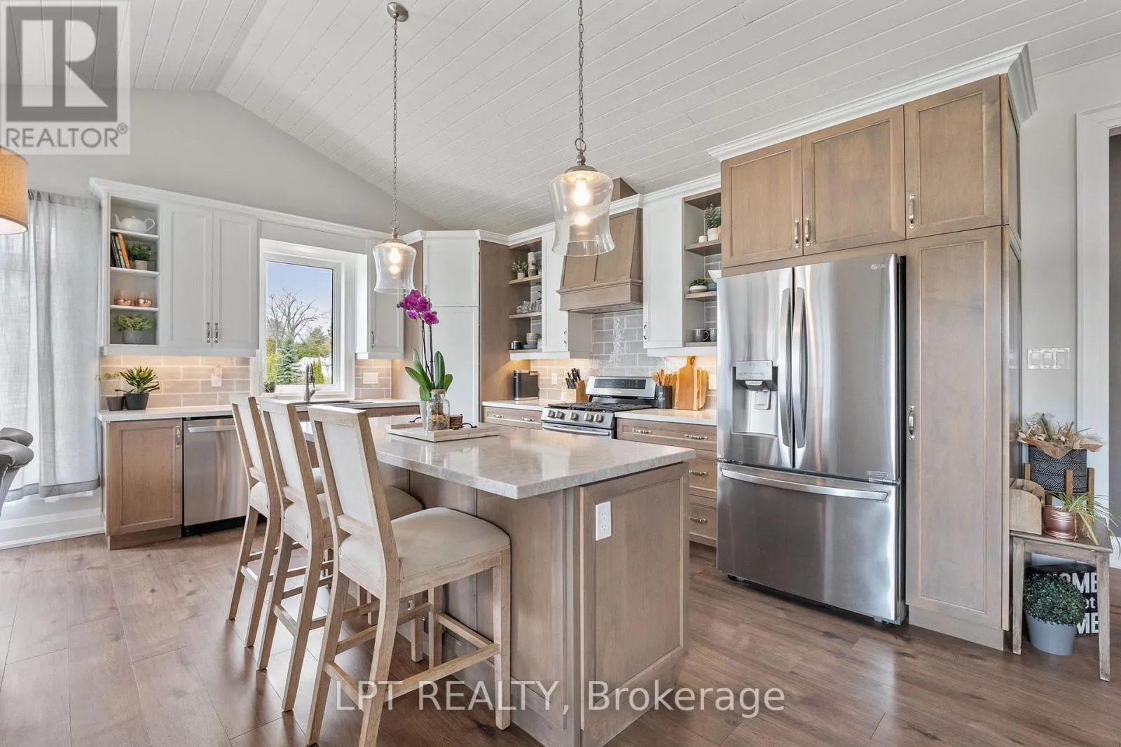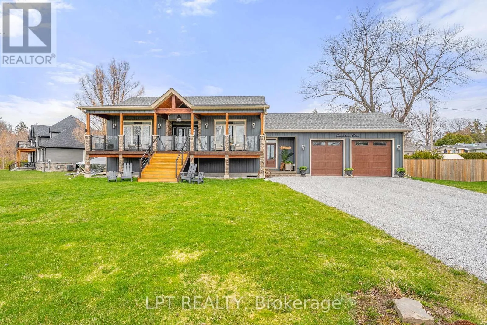 Balfour Beach Rd & Metro Rd N Where Luxury Meets Lake Life. Nestled In The Exclusive Lakeside Community Of Balfour Beach, This Incredible Property Offers Unobstructed Lakefront Views, Access To A Private Park, Sandy Beach, And Marina, And The Ease Of Community-Maintained Landscaping - Making Every Day Feel Like A Getaway. Step Inside This Beautifully Custom-Crafted Raised-Bungalow, Built In 2020, Offering Over 1600 Sq Ft On The Main Floor With Soaring Cathedral Ceilings, Engineered Laminate Floors, A Stunning Gas Fireplace, And A Spacious Open-Concept Layout Designed For Effortless Living And Entertaining. The Custom Kitchen Is A True Showstopper With A Large Centre Island, Quartz Counters, Pantry And Thoughtful Finishes Throughout. With 3+1 Bedrooms And Four Bathrooms, There's Plenty Of Space For Both Family And Guests. Downstairs, The Lower Level Is Mostly Finished And Ready For Your Personal Touches - Ideal For A Recreation Room, Additional Living Space, Or Guest Suite. Radiant In-Floor Heating Runs Throughout The Basement And Continues Into The Extra-Wide, Drive-Thru Two-Car Garage. Outside, A 40 Ft X 8 Ft Covered Front Porch Offers The Perfect Spot To Take In The Breathtaking Sunsets, While The Large Breezeway And Expansive Yard Add Even More Room To Relax Or Entertain. Just 10 Minutes From Highway 404 And Close To All Amenities, This Is Where Staycations Become Your Everyday Norm - With Views You'll Never Want To Leave. (id:27476)