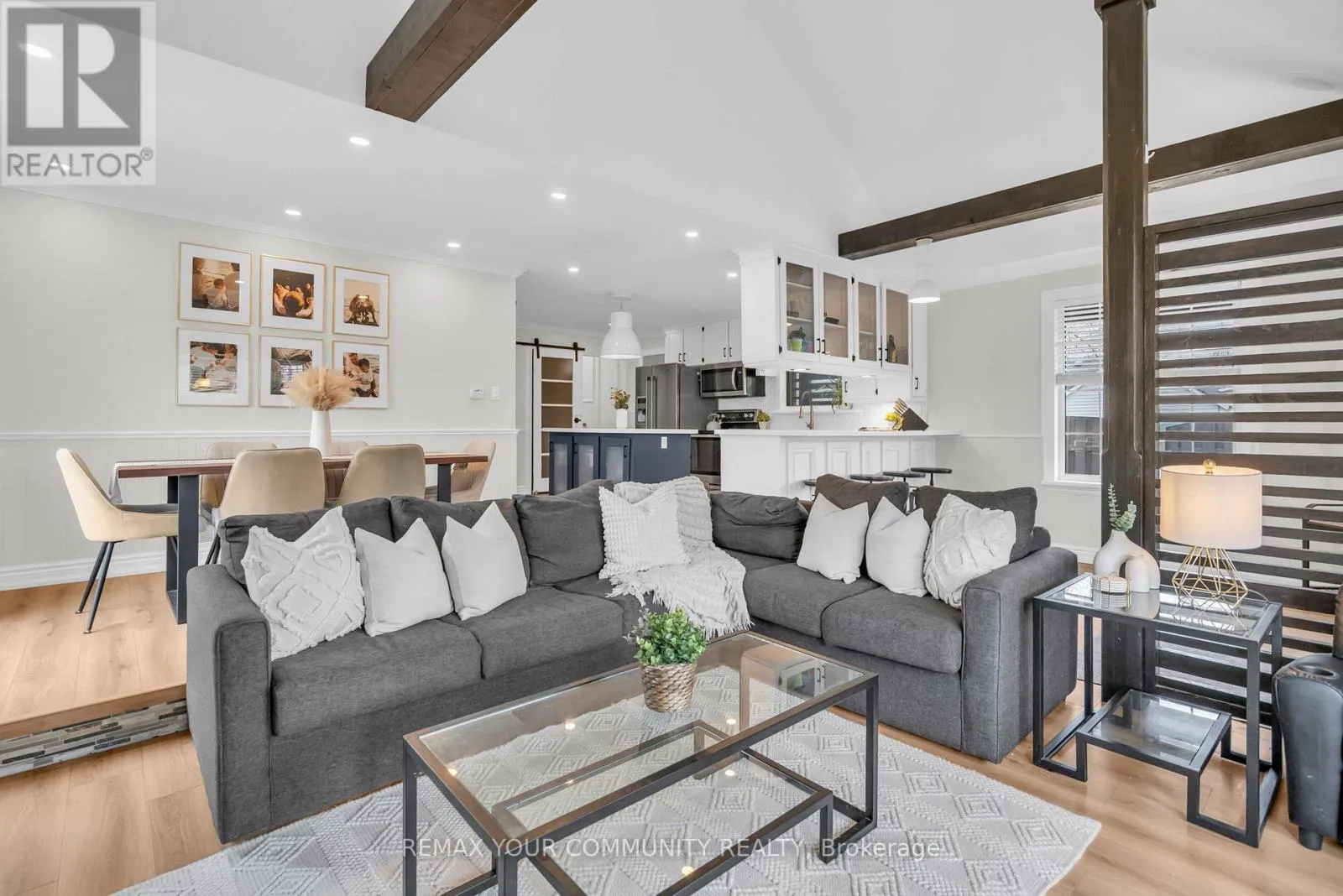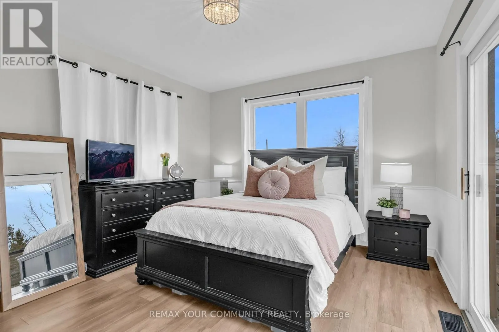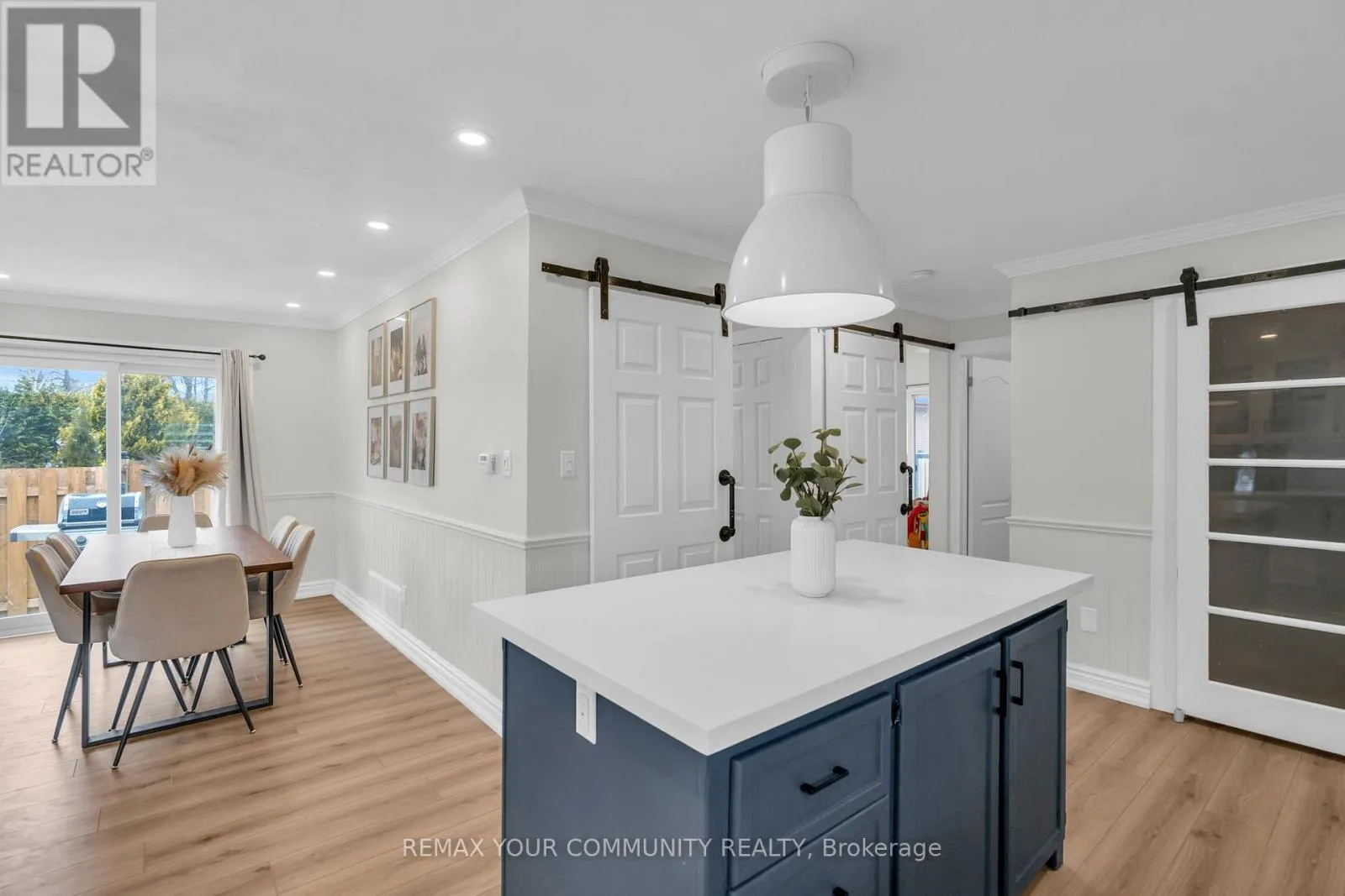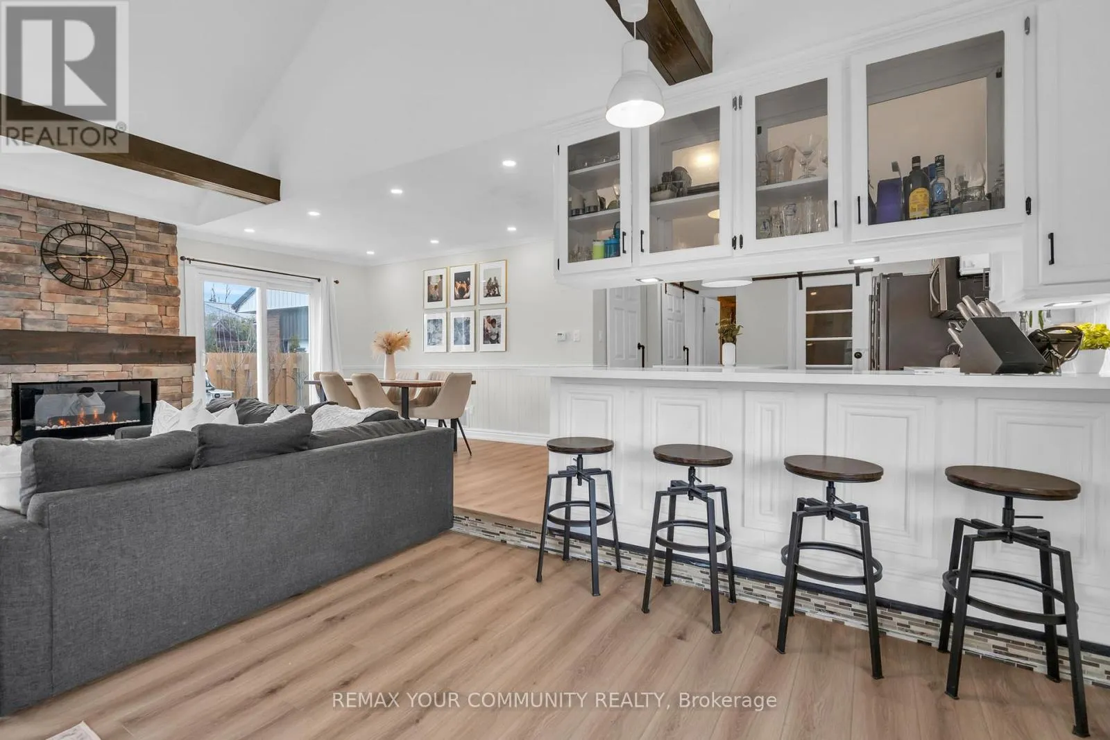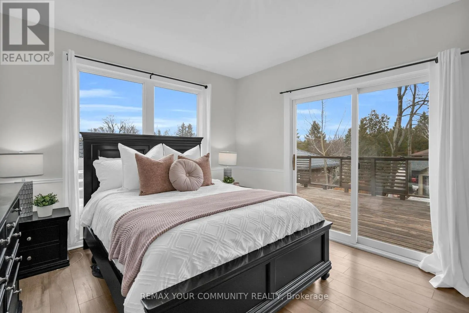 Cross Streets: Kennedy Rd /Metro Rd N. ** Directions: Metro Rd to Farley Circle. Just steps from Lake Simcoe with exclusive residents only lake access, this well maintained home features a bright updated kitchen with quartz countertops, new flooring throughout the main floor, fresh paint, and plenty of natural light. The sunken living room is full of character with cathedral ceilings, wooden beams, a cozy bow window nook, and a beautiful new fireplace feature. The spacious primary suite offers a private ensuite and walkout to a balcony perfect for peaceful mornings. Sliding doors off the dining room lead to a fully fenced, beautifully landscaped backyard with a spacious driveway that leads right to the back, a shed for extra storage and a large detached garage with heat & hydro. Located in a sought after lakeside community, this home is perfect for relaxed living near the water. (id:27476)