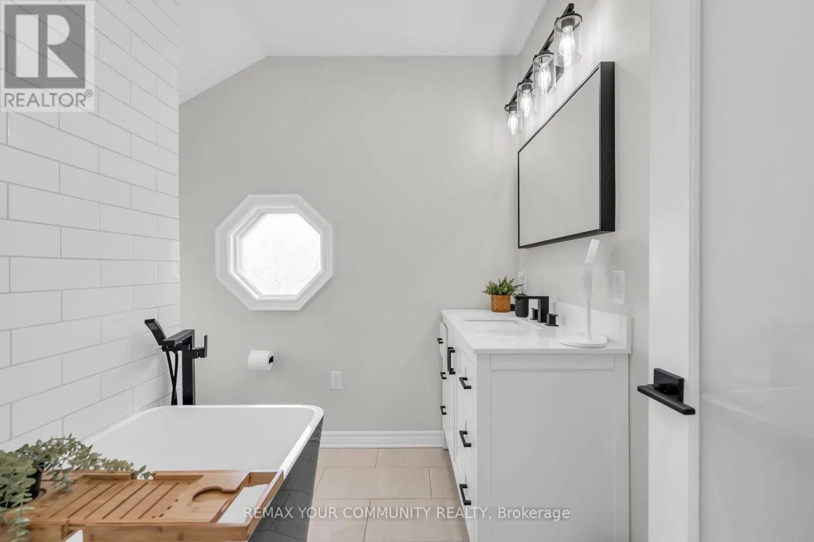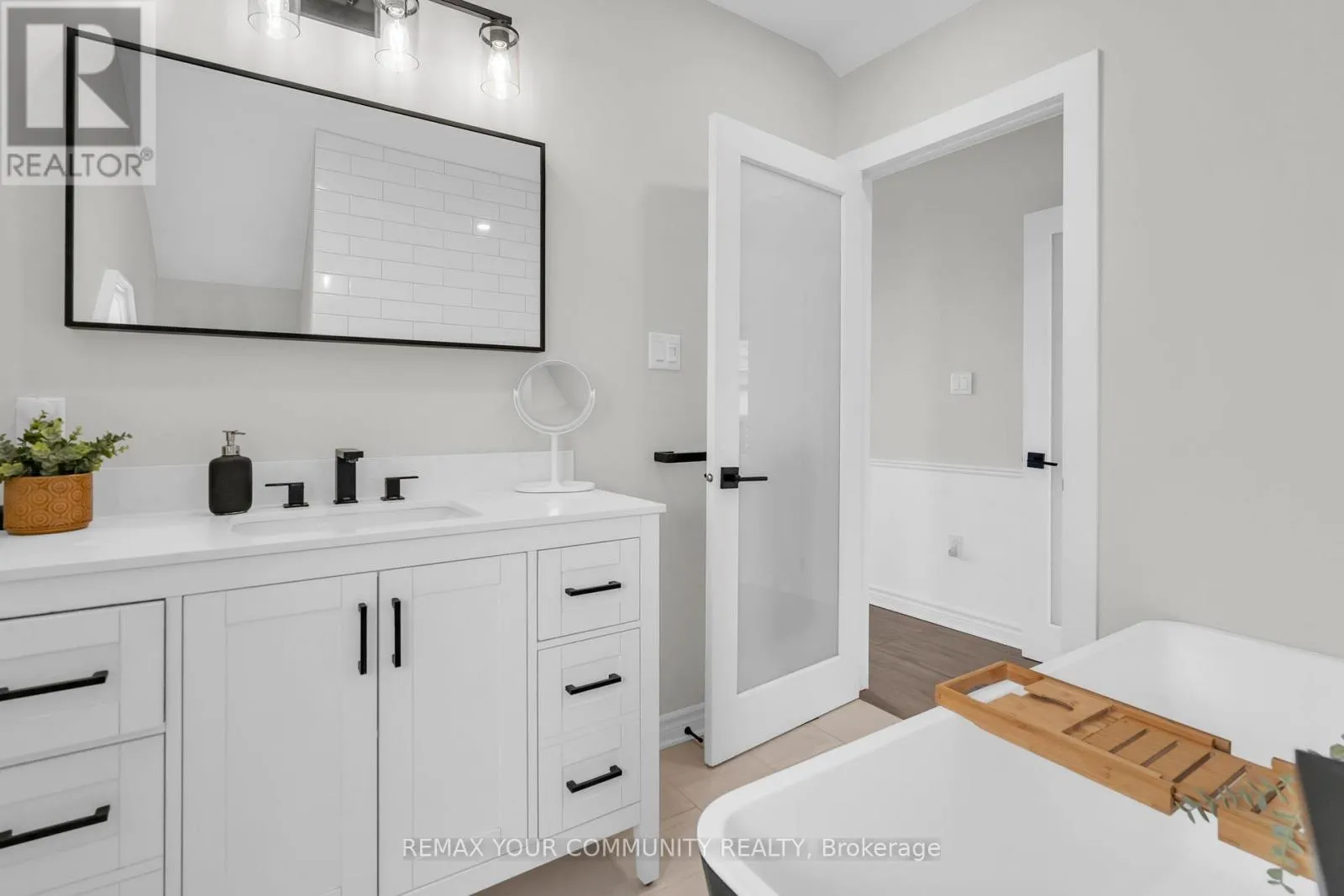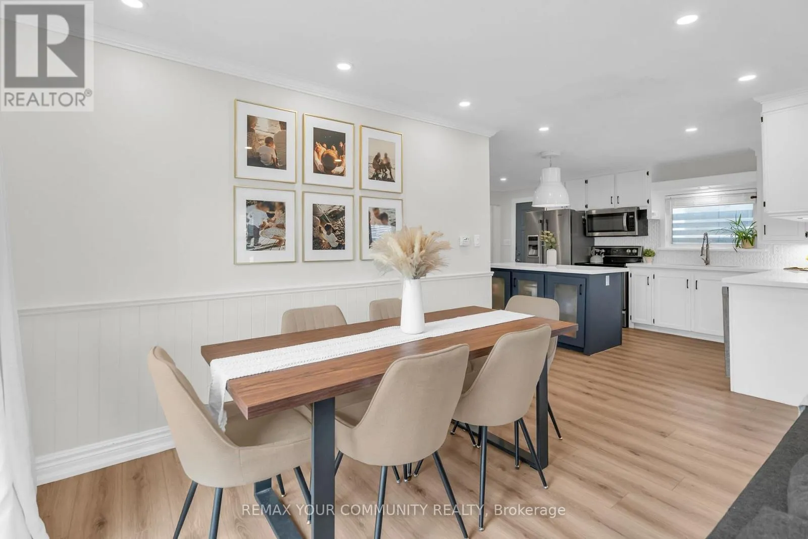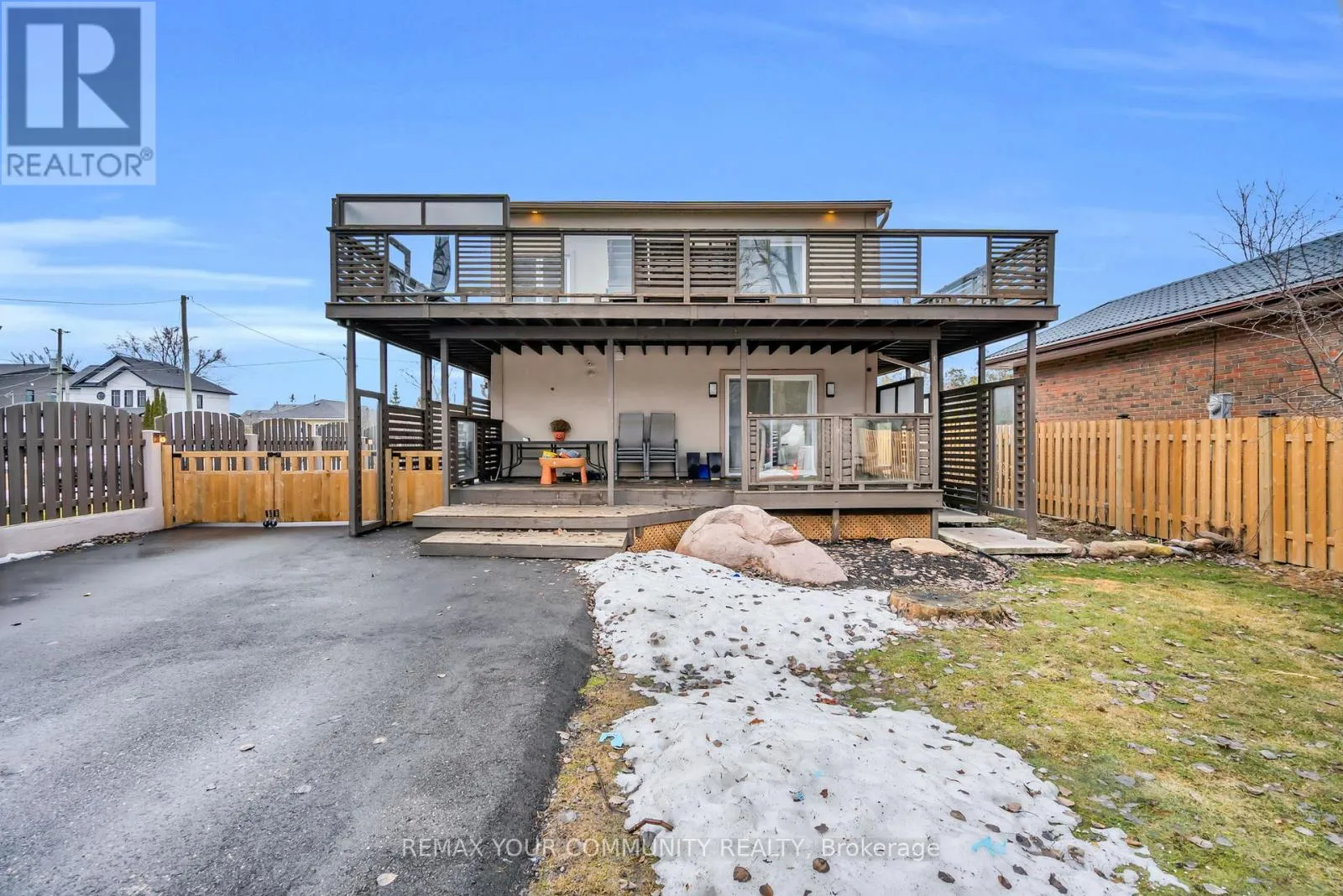 Cross Streets: Kennedy Rd /Metro Rd N. ** Directions: Metro Rd to Farley Circle. Just steps from Lake Simcoe with exclusive residents only lake access, this well maintained home features a bright updated kitchen with quartz countertops, new flooring throughout the main floor, fresh paint, and plenty of natural light. The sunken living room is full of character with cathedral ceilings, wooden beams, a cozy bow window nook, and a beautiful new fireplace feature. The spacious primary suite offers a private ensuite and walkout to a balcony perfect for peaceful mornings. Sliding doors off the dining room lead to a fully fenced, beautifully landscaped backyard with a spacious driveway that leads right to the back, a shed for extra storage and a large detached garage with heat & hydro. Located in a sought after lakeside community, this home is perfect for relaxed living near the water. (id:27476)
