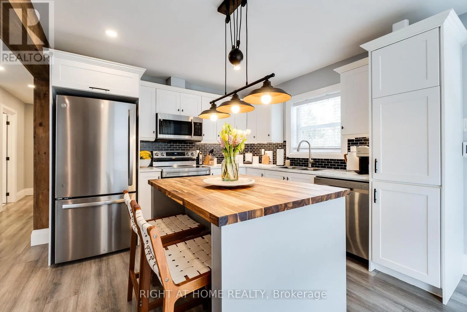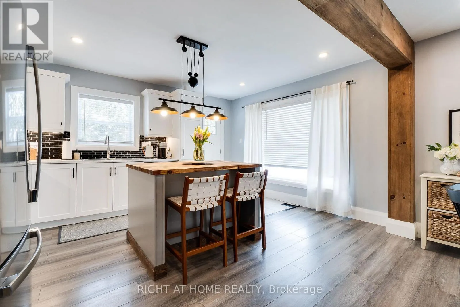Cross Streets: Hwy 48 and Cronsberry Rd. ** Directions: Cronsberry Road and Bluejay Blvd. Beautiful, bright, and open 3-bedroom, 2-bathroom bungalow, tastefully updated and full of charm, just steps from the stunning shores of Lake Simcoe. A new farmhouse-style front door welcomes you into a wonderful open-concept layout ideal for entertaining, front foyer is complete with heated floor for your comfort. The cozy living room features an electric fireplace with a wood beam mantel, adding warmth and character, while stunning structural exposed beams further enhance the home's inviting atmosphere. The dining room is filled with natural light from a large bay window, and the renovated kitchen is complete with modern white cabinetry, a large island with butcher block top, and abundant cabinet space. The spacious primary bedroom offers semi-ensuite access featuring heated floors and a large glass walk-in shower. Two additional large, spacious bedrooms provide comfort and flexibility, complemented by a beautifully renovated main bathroom with a soaker tub and heated floors. Additional highlights include a huge laundry room with a large utility closet, the peace of mind of a new sump pump and well water UV light, plus a detached insolated garage-perfect for a workshop or additional workspace. Situated on a large, private lot with lovely front and backyard landscaping, this outdoor space includes a patio, vegetable garden, and cozy firepit, making it perfect for summer nights. Walk to Royal Beach for swimming, boating, fishing, and snowmobiling, this property offers year-round enjoyment in a fantastic lakeside setting. Water Heater owned (id:27476)