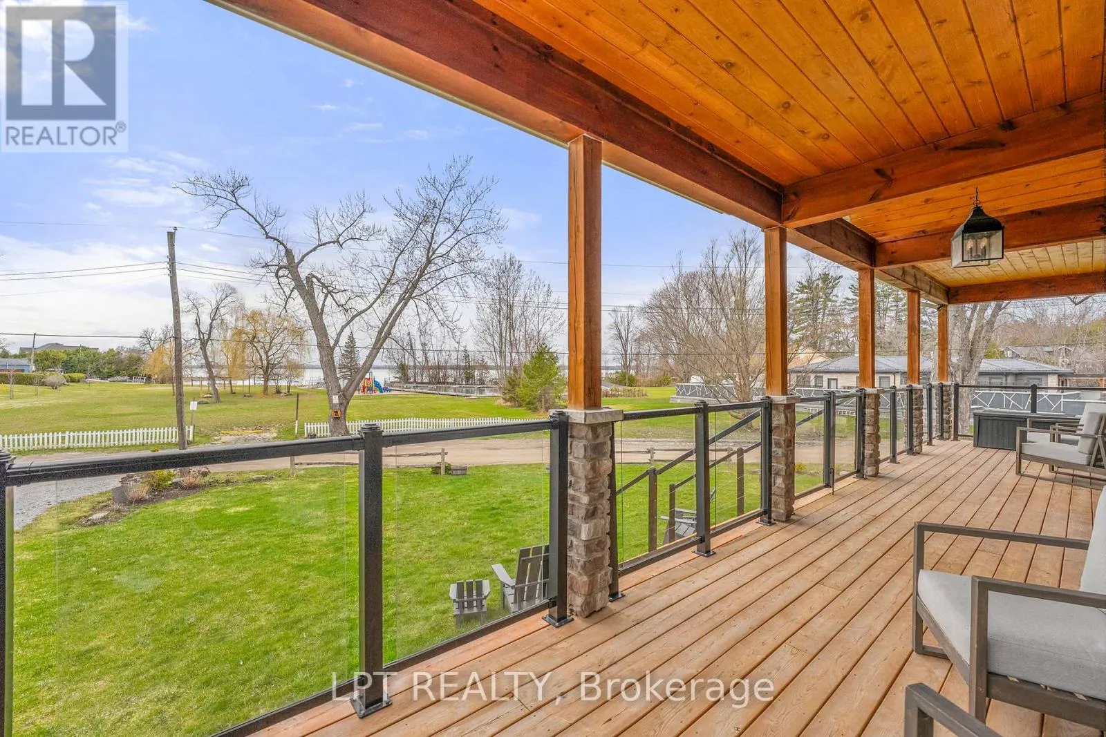 Balfour Beach Rd & Metro Rd N Where Luxury Meets Lake Life. Nestled In The Exclusive Lakeside Community Of Balfour Beach, This Incredible Property Offers Unobstructed Lakefront Views, Access To A Private Park, Sandy Beach, And Marina, And The Ease Of Community-Maintained Landscaping - Making Every Day Feel Like A Getaway. Step Inside This Beautifully Custom-Crafted Raised-Bungalow, Built In 2020, Offering Over 1600 Sq Ft On The Main Floor With Soaring Cathedral Ceilings, Engineered Laminate Floors, A Stunning Gas Fireplace, And A Spacious Open-Concept Layout Designed For Effortless Living And Entertaining. The Custom Kitchen Is A True Showstopper With A Large Centre Island, Quartz Counters, Pantry And Thoughtful Finishes Throughout. With 3+1 Bedrooms And Four Bathrooms, There's Plenty Of Space For Both Family And Guests. Downstairs, The Lower Level Is Mostly Finished And Ready For Your Personal Touches - Ideal For A Recreation Room, Additional Living Space, Or Guest Suite. Radiant In-Floor Heating Runs Throughout The Basement And Continues Into The Extra-Wide, Drive-Thru Two-Car Garage. Outside, A 40 Ft X 8 Ft Covered Front Porch Offers The Perfect Spot To Take In The Breathtaking Sunsets, While The Large Breezeway And Expansive Yard Add Even More Room To Relax Or Entertain. Just 10 Minutes From Highway 404 And Close To All Amenities, This Is Where Staycations Become Your Everyday Norm - With Views You'll Never Want To Leave. (id:27476)