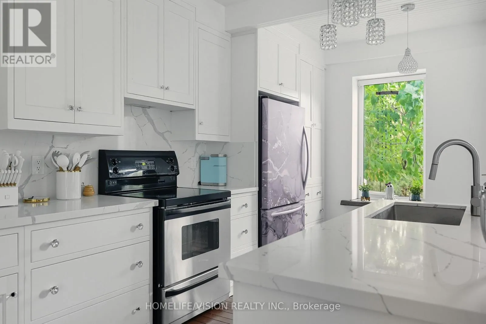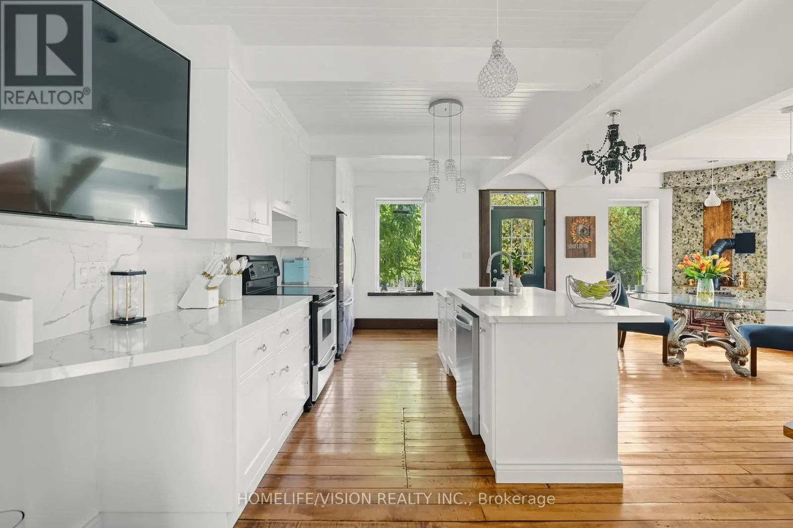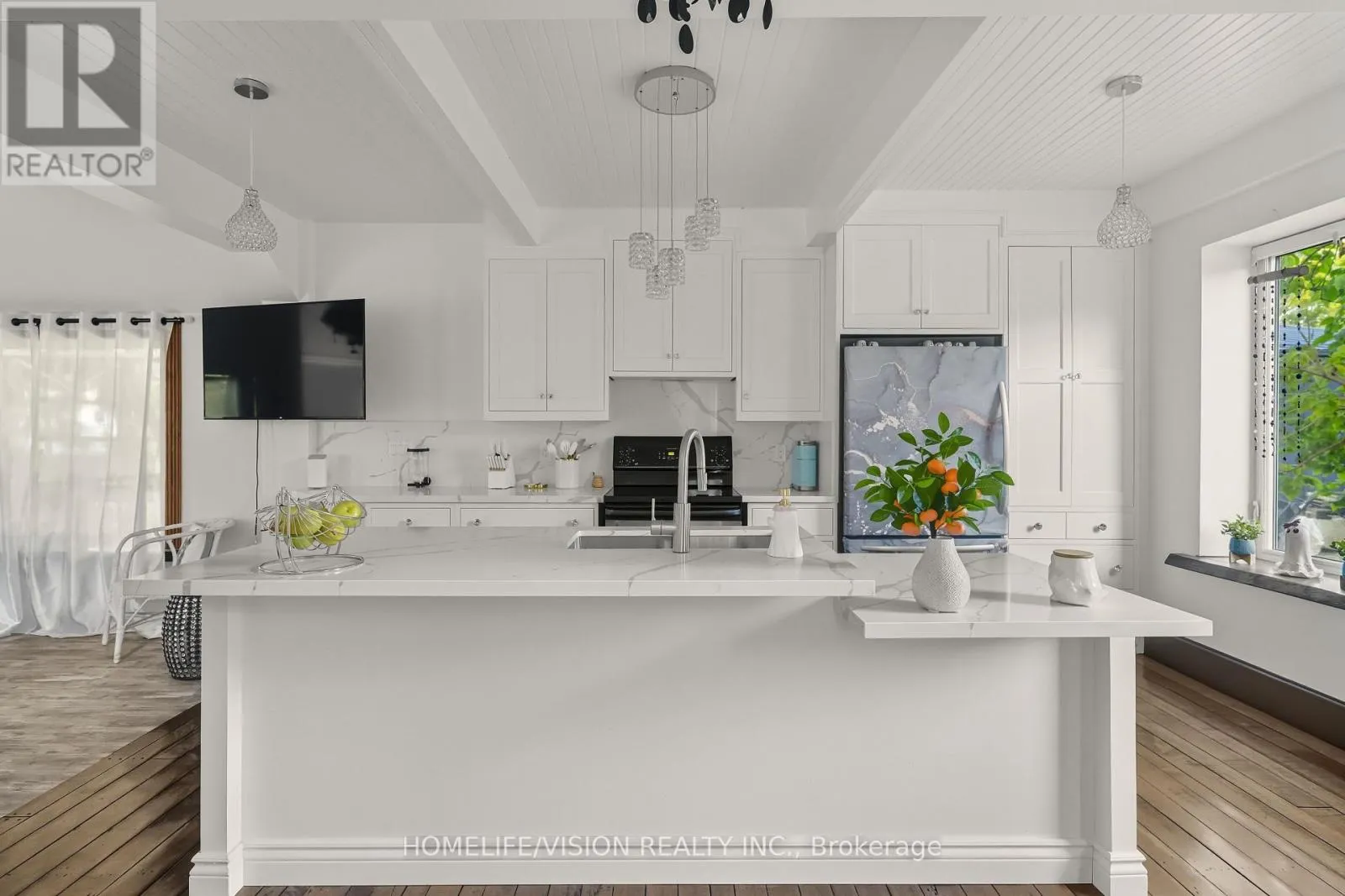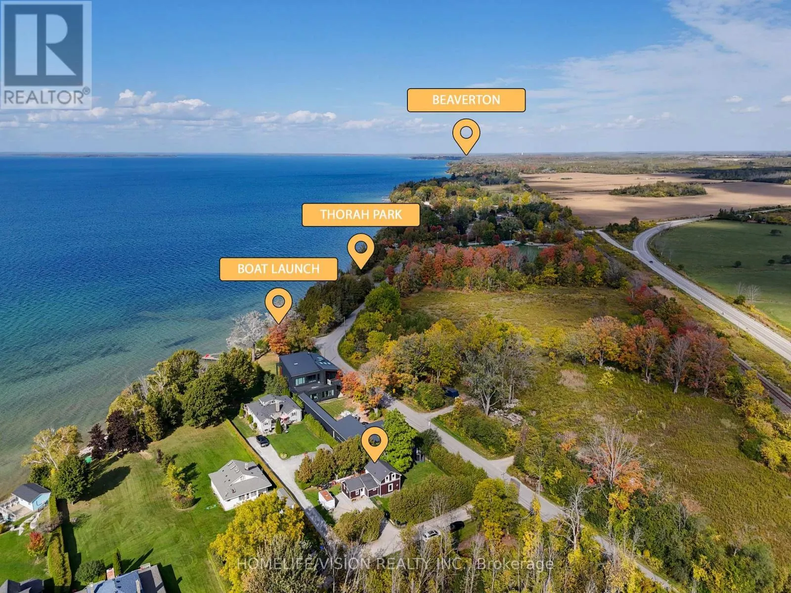 Cross Streets: Bolster Lane/Thorah Park Blvd. ** Directions: North on Lake Ridge from Highway 48. Go West on Bolster Lane. First house on North Side. This thoughtfully renovated 1.5-storey home on a private road blends modern comfort with cozy charm. Enjoy lake views, mature trees, and a fully fenced yard - perfect for kids, pets, and family gatherings. Vaulted ceilings create a bright, airy feel, and the brand new modern kitchen is a chefs dream with gorgeous quartz countertops, a 36-inch sink, new dishwasher, and all the must-have amenities! Newly renovated bathrooms with one on the main floor and another upstairs. Throughout the home, you'll find all new windows, new interior doors and all new light fixtures. The exterior boasts newer siding and a metal roof. A new shed adds extra storage for all your outdoor essentials! Main floor built with wheelchair accessibility in mind. Located just 10 minutes to Pefferlaw or Beaverton, 17 minutes to Cannington or Sunderland, and only 28 minutes to Uxbridge or Keswick, this home offers small-town serenity with easy access to everything you need. (id:27476)