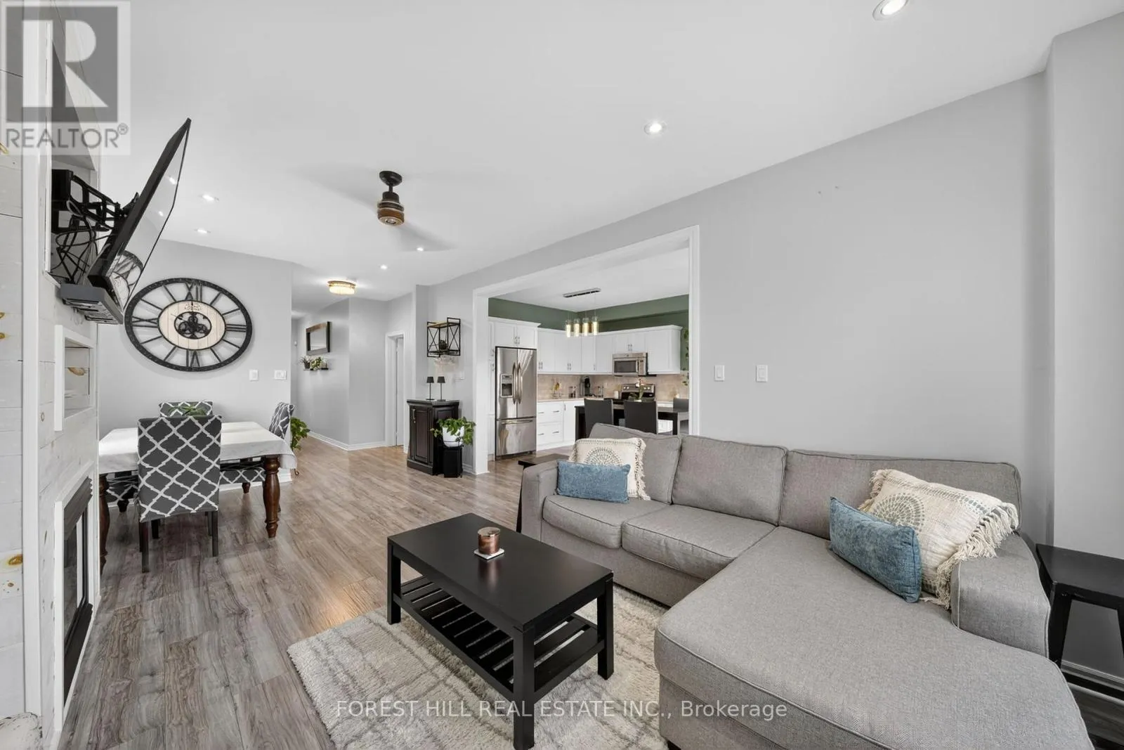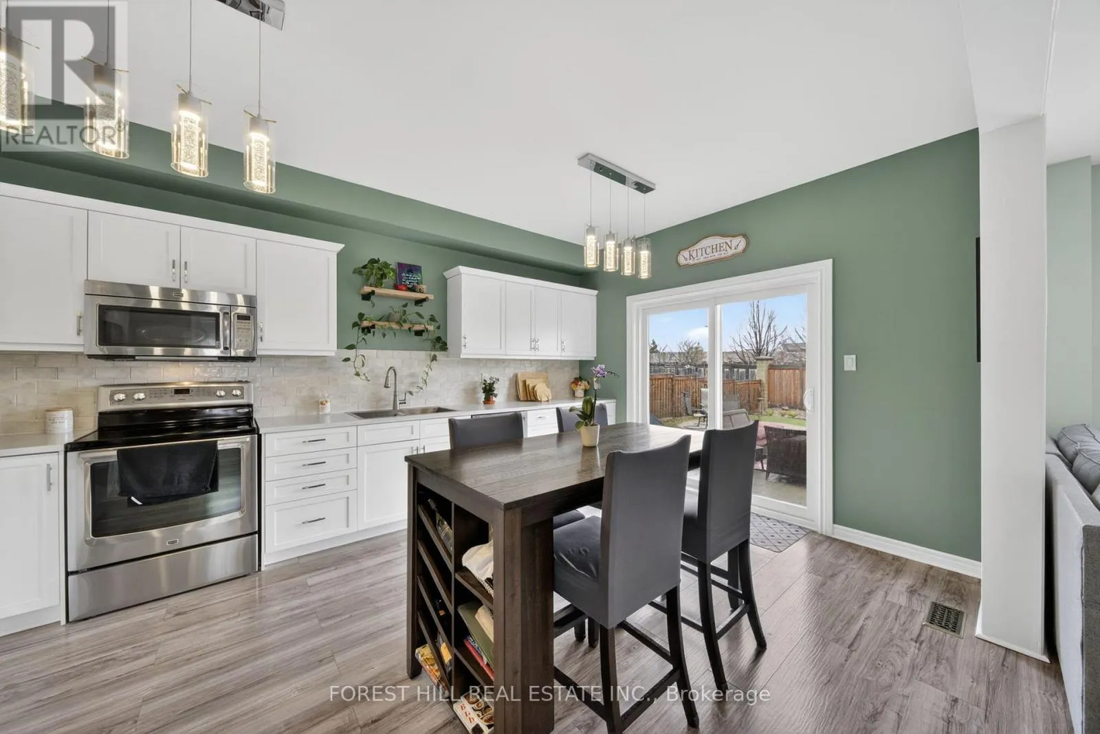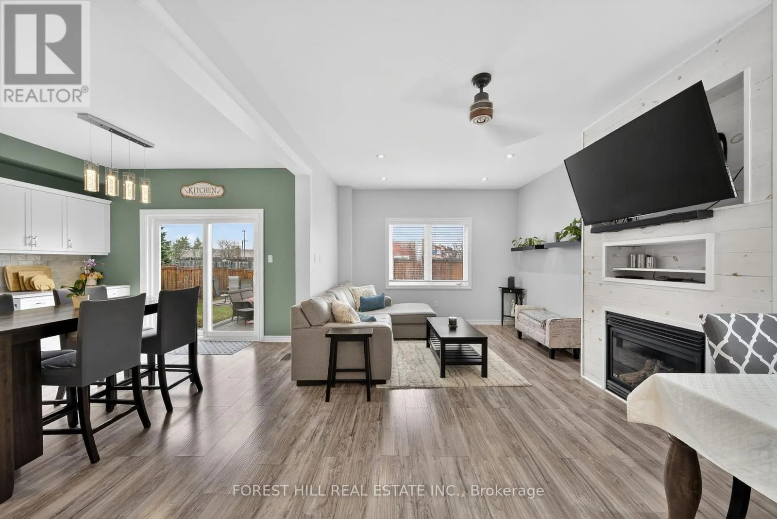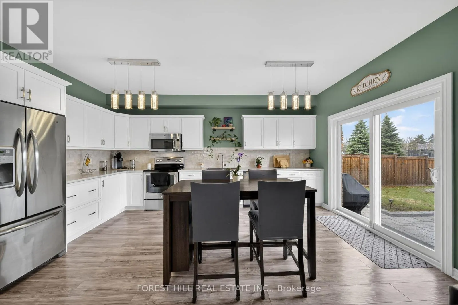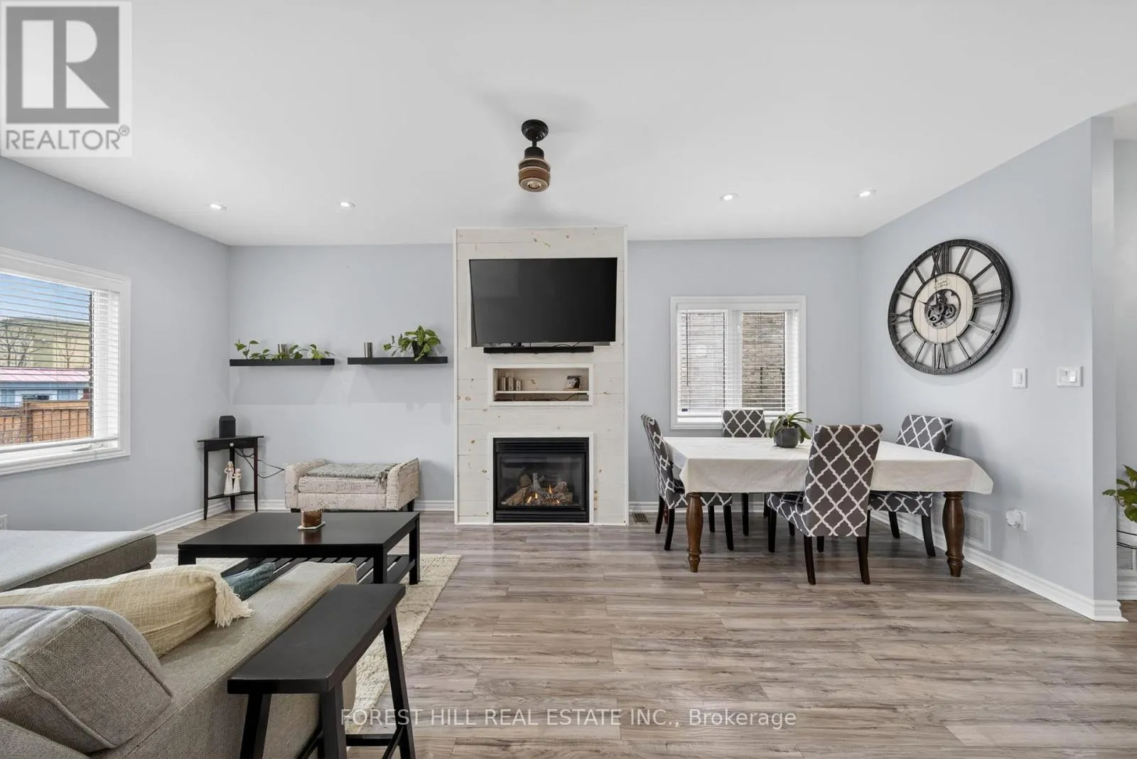 Arlington Drive and Woodbine Ave Welcoming front porch invites you to this charming detached home offering 4 bedrooms and 3 bathrooms in a bright, open layout ideal for family living and entertaining. The main floor features an eat-in kitchen that flows seamlessly into a combined living/dining area anchored by a cozy gas fireplace. Convenient main-level garage entry and a dedicated laundry room add everyday practicality. Step through the walk-out to a private, landscaped pie-shaped lot with a hot tub and custom fire pit-perfect for relaxing or hosting friends. Generous bedroom sizes and versatile living spaces provide room for a home office, playroom or guest suite. Large unfinished basement for your added value With 10'X 8'Cold Storage & Rough In For Washroom.Enjoy his family-friendly neighbourhood close to schools, parks, community centres and the lake, This home blends comfortable indoor living with outstanding outdoor amenities. (id:27476)