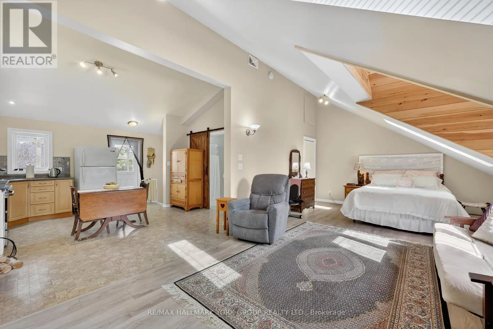 Cross Streets: Highway 48/Smith. ** Directions: North on Highway 404, North on Woodbine, East on Ravenshoe, North on Highway 48, East on Smith Blvd. An Amazing Opportunity! Fantastic Family Home On A Beautiful 4.85 Acre (Per MPAC) Property With A Pond In The Charming Hamlet of Baldwin! Over 3100 Sq Ft, This Sun-Filled Home Features An Open Concept Layout, An Inviting Family Room, Generously Sized Dining Area With Soaring Ceilings, Exposed Beams & Large Windows Overlooking The Stunning Nature Views & Mature Trees. Spacious Kitchen With Tile Backsplash, Breakfast Bar & Walk-Out To Sunroom - A Fantastic Entertainment Or Additional Living Space! Also Featuring An Above Grade Separate Studio Suite With Kitchen, Living Area/Bedroom, Propane Fireplace, 3-Piece Bathroom, Private Balcony & Separate Entrance. Other Features Include Updated Furnace & CAC & 2 Car Drive-Through Garage. Enjoy The Peace & Privacy Of This Gorgeous Property, The Feeling Of Small Town Living While Only A Short Drive To All Keswick Amenities - Truly A Rare Find! (id:27476)
