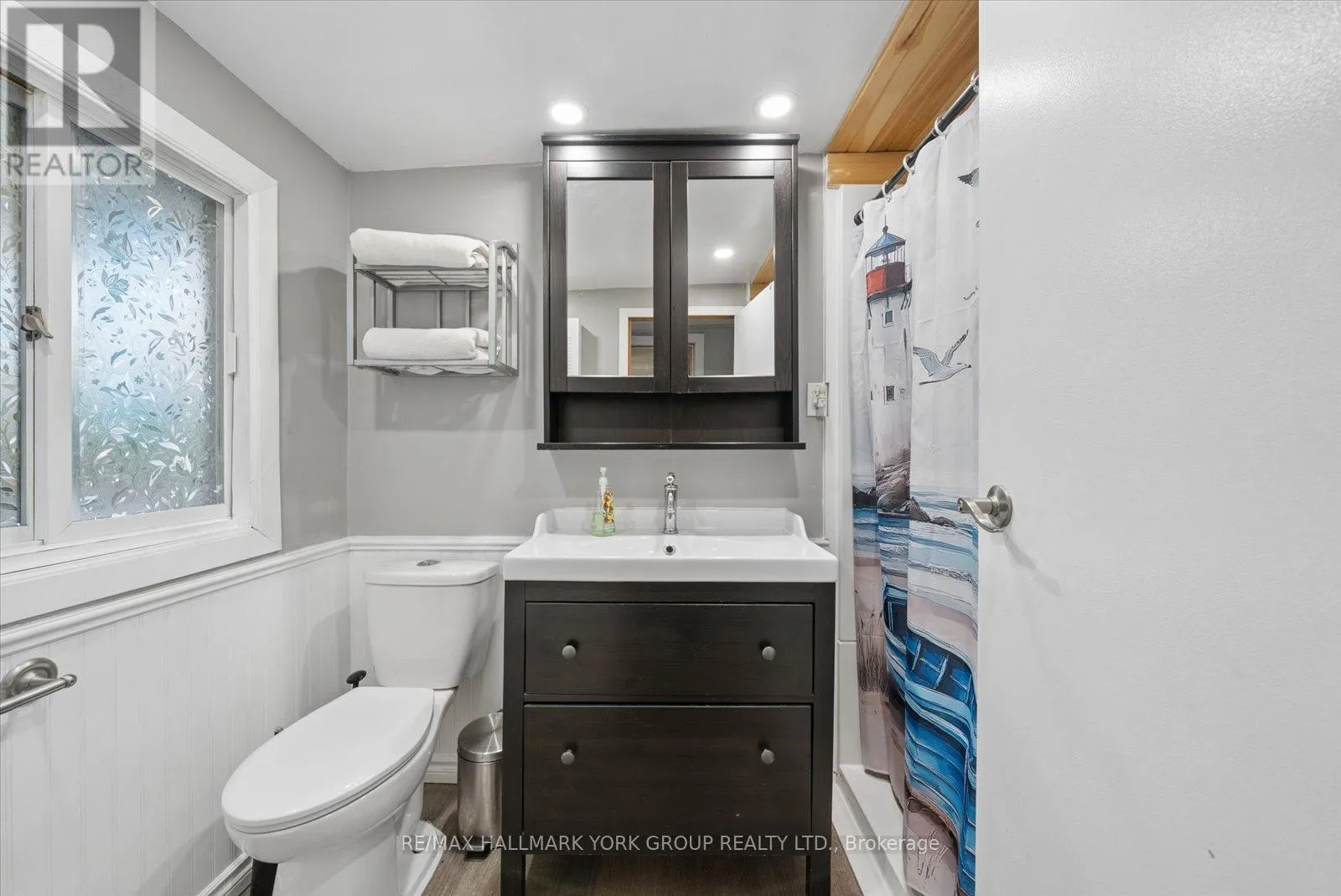 Lake Dr / Civic Ctr Rd Welcome to this stunning, move-in ready 2-bedroom bungalow, ideally located on a quiet no-exit street with deeded beach access. Situated on a large 50' x 183' fully hedged lot, this property offers exceptional privacy and a serene outdoor setting. The home features impressive high beamed cathedral ceilings and hardwood floors throughout the main living area, creating a bright and airy atmosphere. The renovated centre island kitchen is both stylish and functional, complete with a breakfast bar, stainless steel appliances, quartz countertops and open sightlines to the family room-also showcasing soaring cathedral ceilings. Enjoy outdoor living on the covered deck overlooking the private backyard, perfect for relaxing or entertaining. Additional highlights include a one-car garage with convenient walk-through access to the home. Located close to all amenities, including schools, parks, transit and shopping, this home combines comfort, style, and an unbeatable location. (id:27476)