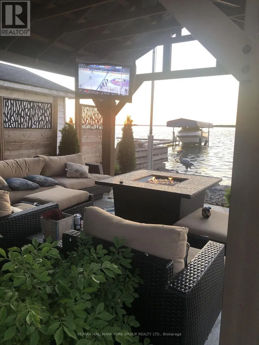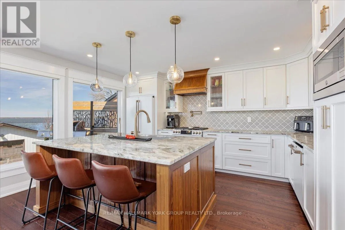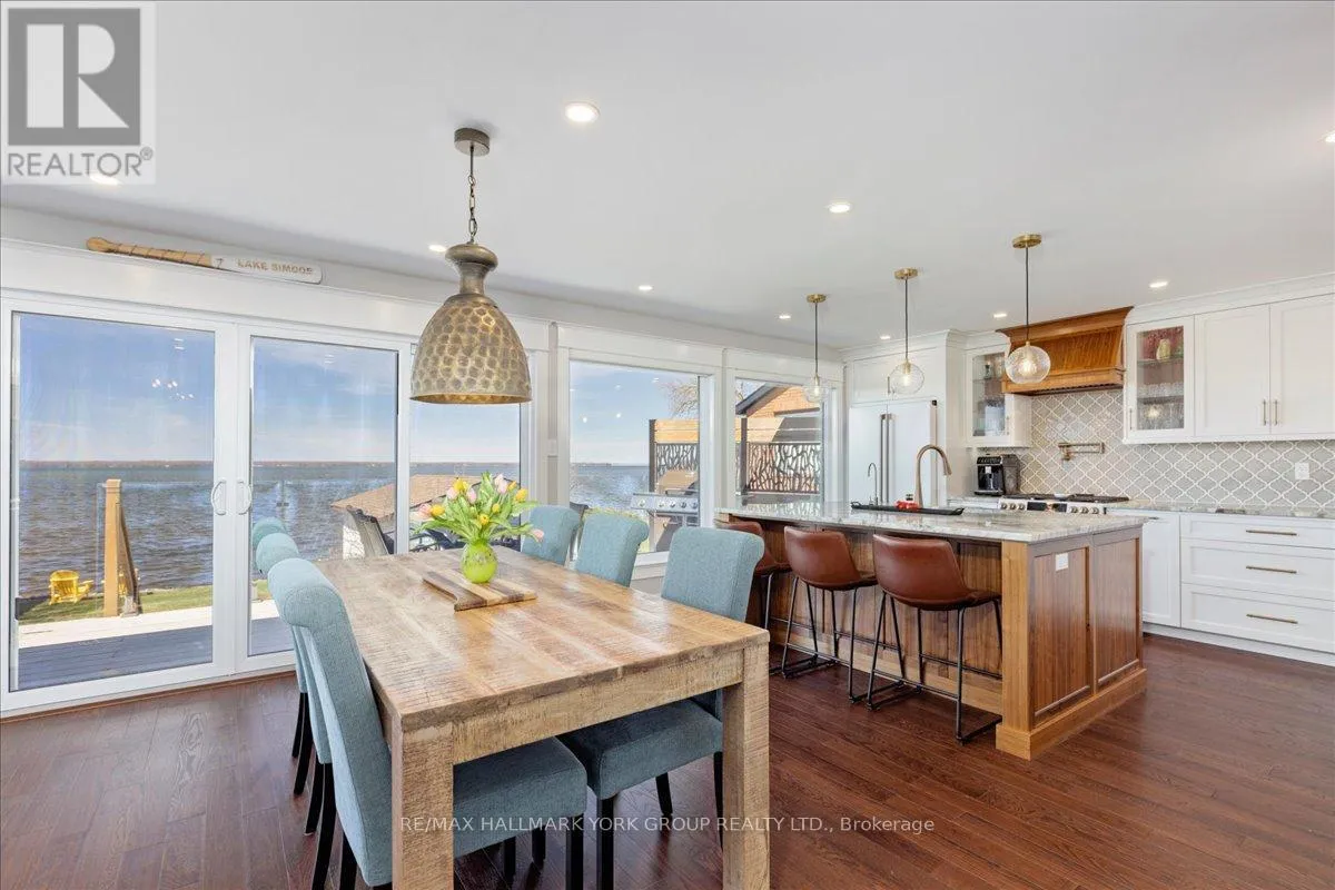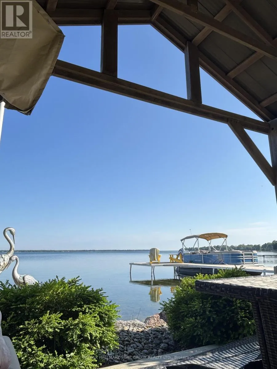 HWY 48 & Sunkist Rd Thoughtfully and tastefully renovated with rich quality finishings this picture perfect direct lakefront home offers gorgeous panoramic lake views and year round recreation at your doorstep. The welcoming entry features a spacious enclosed foyer and a 10' high hallway that overlooks a stunning great room with huge windows and glass deck panels enhancing the spectacular lake view. The warm and inviting space features a floor to ceiling stone fireplace ideal for those cozy nights, comfortable dining area with walkout to deck and a top-tier custom kitchen featuring a large island ideal for casual meals or hanging out with your guests while they await their gourmet meal. The dual gas range/electric oven, custom hood fan & pot filler along with plenty of cabinets and a hidden pantry all add function to the space. A generous Primary suite features wall to wall closets, picture window and a spacious 5pc ensuite with a clean touch bidet. Hardwood floors, pot lit ceilings, main level laundry and heated bathroom floors add warmth, character and functionality. The bright and open at grade lower level is ideal for guests, extended family or teenage children to enjoy privacy and walk out to lake activities. The 32' X 11.10' garage is insulated, drywalled and heated and features a studio workshop at the rear. The well-appointed exterior offers a premium 77' X 205' lot, landscaped armour stone entry, 2 cherry & 1 peach tree, multiple car parking and a fun and relaxing lakeside retreat. Enjoy the true beauty of the lake highlighted by over 70' of shoreline, a 24' X 16 dry' boathouse, 60' seasonal dock and waterside gazebo. This home is move in ready with a flexible/quick closing available. (id:27476)