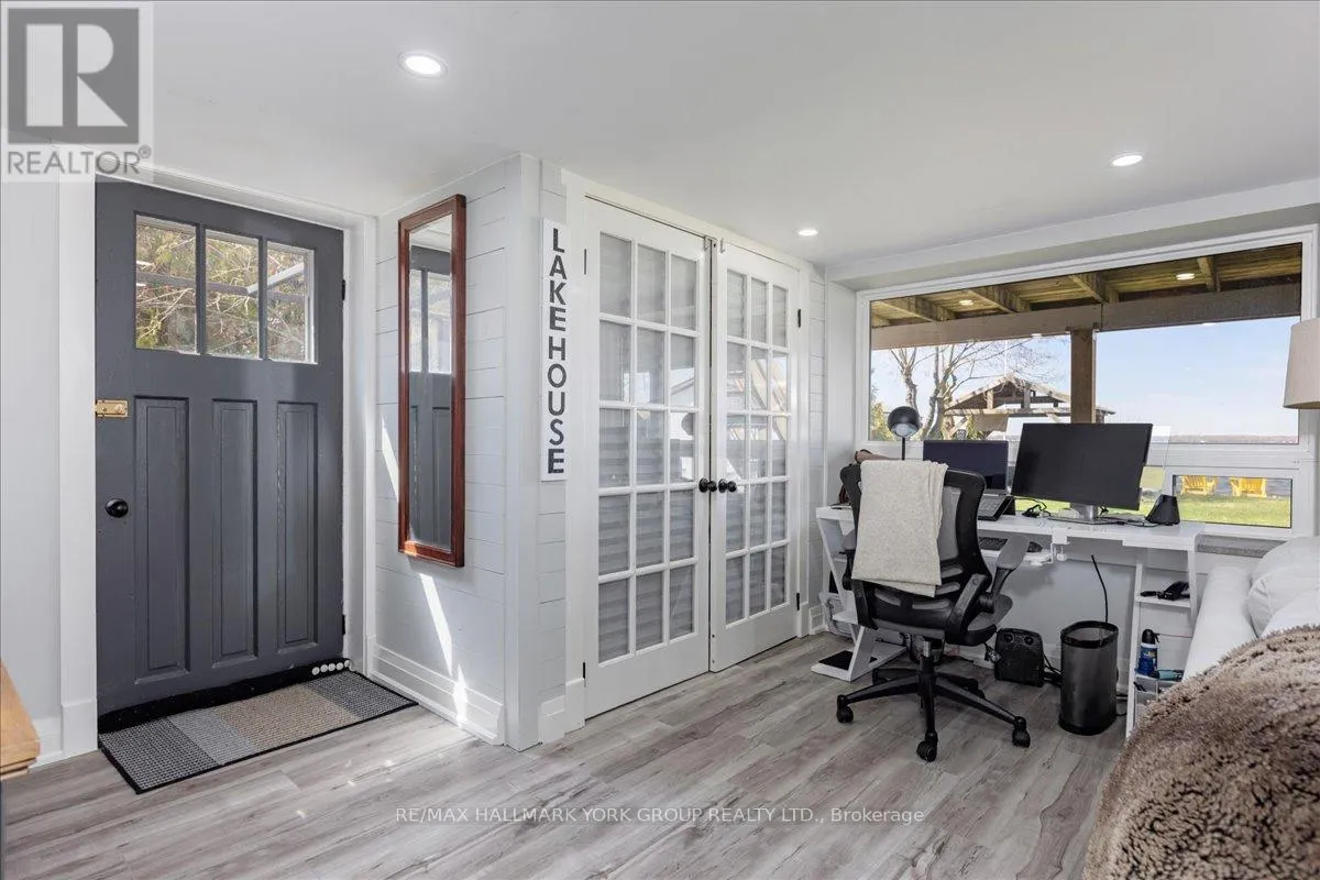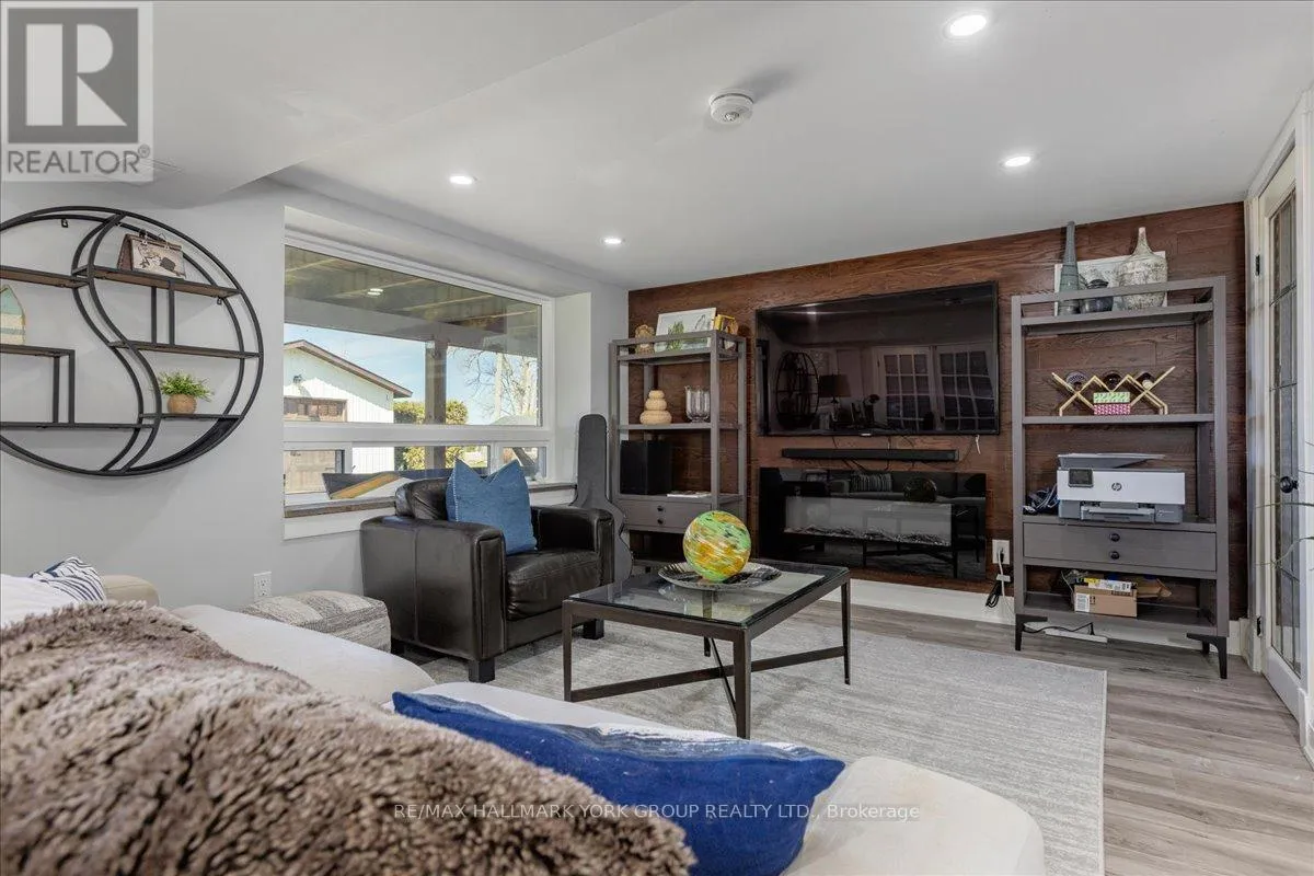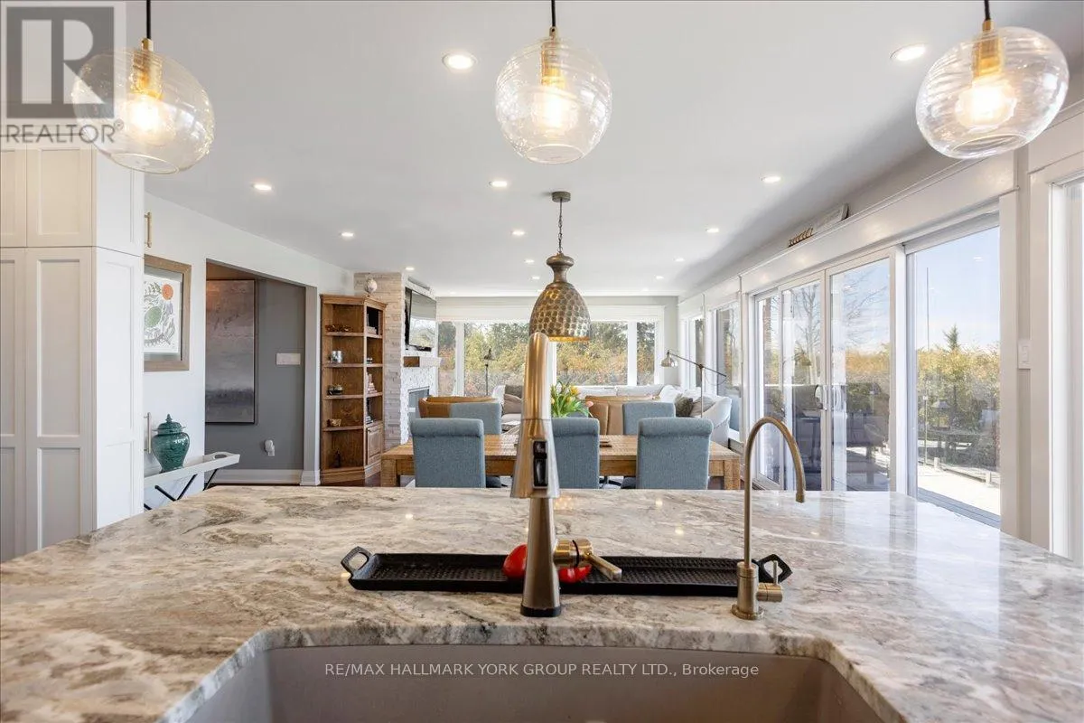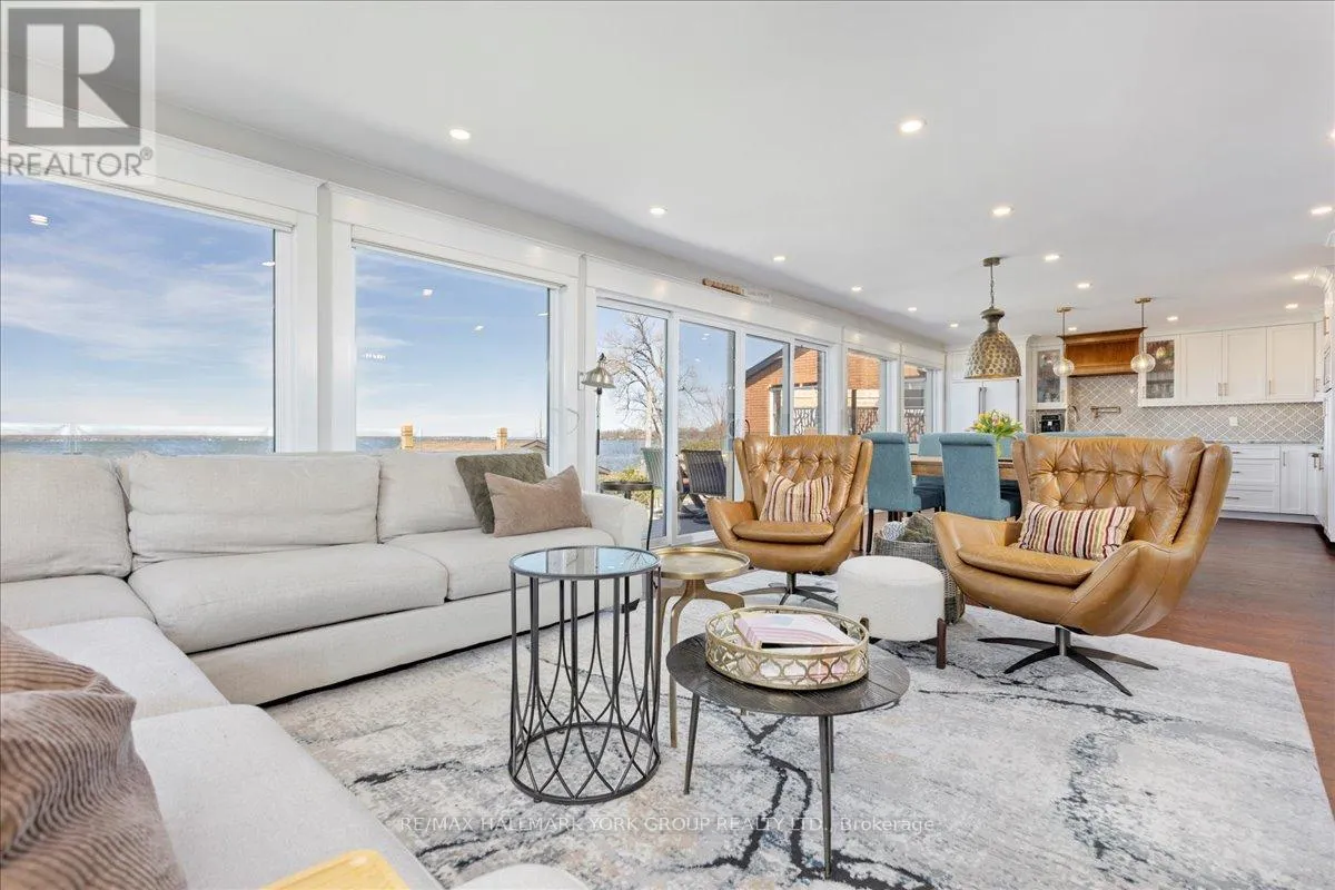 HWY 48 & Sunkist Rd Thoughtfully and tastefully renovated with rich quality finishings this picture perfect direct lakefront home offers gorgeous panoramic lake views and year round recreation at your doorstep. The welcoming entry features a spacious enclosed foyer and a 10' high hallway that overlooks a stunning great room with huge windows and glass deck panels enhancing the spectacular lake view. The warm and inviting space features a floor to ceiling stone fireplace ideal for those cozy nights, comfortable dining area with walkout to deck and a top-tier custom kitchen featuring a large island ideal for casual meals or hanging out with your guests while they await their gourmet meal. The dual gas range/electric oven, custom hood fan & pot filler along with plenty of cabinets and a hidden pantry all add function to the space. A generous Primary suite features wall to wall closets, picture window and a spacious 5pc ensuite with a clean touch bidet. Hardwood floors, pot lit ceilings, main level laundry and heated bathroom floors add warmth, character and functionality. The bright and open at grade lower level is ideal for guests, extended family or teenage children to enjoy privacy and walk out to lake activities. The 32' X 11.10' garage is insulated, drywalled and heated and features a studio workshop at the rear. The well-appointed exterior offers a premium 77' X 205' lot, landscaped armour stone entry, 2 cherry & 1 peach tree, multiple car parking and a fun and relaxing lakeside retreat. Enjoy the true beauty of the lake highlighted by over 70' of shoreline, a 24' X 16 dry' boathouse, 60' seasonal dock and waterside gazebo. This home is move in ready with a flexible/quick closing available. (id:27476)