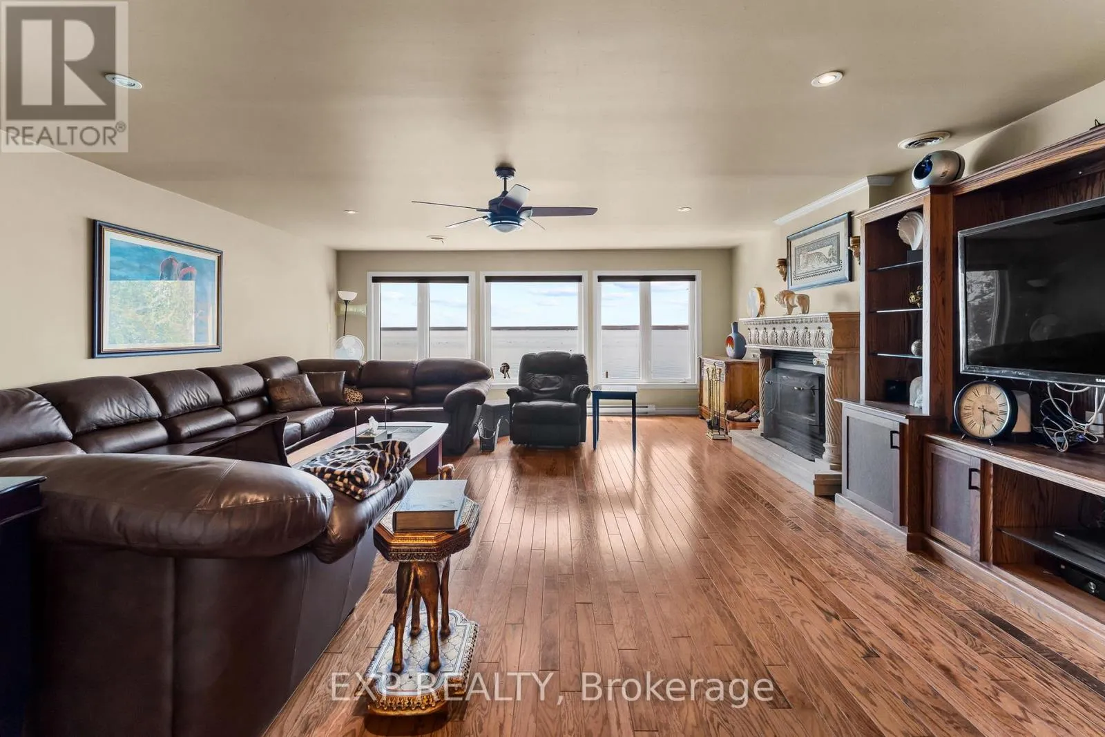 Hwy 48 & Duclos Point Rd Experience the pinnacle of waterfront living at Duclos Point one of Georgina's most sought after areas. This direct lakefront retreat offers breathtaking sunset views over Lake Simcoe, complete with a retaining wall at the water's edge and the kind of natural beauty that simply cannot be replicated.The spacious 4-bedroom, 4-bathroom home spans 2,723 sq ft with a thoughtfully unique layout designed for both comfort and entertaining. The open-concept family and dining area is anchored by a wood-burning fireplace and framed by sweeping lake views, while the sunken living room adds an architectural charm rarely found at this price point. A dedicated home office walks out directly to the deck and waterfront - making working from home feel like a permanent vacation. The primary bedroom features a generous ensuite, and the finished basement rec room offers additional space for family, guests, or hobbies. A 2-car garage completes the package.Step outside your door and into the exclusive Duclos Point community, where an 8-acre private park awaits with tennis and pickleball courts, volleyball, a gazebo, playgrounds, and seasonal community events - all for just $300/year in membership fees.Just one hour from Toronto, this is the rare property that works as a year-round residence or the ultimate summer escape from city life. Whether you're watching the sun dip below the horizon from your deck or rallying on the courts with neighbours.Your waterfront lifestyle starts here. (id:27476)
