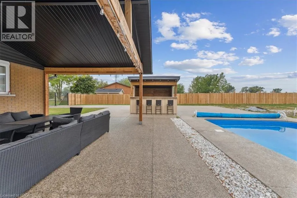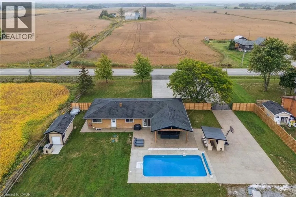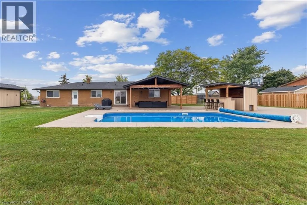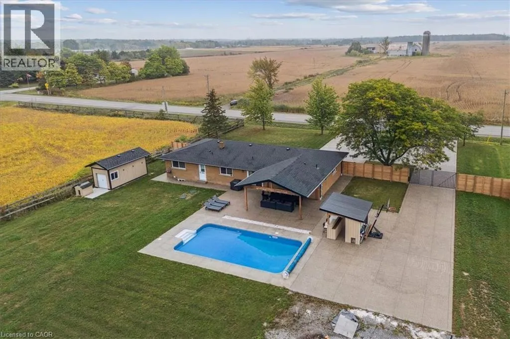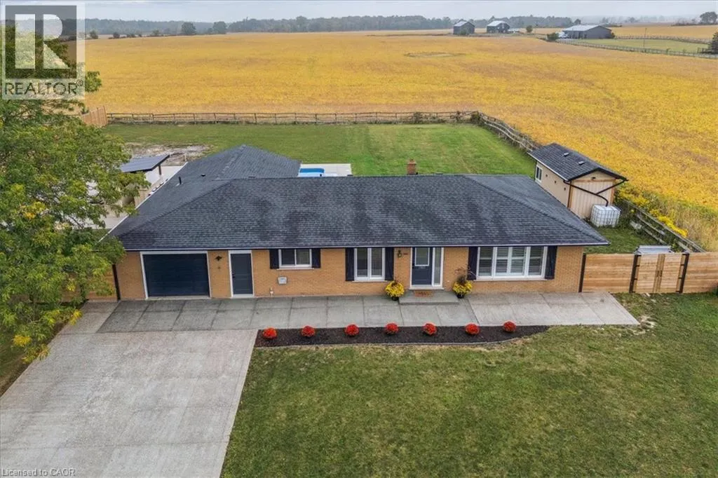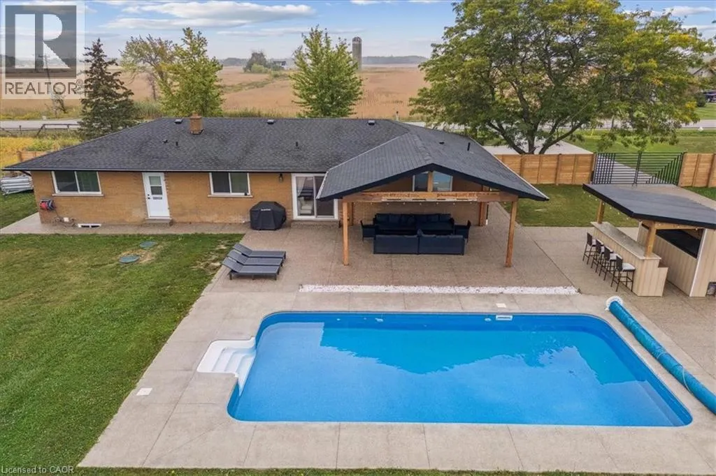 On Binbrook Rd. Nestled in a private and tranquil setting with open views of rolling fields, this updated 3-bedroom, 2-bathroom bungalow offers the perfect blend of rural serenity and modern convenience. From the moment you arrive, youâll appreciate the spacious u-turn driveway with ample parking (including space for utility vehicles) and the freshly poured concrete finishes that add a sleek, modern touch. Step inside to discover an open concept layout, designed for effortless entertaining and everyday family living. The bright and airy living space flows seamlessly into the dining area and kitchen, creating the true heart of the home. Tremendous storage throughout, entertainers rec room area. Outdoors, the property shines with a new saltwater pool, perfect for summer relaxation and family fun. The fully fenced yard ensures privacy and safetyâideal for children, pets, and gatherings with friends. (id:27476)