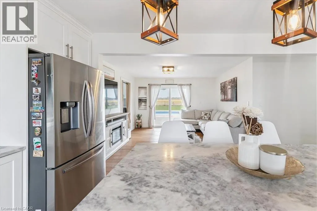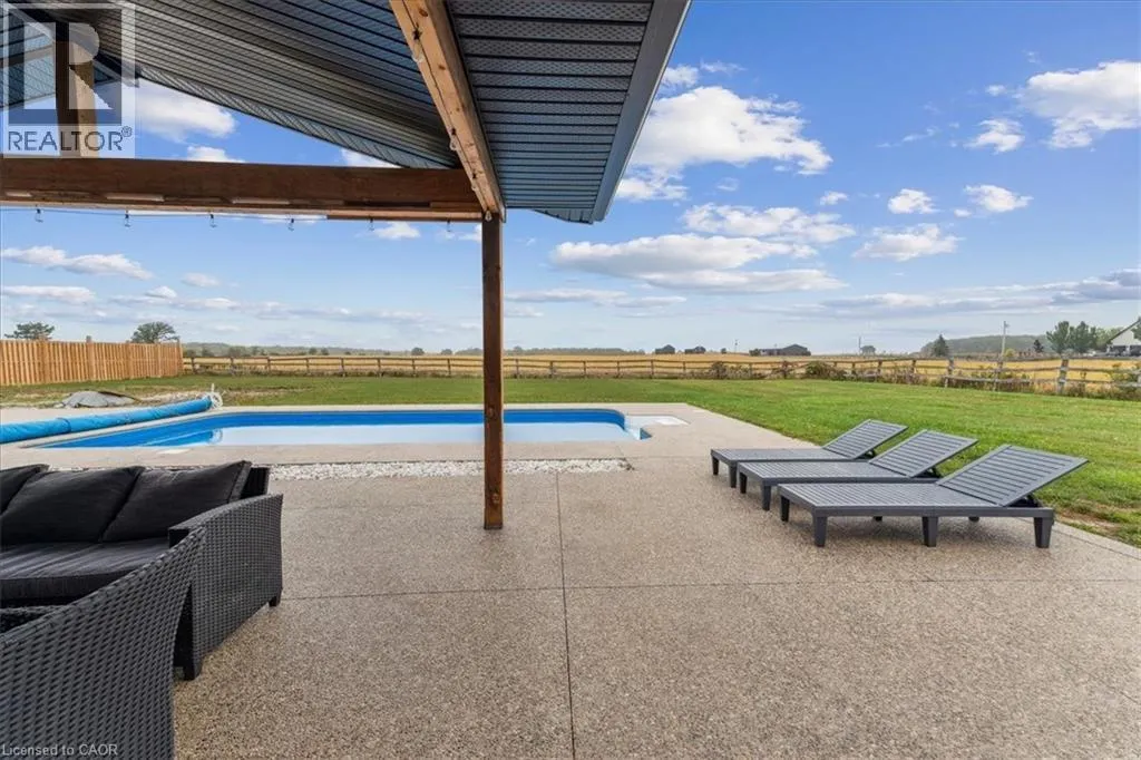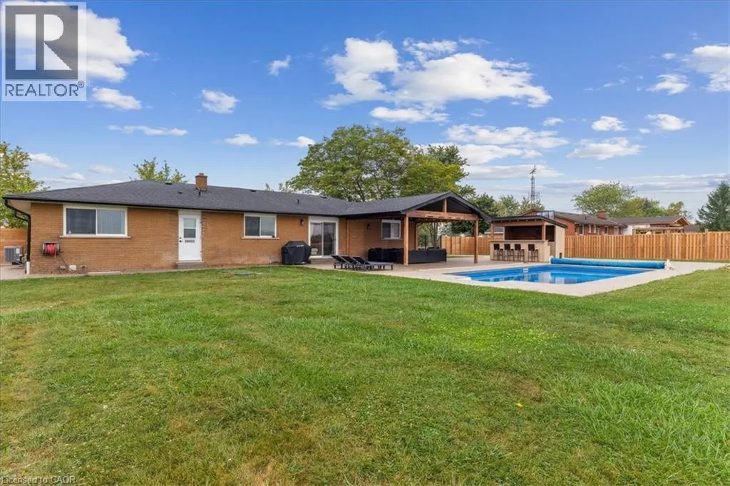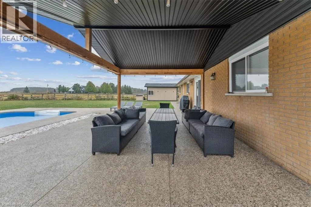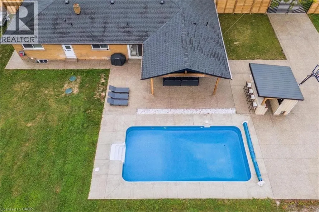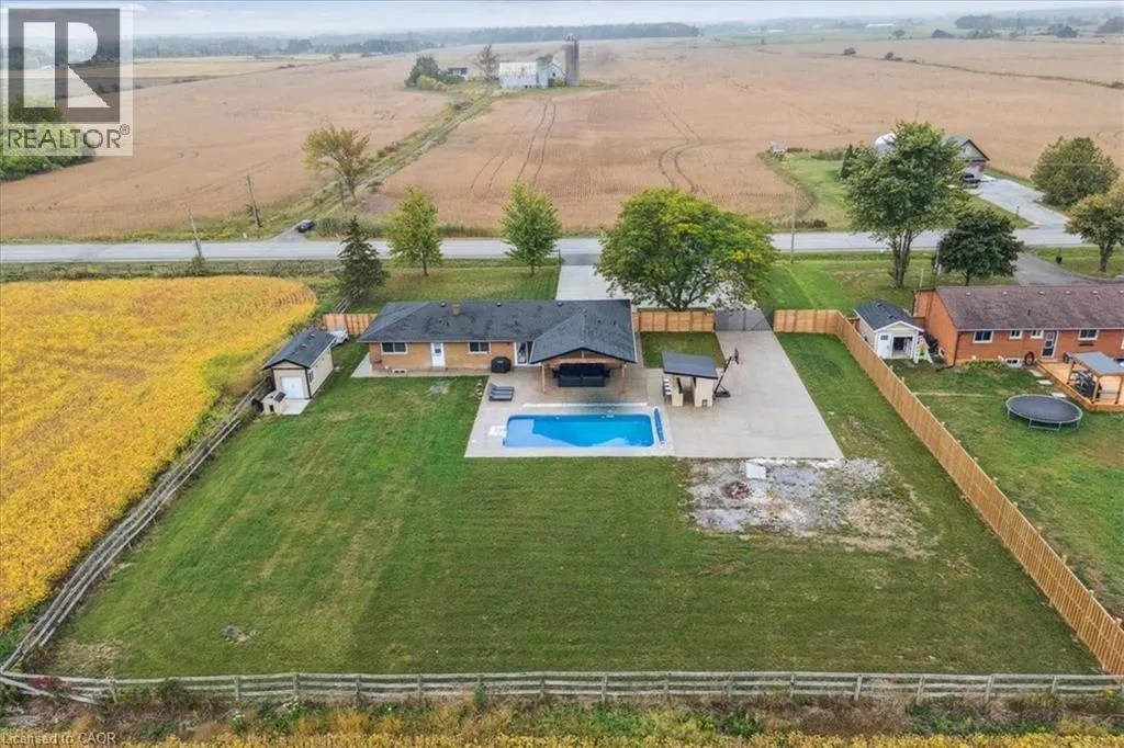 On Binbrook Rd. Nestled in a private and tranquil setting with open views of rolling fields, this updated 3-bedroom, 2-bathroom bungalow offers the perfect blend of rural serenity and modern convenience. From the moment you arrive, youâll appreciate the spacious u-turn driveway with ample parking (including space for utility vehicles) and the freshly poured concrete finishes that add a sleek, modern touch. Step inside to discover an open concept layout, designed for effortless entertaining and everyday family living. The bright and airy living space flows seamlessly into the dining area and kitchen, creating the true heart of the home. Tremendous storage throughout, entertainers rec room area. Outdoors, the property shines with a new saltwater pool, perfect for summer relaxation and family fun. The fully fenced yard ensures privacy and safetyâideal for children, pets, and gatherings with friends. (id:27476)