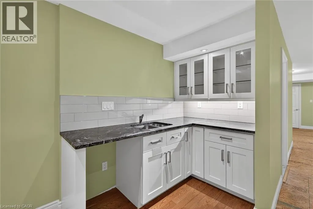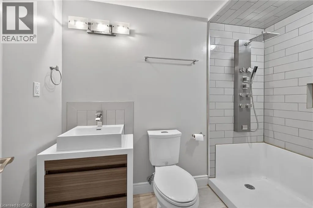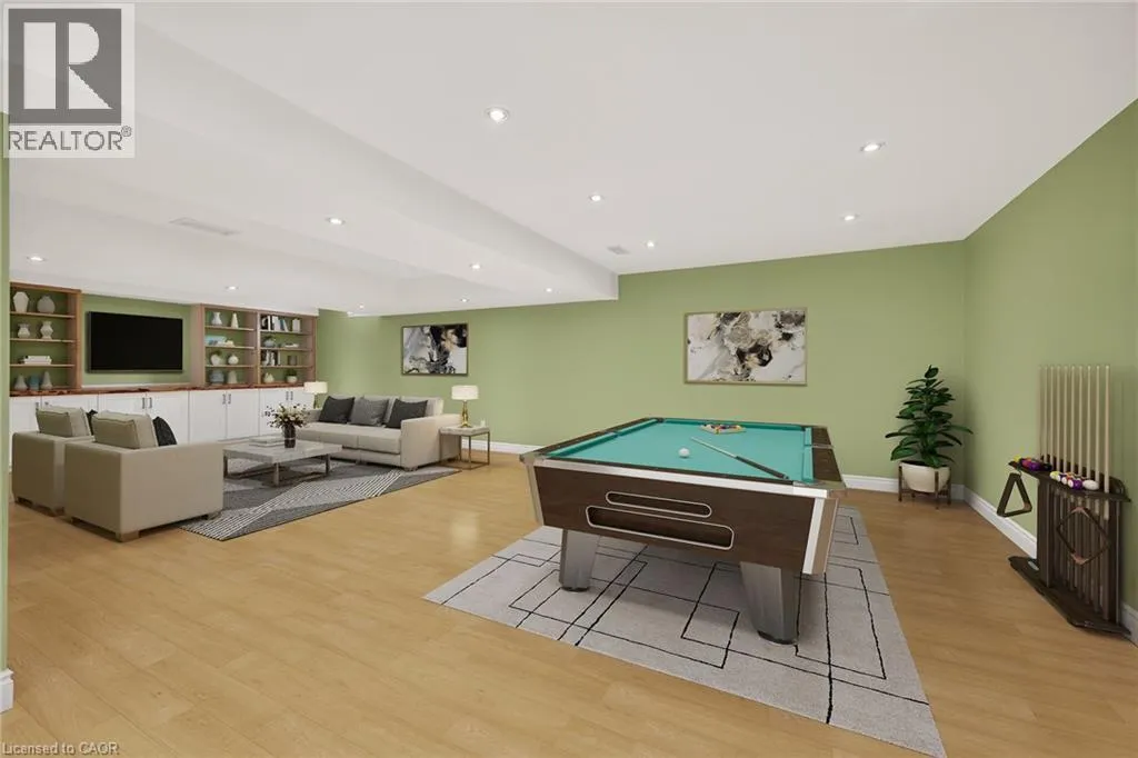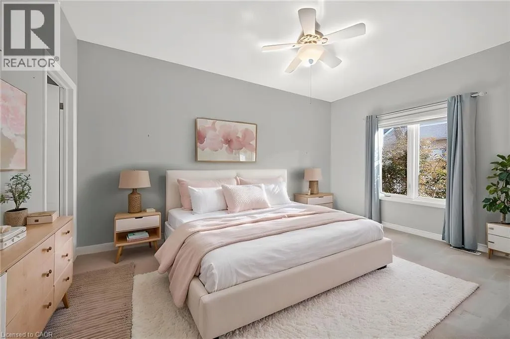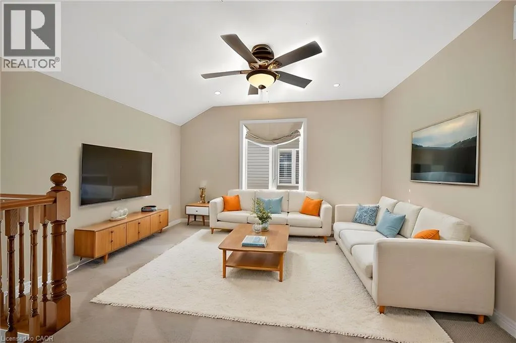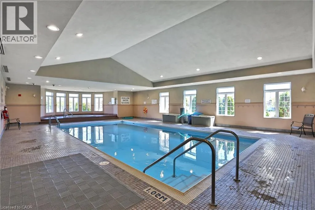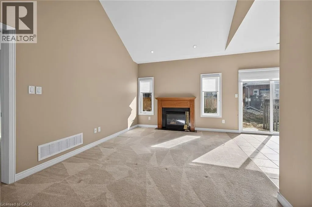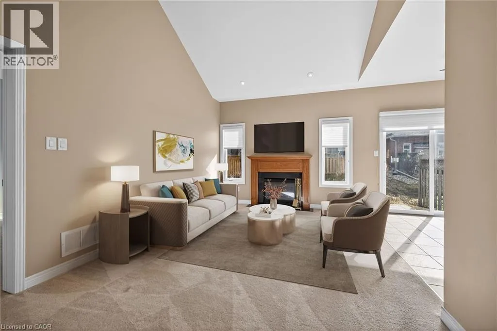 Garth Street, south of Rymal Road, to Abbotsford Trail, in ""Garth Trails The Village"". WELCOME TO GARTH TRAILS...WHERE THE LIVING IS EASY! Enjoy low-maintenance living in this friendly, active, award-winning, adult-lifestyle community. You're just steps to the spectacular residents' clubhouse which offers indoor pool, sauna, whirlpool, gym, library, games and craft rooms, and a grand ballroom, host to many great social activities and dances. There is a tennis/pickleball court, shuffleboard and bocce courts and more! Take a stroll through the lush parkland and enjoy the wildlife around the pond. This clean, move-in ready, end unit bungaloft features double garage, 3 bedrooms (or 2 plus main floor den), 4 bathrooms and a stone patio in the backyard. Add your personal choice flooring on the sub-floor which is already installed, and the basement, not yet lived in, will be fully finished with a huge rec room with many pot lights, built-in shelving/entertainment centre and a kitchenette/bar area. A modern 3 pc bathroom and additional space and storage complete the basement. There is a two storey foyer providing natural light from the window above, and a separate dining room with a window and handy alcove, perfect for your buffet/hutch. Granite countertops, maple cabinets, large wall pantry, pots and pans drawers and stainless steel appliances are featured in the eat-in kitchen, with sliding patio doors to the stone patio in the backyard with natural gas barbeque line. There is inside entry from the double garage into the main floor laundry room with cabinets, and washer and dryer included. The great room has a gas fireplace with oak mantel and ceiling with pot lights, vaulted to the loft above. Here, you'll find a lovely get-away for your guests, with another bedroom, and a large 3 pc bathroom. If you're looking for a turn-key, vibrant community, check out Garth Trails! An address you'll be proud to call home! *Some photos are virtually staged. (id:27476)