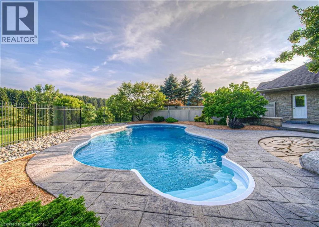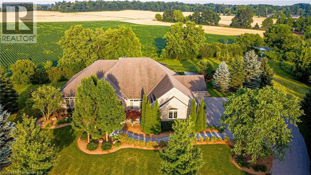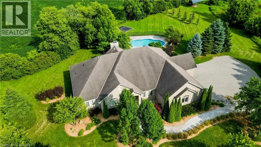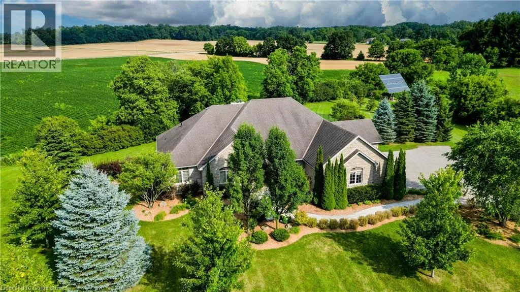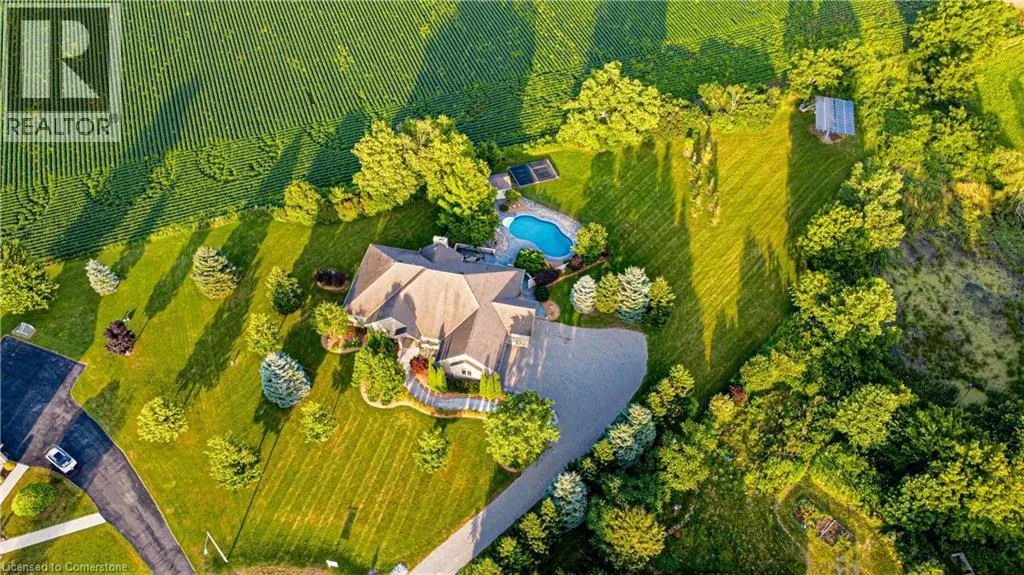EAST RIVER ROAD GLEN MORRIS GEM: SPRAWLING ESTATE WITH POOL, TRIPLE GARAGE & MORE. Tucked away on a quiet court in the heart of Glen Morris, this stunning custom bungalow offers a rare blend of privacy, comfort, and income-generating opportunityâall wrapped in an idyllic country setting. Set on nearly 1.48 acres of meticulously landscaped land, this 3-bedroom + main floor office, 2.5-bathroom home spans over 3,467 square feet of beautifully finished living space. From the moment you arrive, the sweeping driveway, manicured trees, and oversized triple-car garage set the tone for whatâs to come. Step inside and discover soaring ceilings, rich hardwood floors, and an open, airy layout thatâs perfect for family living or entertaining guests. The spacious kitchen, complete with custom cabinetry and granite counters, opens to the great room where large windows and a cozy fireplace create a warm and welcoming ambiance. Downstairs, the finished lower level with a separate entrance and rough-in for a bathroom offers endless possibilitiesâwhether you're envisioning a guest suite, in-law setup, or income apartment. The backyard is truly the showstopper: enjoy summer days lounging by the in-ground pool, surrounded by stamped concrete and lush greenery. The propane pool heater is disconnected, but the included solar blanket offers an eco-friendly alternative. And speaking of solarâthe fully owned solar panel system at the rear of the property generates significant monthly income. (Full income details available upon request.) It's a unique feature that adds both value and long-term savings to this already incredible property. Additional highlights include a new pool liner, pump, and filters 2024, pot lights throughout, central vac, r/o system, and uv filters, 200 amp panel, mature landscaping throughout, and a peaceful, family-friendly setting just minutes from the Grand River and nearby trails. Enjoy country living with every imaginable amenity just minutes from Paris, Brantford, and Cambridge. (id:27476)