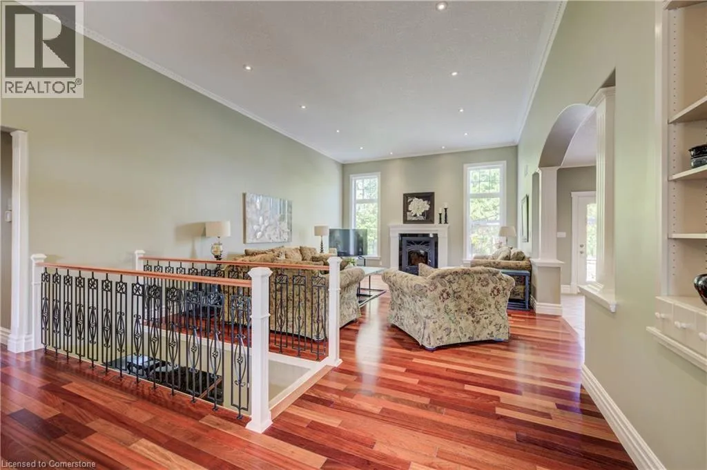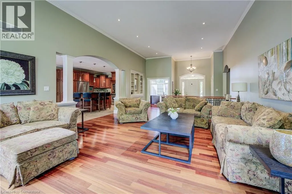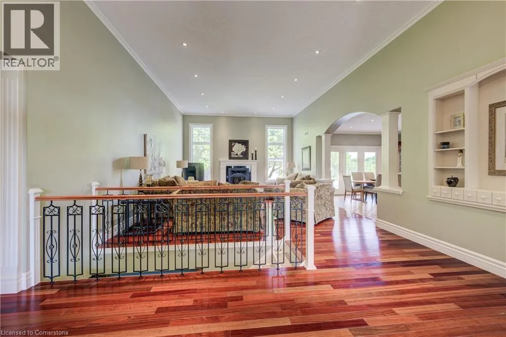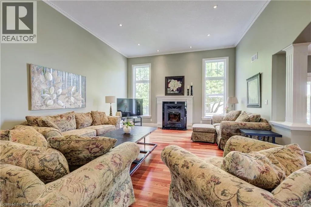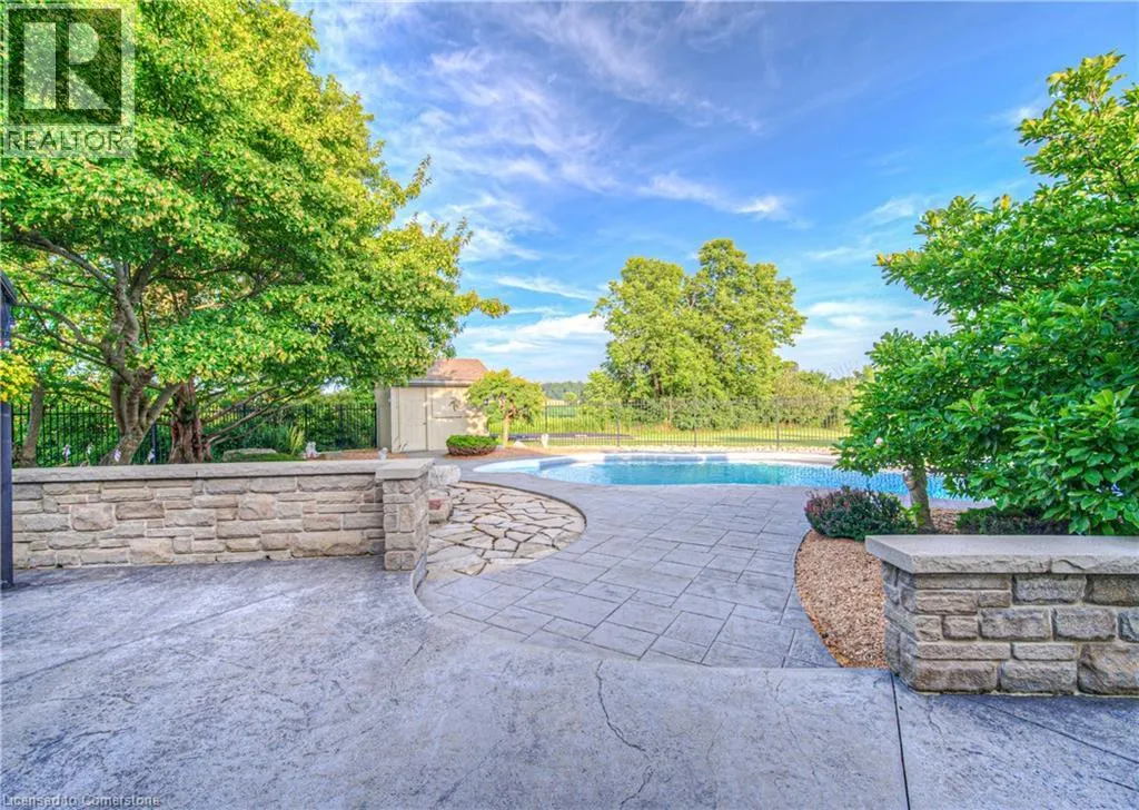 EAST RIVER ROAD GLEN MORRIS GEM: SPRAWLING ESTATE WITH POOL, TRIPLE GARAGE & MORE. Tucked away on a quiet court in the heart of Glen Morris, this stunning custom bungalow offers a rare blend of privacy, comfort, and income-generating opportunityâall wrapped in an idyllic country setting. Set on nearly 1.48 acres of meticulously landscaped land, this 3-bedroom + main floor office, 2.5-bathroom home spans over 3,467 square feet of beautifully finished living space. From the moment you arrive, the sweeping driveway, manicured trees, and oversized triple-car garage set the tone for whatâs to come. Step inside and discover soaring ceilings, rich hardwood floors, and an open, airy layout thatâs perfect for family living or entertaining guests. The spacious kitchen, complete with custom cabinetry and granite counters, opens to the great room where large windows and a cozy fireplace create a warm and welcoming ambiance. Downstairs, the finished lower level with a separate entrance and rough-in for a bathroom offers endless possibilitiesâwhether you're envisioning a guest suite, in-law setup, or income apartment. The backyard is truly the showstopper: enjoy summer days lounging by the in-ground pool, surrounded by stamped concrete and lush greenery. The propane pool heater is disconnected, but the included solar blanket offers an eco-friendly alternative. And speaking of solarâthe fully owned solar panel system at the rear of the property generates significant monthly income. (Full income details available upon request.) It's a unique feature that adds both value and long-term savings to this already incredible property. Additional highlights include a new pool liner, pump, and filters 2024, pot lights throughout, central vac, r/o system, and uv filters, 200 amp panel, mature landscaping throughout, and a peaceful, family-friendly setting just minutes from the Grand River and nearby trails. Enjoy country living with every imaginable amenity just minutes from Paris, Brantford, and Cambridge. (id:27476)