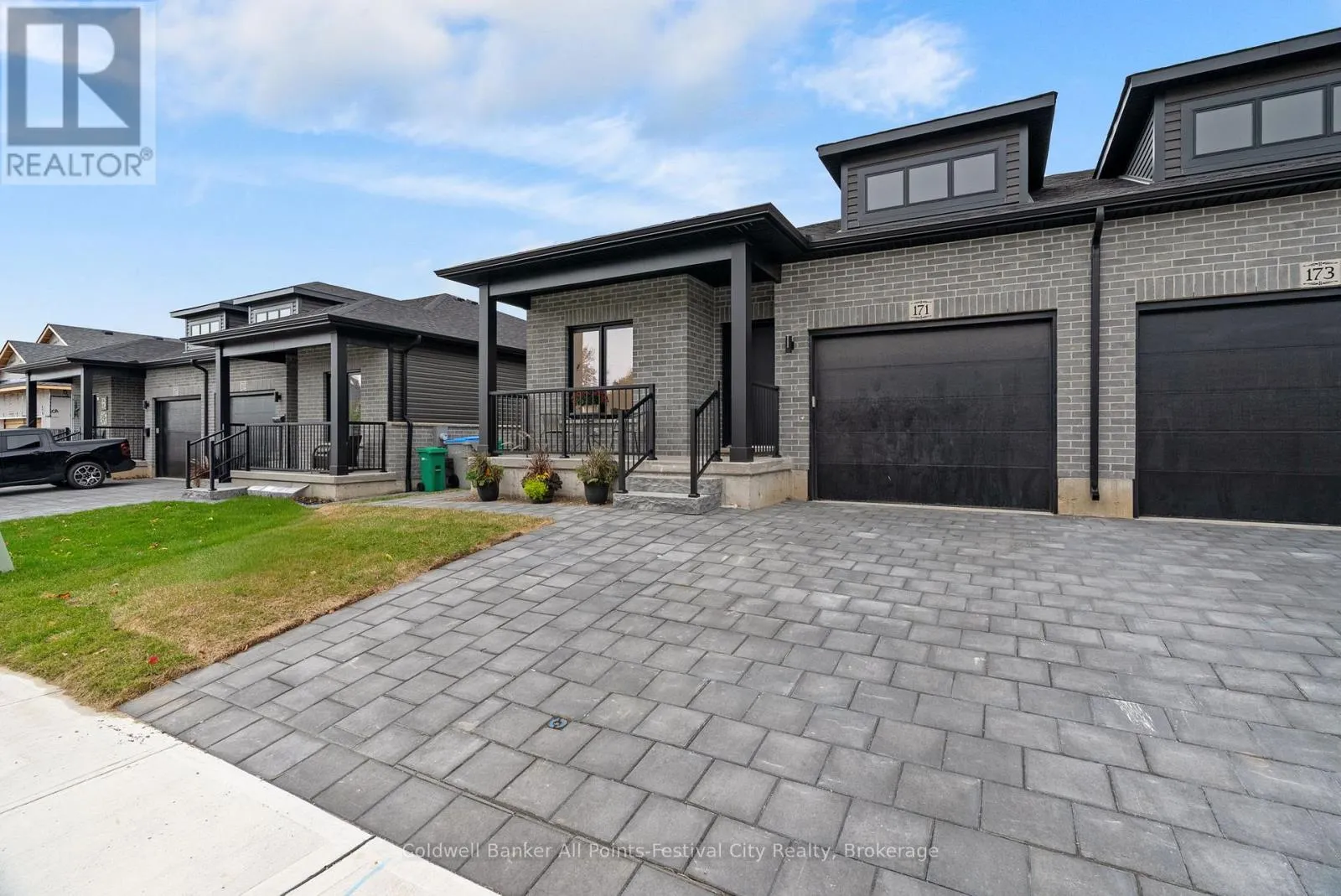 Cross Streets: Cambria Rd. ** Directions: From Hwy 8, take Cambria Rd, then east on Park Street, property is on the right. Stunning Brand-New Bungalow in Goderich! Beautifully designed 4-bedroom, 3-bathroom semi-detached bungalow offering over 1,700 sq. ft. of modern living space in a quiet Goderich location. The exterior features elegant brickwork, covered porch, attached garage, double driveway, and private rear patio. Inside, enjoy an open-concept layout with quartz countertops, porcelain tile, and premium finishes throughout. The main level includes a luxurious primary suite with glass shower ensuite, second bedroom, large laundry room, and direct garage access. The fully finished lower level adds exceptional space with a second kitchen, two bedrooms, full bath, and bright living area-ideal for family or guests. Separate entrances offer income potential! Choose your own colours, flooring, and cabinets to make it truly your own! (id:27476)