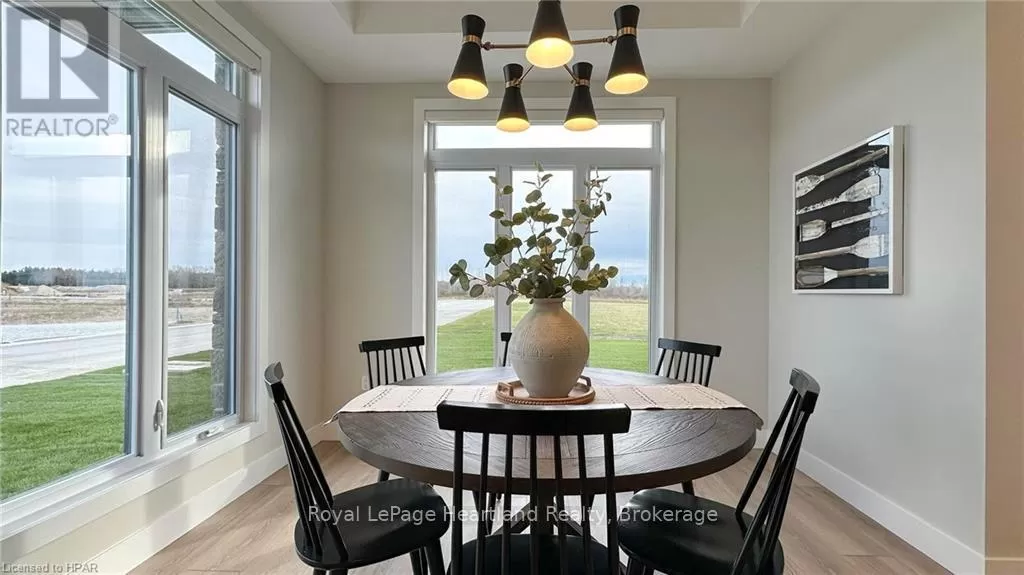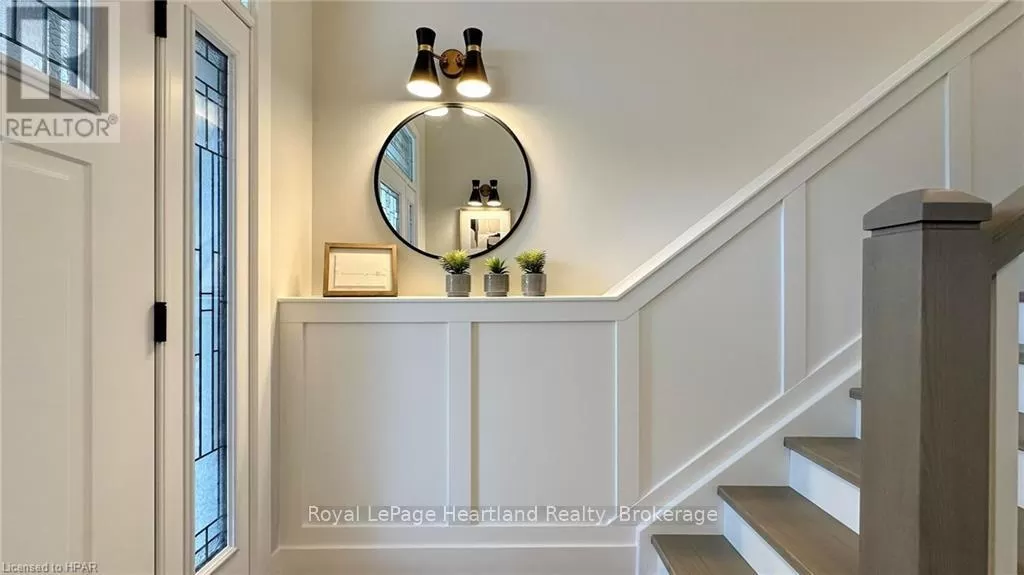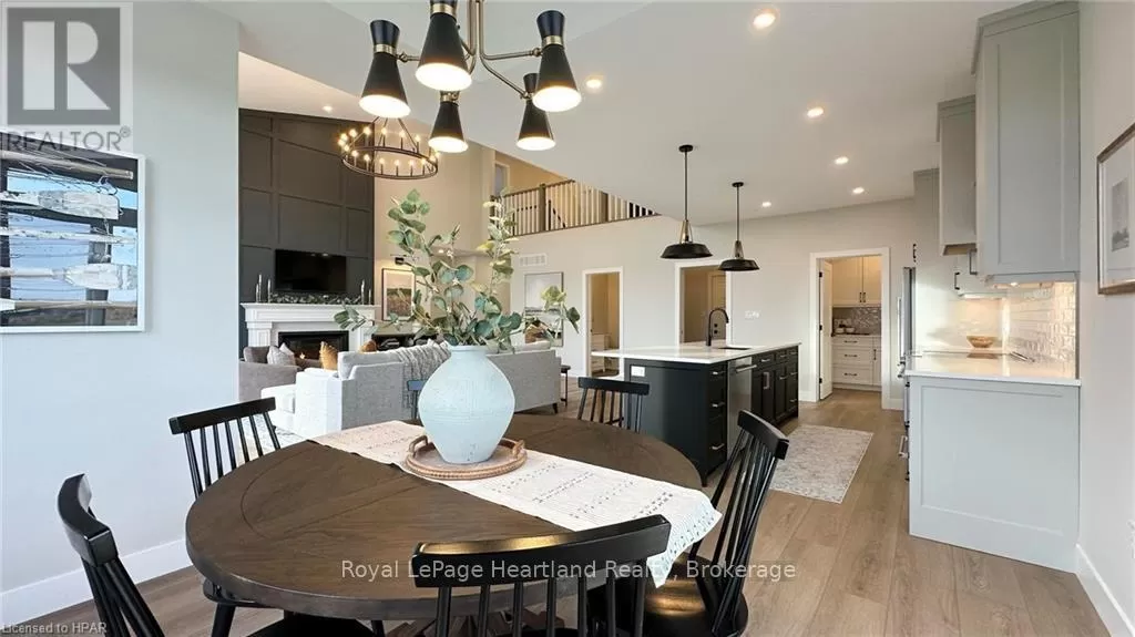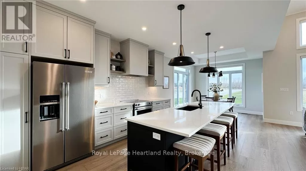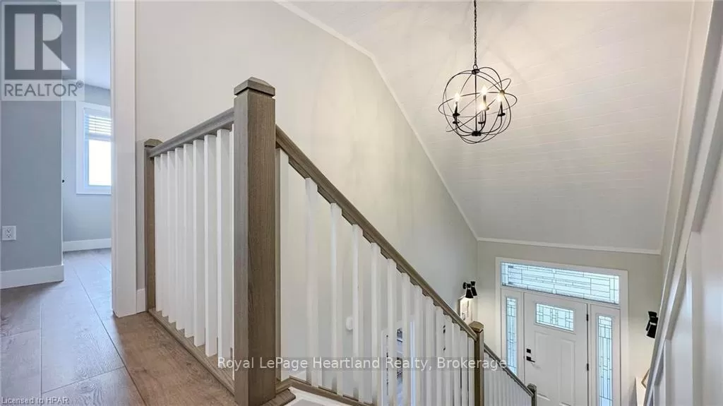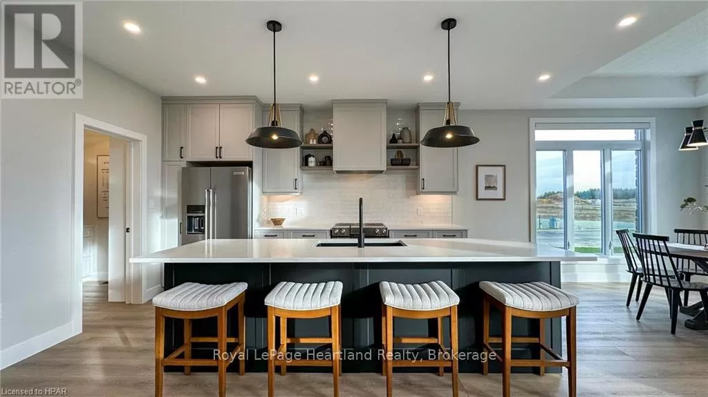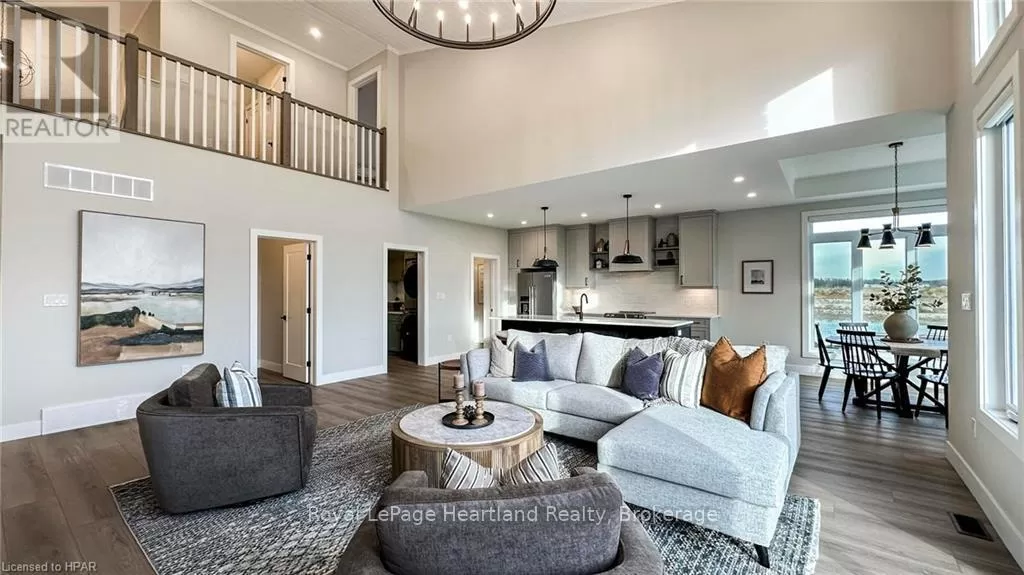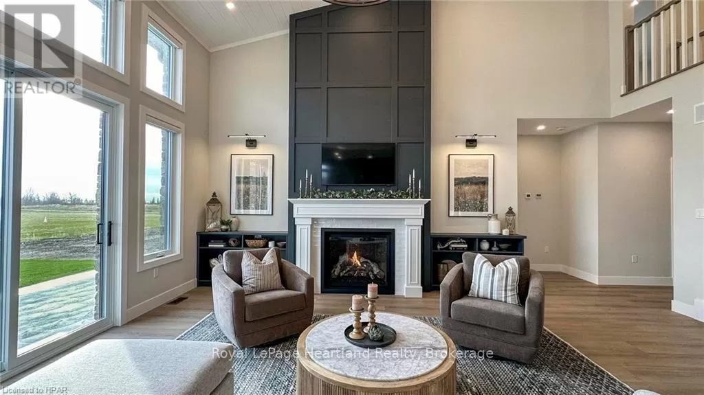 Cross Streets: Kingfisher. ** Directions: From Hwy 8 or 21, take Suncoast Dr West. Turn Left at Eldon St,first Right on Brimicombe. Follow to the T at Bethune & turn Right. First left on Warren St, Follow Warren street, left on Kingfisher, property is on the corner of Kingfisher & Woodridge. Welcome to this exquisite residence where sophistication meets functionality. This Coastal Breeze property comes already customized and showcases the luxury of space with a seamless transition from the double garage to the open concept living room, kitchen, and dining area. An inviting area for relaxation, entertainment, and culinary adventures. Stepping into the living room, you will immediately notice two things: the grandeur of the striking cathedral ceiling and the large luxurious fireplace. A thoughtfully designed south wall boasts glass terrace doors and plenty of windows letting in an abundance of light. From here you can see the property backs onto luscious parkland with a stunning view of the lake. Located off the kitchen is both a beautifully designed pantry and a separate laundry room. With four generously sized bedrooms, the secondary suites on the lower and upper-level floors are perfectly adaptable to your lifestyle needs. Whether it's a cozy TV room for family movie nights or a serene study for productive work sessions, you can be sure of versatility. Throughout the property, you will notice high-quality finishes from floors to ceiling with numerous upgrades and customized design options on display. Don't miss the opportunity to make this one-of-a kind home your own, where every detail is crafted with comfort and enjoyment in mind. (id:27476)