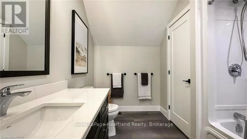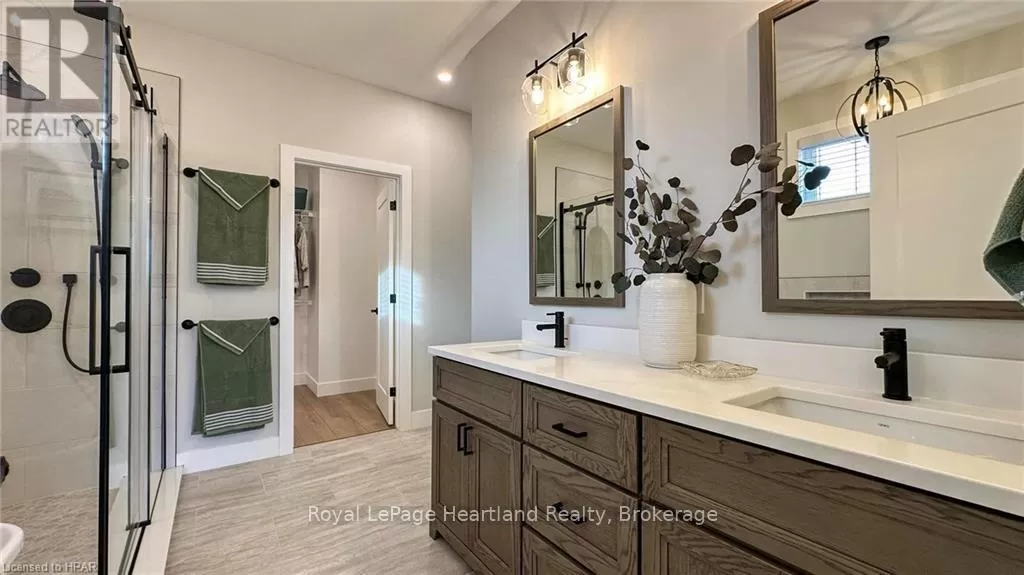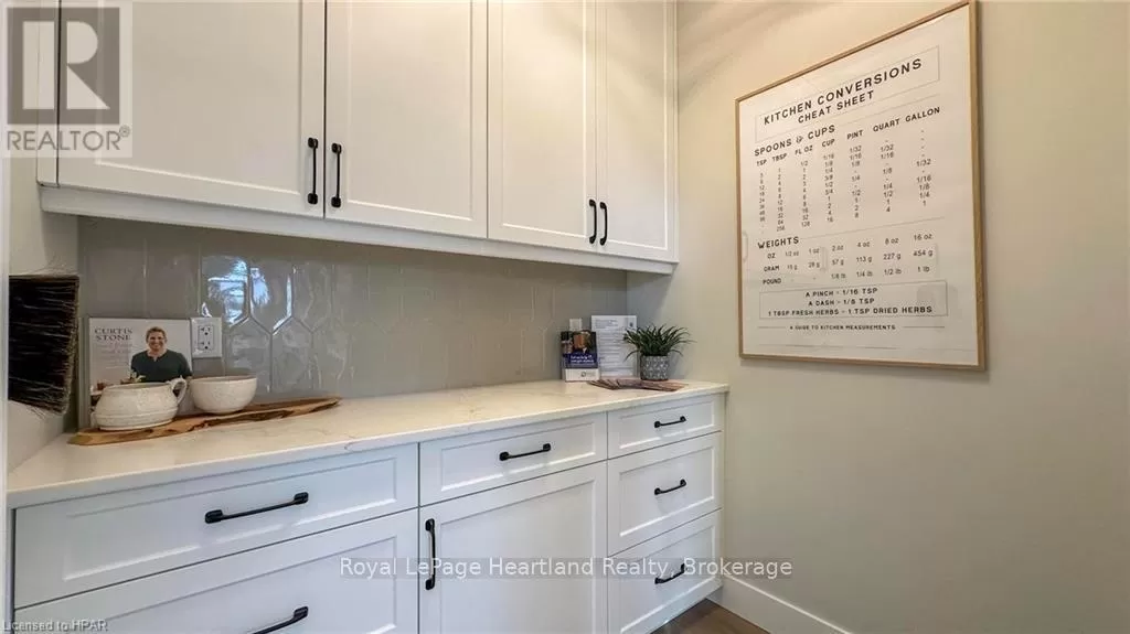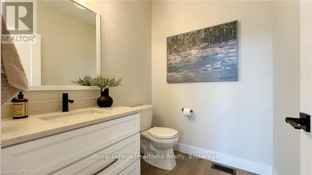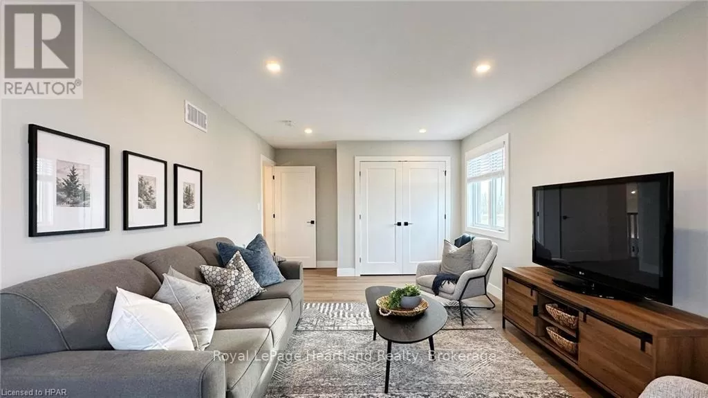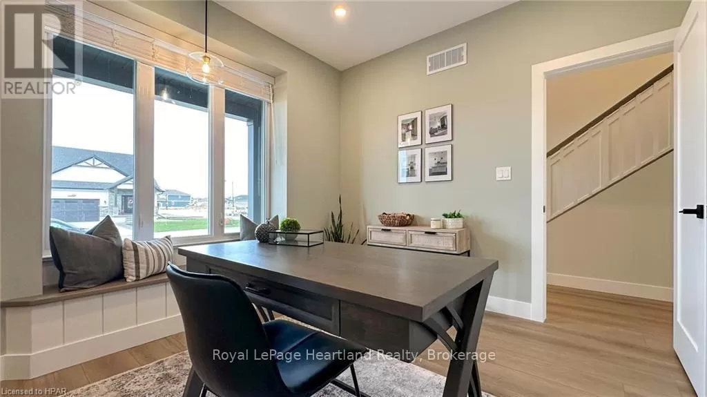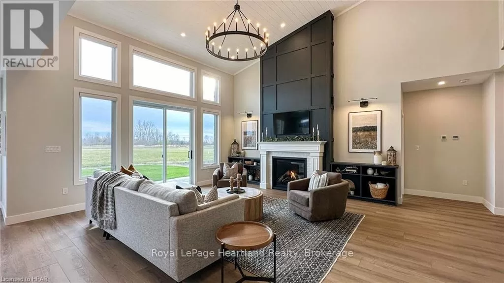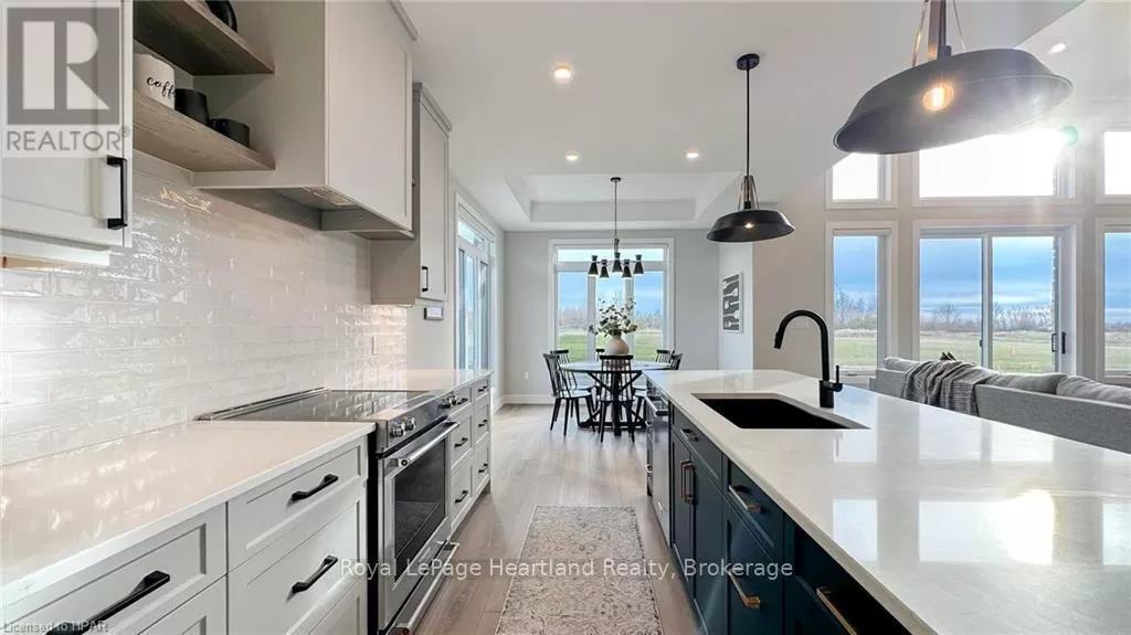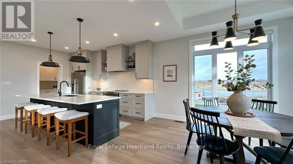 Cross Streets: Kingfisher. ** Directions: From Hwy 8 or 21, take Suncoast Dr West. Turn Left at Eldon St,first Right on Brimicombe. Follow to the T at Bethune & turn Right. First left on Warren St, Follow Warren street, left on Kingfisher, property is on the corner of Kingfisher & Woodridge. Welcome to this exquisite residence where sophistication meets functionality. This Coastal Breeze property comes already customized and showcases the luxury of space with a seamless transition from the double garage to the open concept living room, kitchen, and dining area. An inviting area for relaxation, entertainment, and culinary adventures. Stepping into the living room, you will immediately notice two things: the grandeur of the striking cathedral ceiling and the large luxurious fireplace. A thoughtfully designed south wall boasts glass terrace doors and plenty of windows letting in an abundance of light. From here you can see the property backs onto luscious parkland with a stunning view of the lake. Located off the kitchen is both a beautifully designed pantry and a separate laundry room. With four generously sized bedrooms, the secondary suites on the lower and upper-level floors are perfectly adaptable to your lifestyle needs. Whether it's a cozy TV room for family movie nights or a serene study for productive work sessions, you can be sure of versatility. Throughout the property, you will notice high-quality finishes from floors to ceiling with numerous upgrades and customized design options on display. Don't miss the opportunity to make this one-of-a kind home your own, where every detail is crafted with comfort and enjoyment in mind. (id:27476)