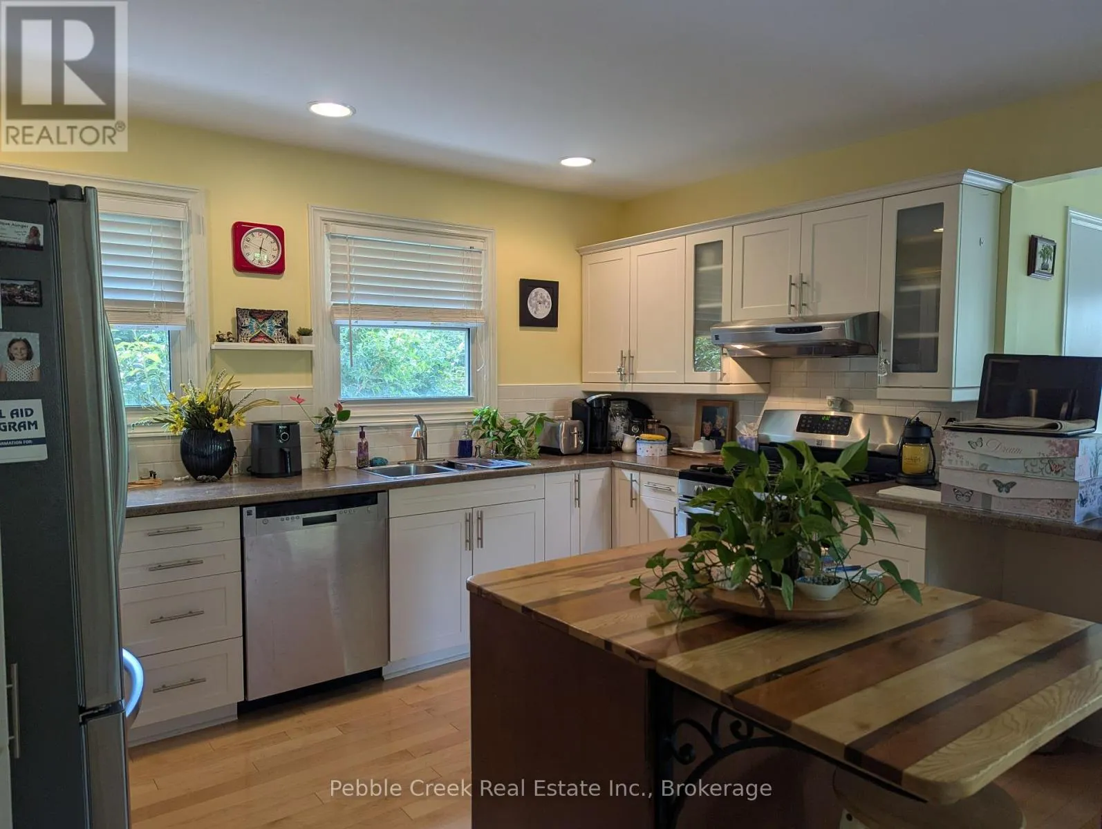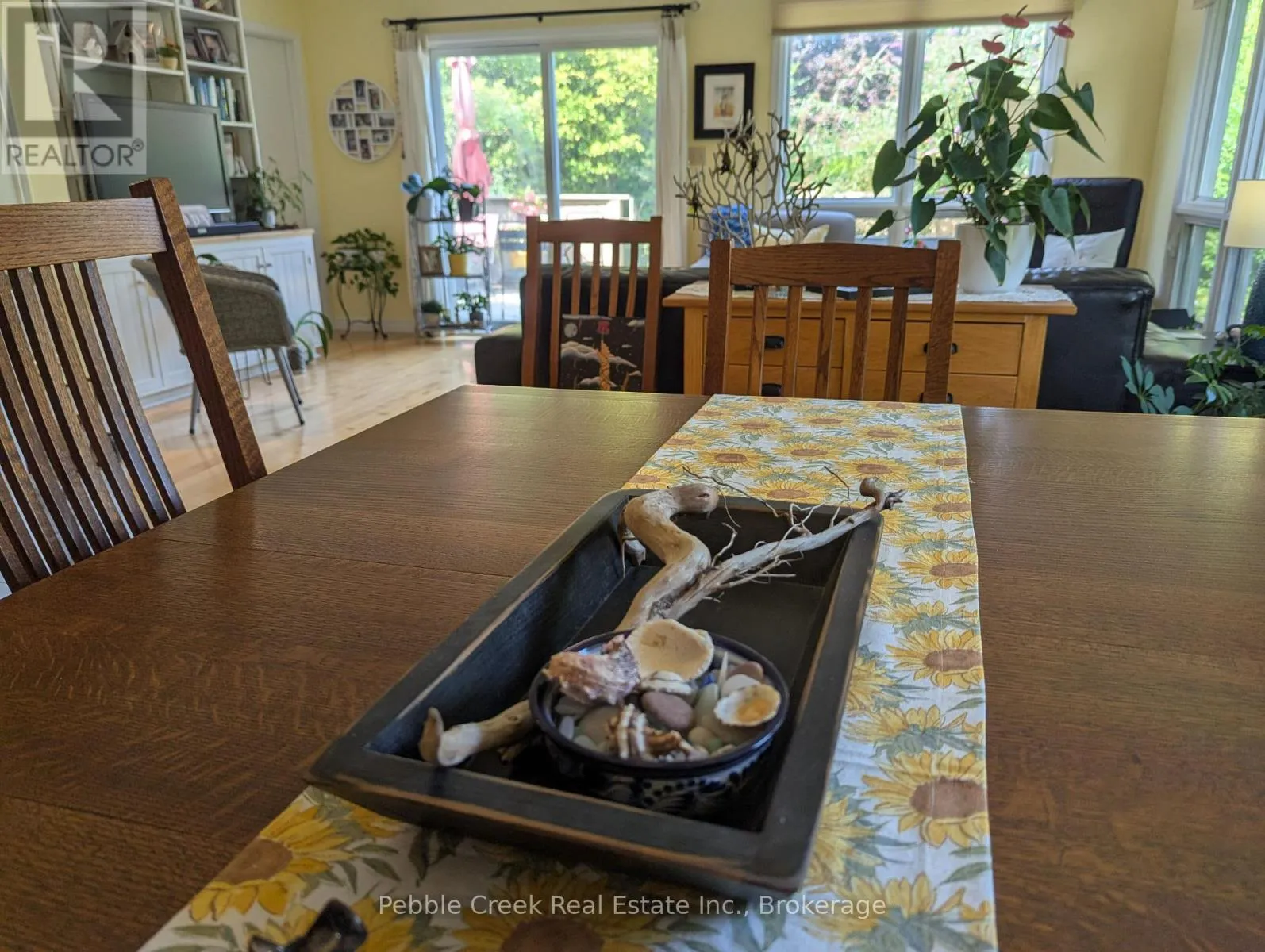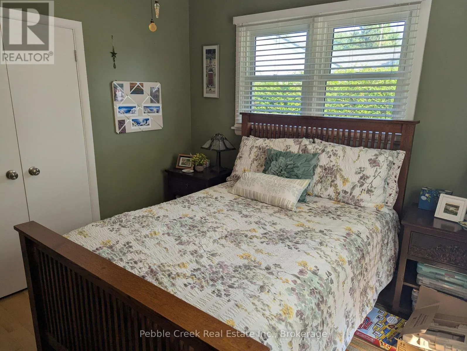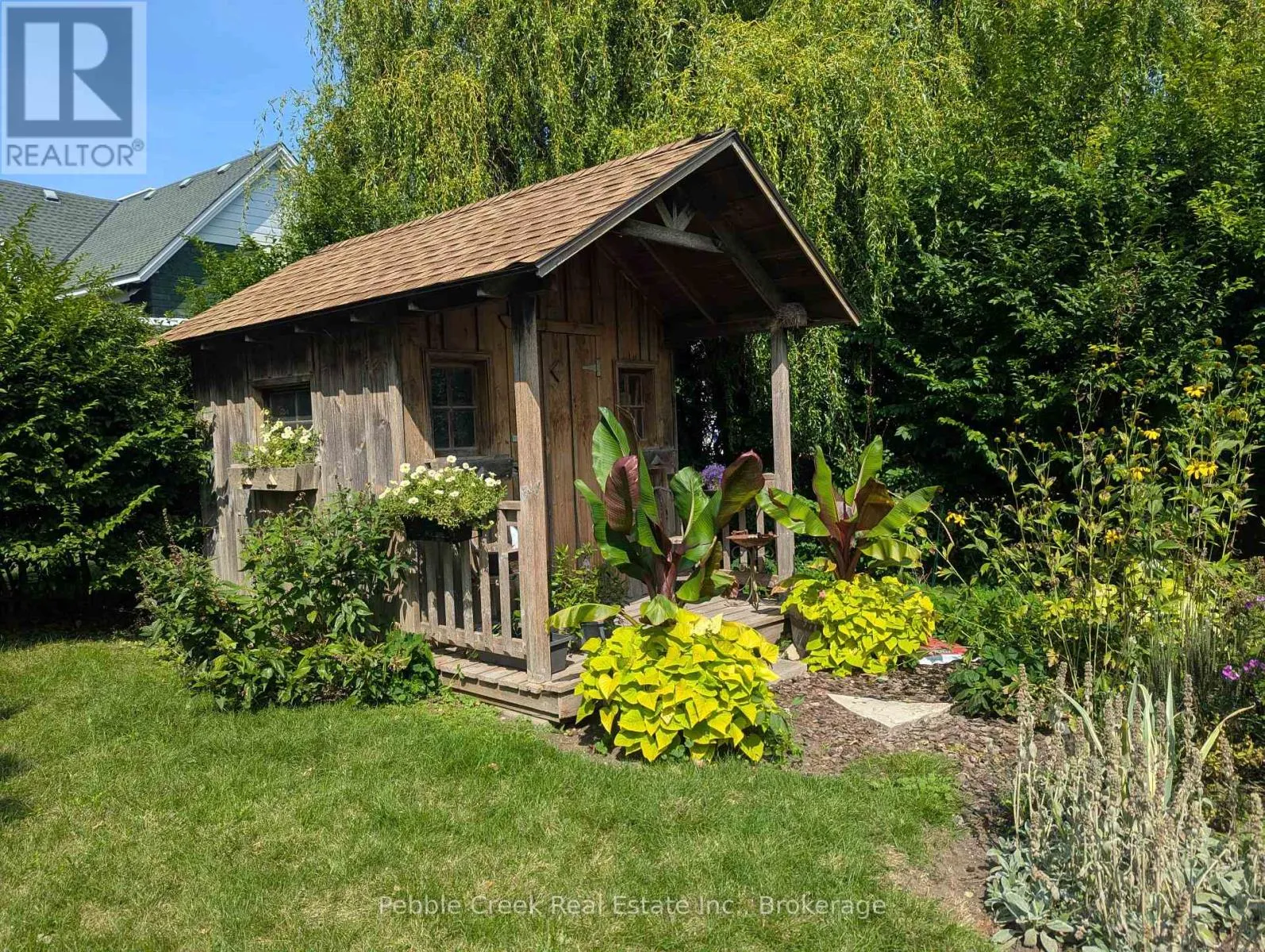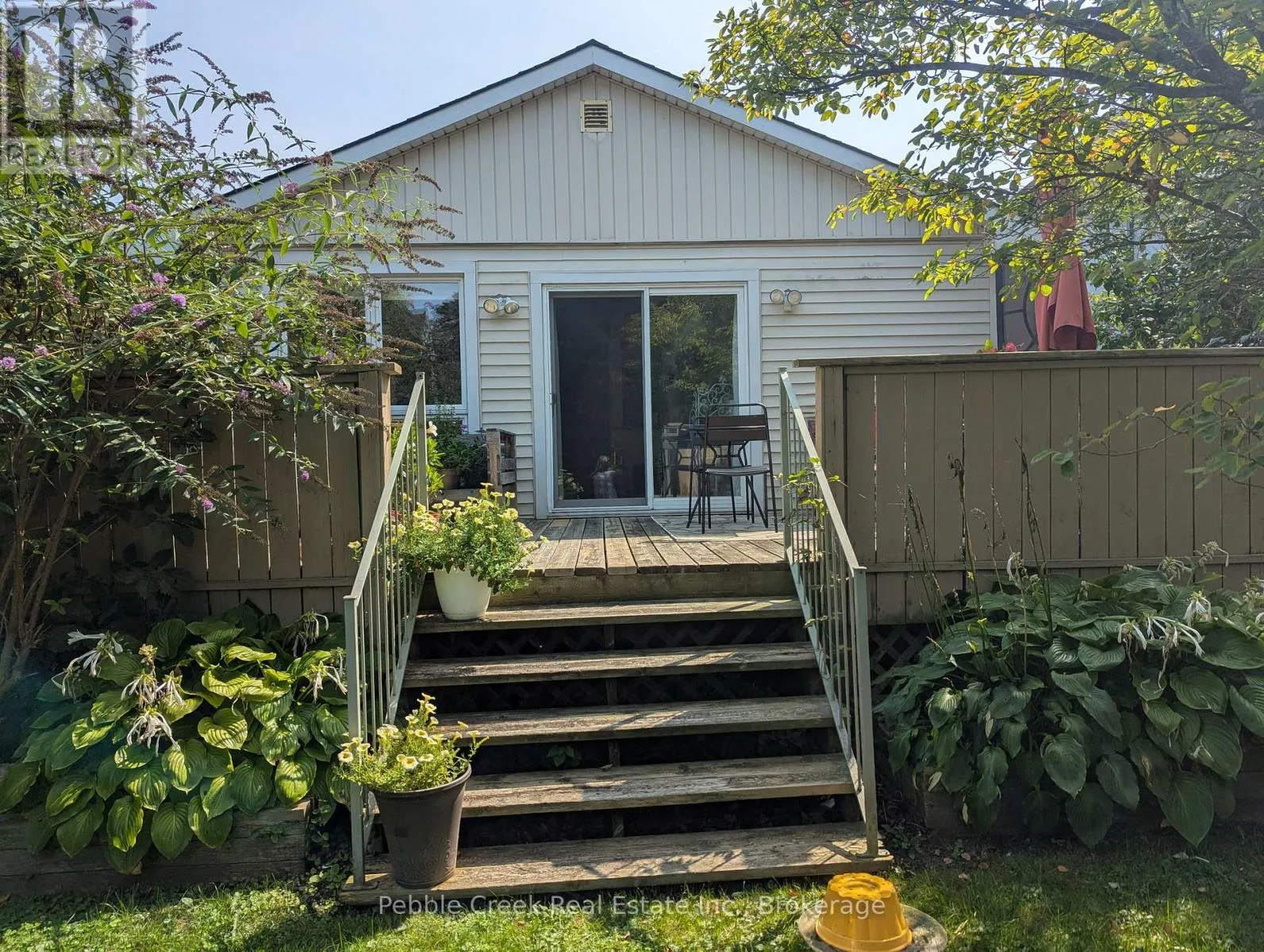 Cross Streets: Arthur & Waterloo. ** Directions: From Highway 21, turn west on Nelson St. At the five points, go leftish, and then to Arthur Street. Look for sign. This charming 2-bedroom home combines warmth, comfort, and location just a short walk from Goderich's historic Courthouse Square. Inside, the home is filled with natural light from large windows overlooking lush gardens. The open-concept living and dining area offers a welcoming flow, highlighted by hardwood floors, a cozy atmosphere, and easy access to the backyard through sliding glass doors. The kitchen connects seamlessly to the main space, making entertaining and everyday living effortless. Both bedrooms are comfortable and inviting, with garden views that enhance the peaceful, retreat-like feel of the home. Outdoors, enjoy a private backyard sanctuary framed by mature trees and greenery perfect for relaxing, gardening, or hosting summer get-togethers. With its prime walkable location, beautiful gardens, and bright, functional interior, this home is a rare opportunity in the heart of Canada's Prettiest Town. (id:27476)