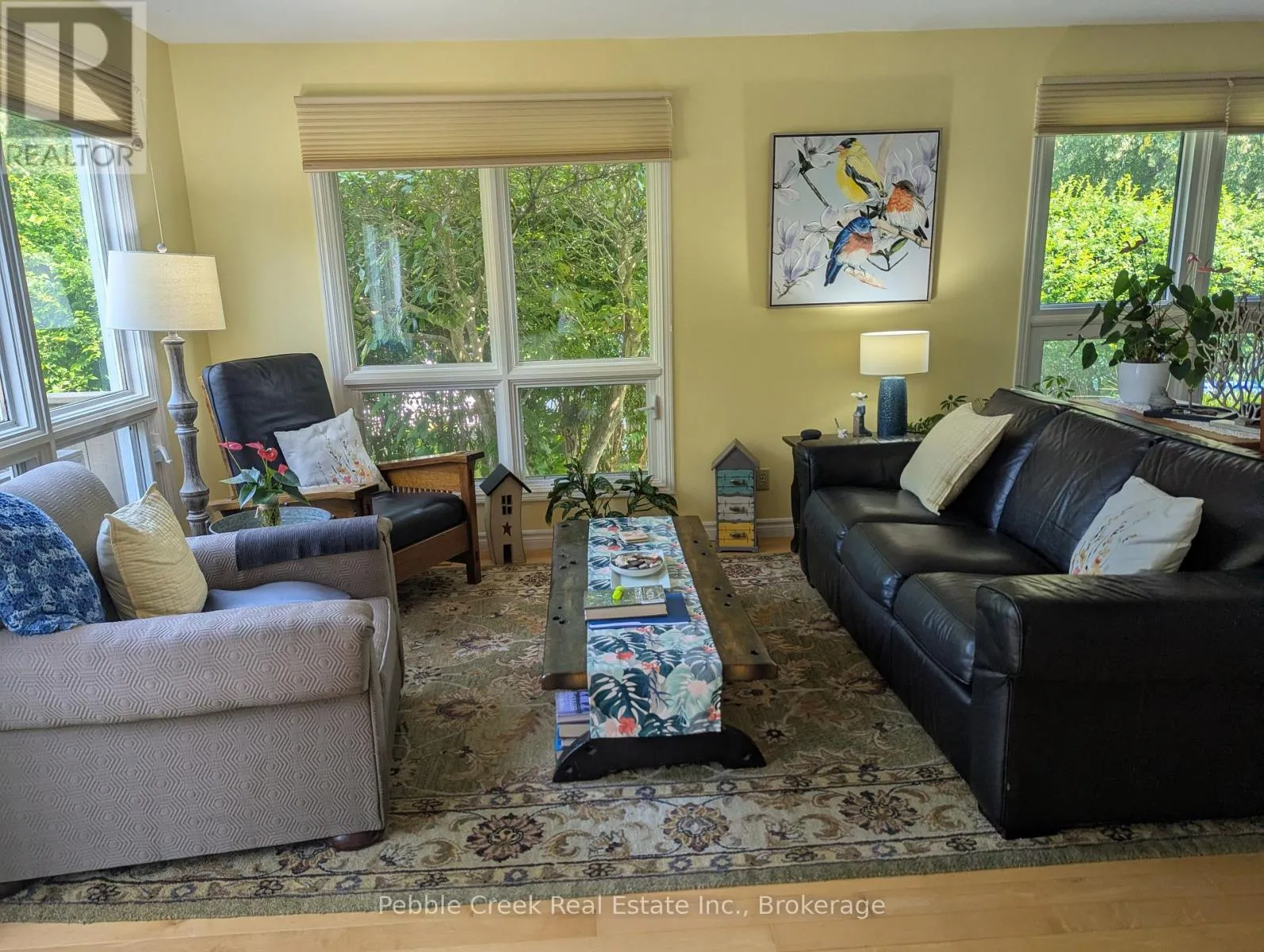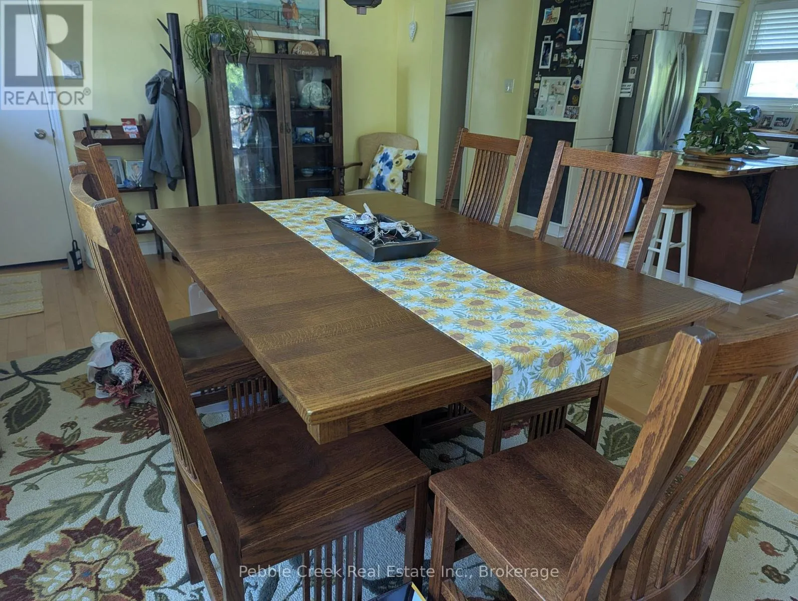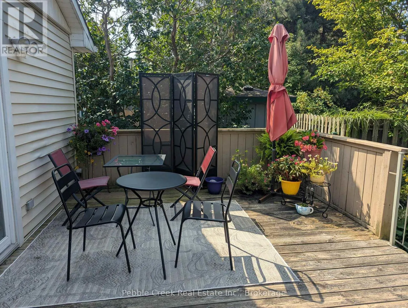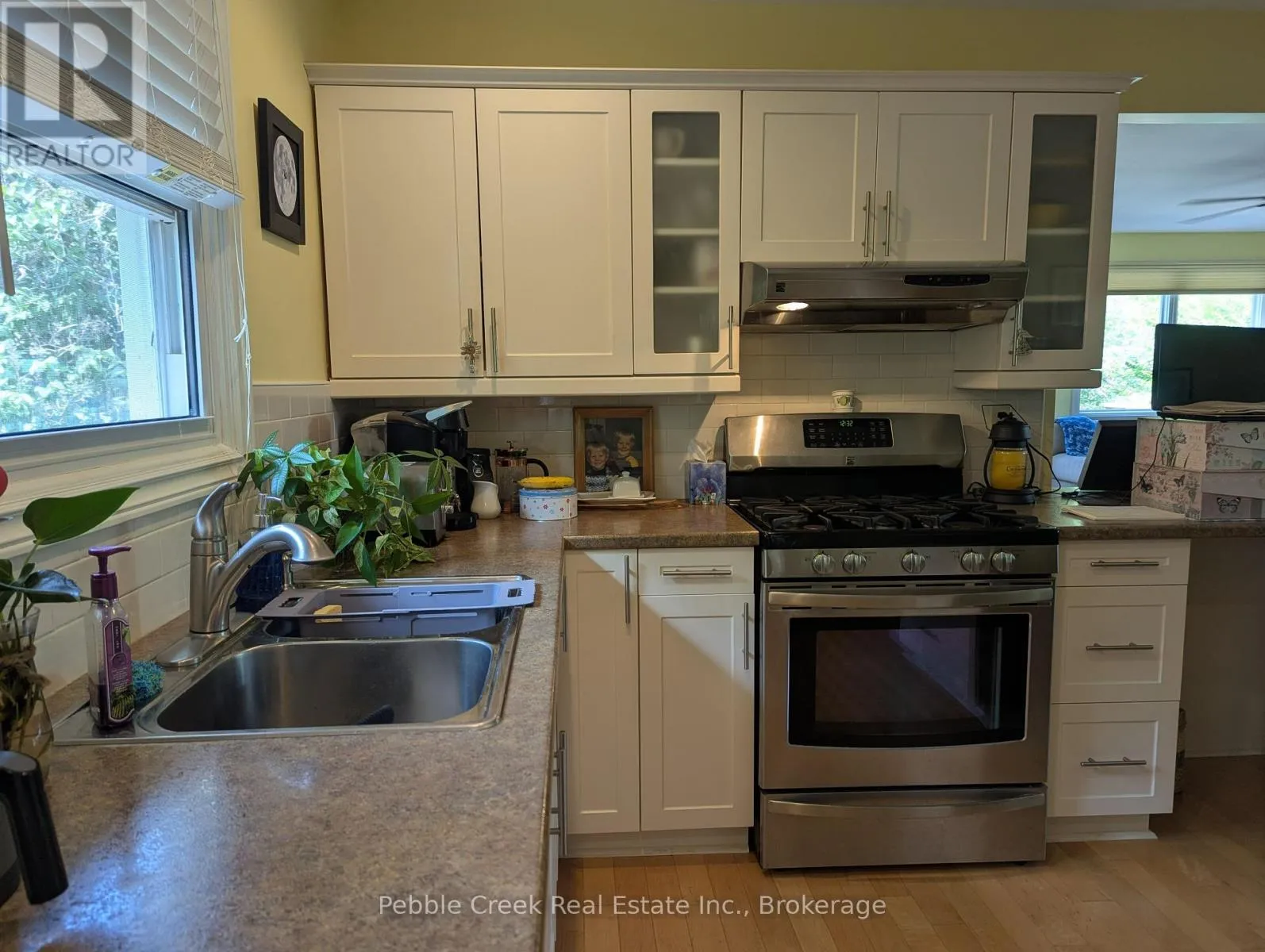 Cross Streets: Arthur & Waterloo. ** Directions: From Highway 21, turn west on Nelson St. At the five points, go leftish, and then to Arthur Street. Look for sign. This charming 2-bedroom home combines warmth, comfort, and location just a short walk from Goderich's historic Courthouse Square. Inside, the home is filled with natural light from large windows overlooking lush gardens. The open-concept living and dining area offers a welcoming flow, highlighted by hardwood floors, a cozy atmosphere, and easy access to the backyard through sliding glass doors. The kitchen connects seamlessly to the main space, making entertaining and everyday living effortless. Both bedrooms are comfortable and inviting, with garden views that enhance the peaceful, retreat-like feel of the home. Outdoors, enjoy a private backyard sanctuary framed by mature trees and greenery perfect for relaxing, gardening, or hosting summer get-togethers. With its prime walkable location, beautiful gardens, and bright, functional interior, this home is a rare opportunity in the heart of Canada's Prettiest Town. (id:27476)
