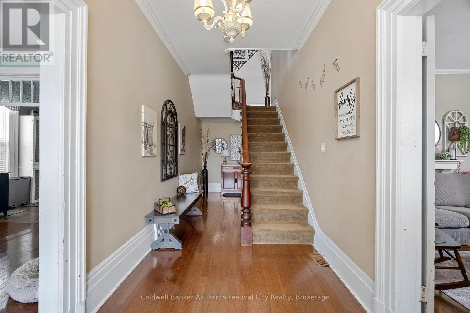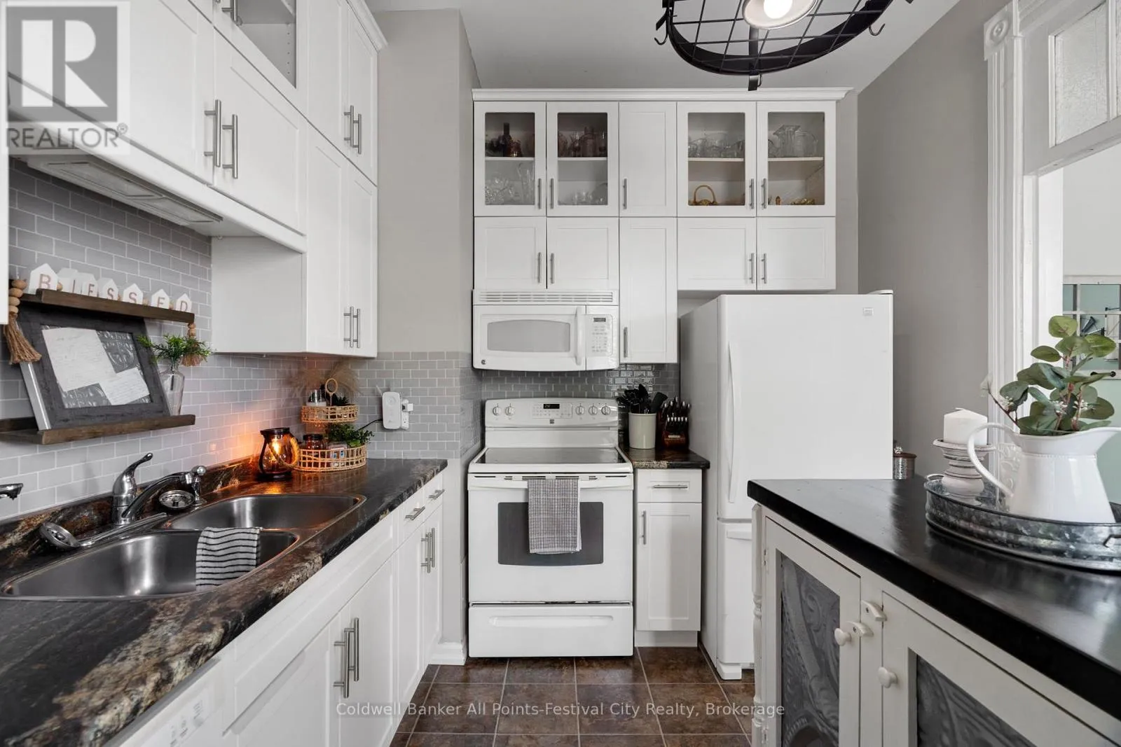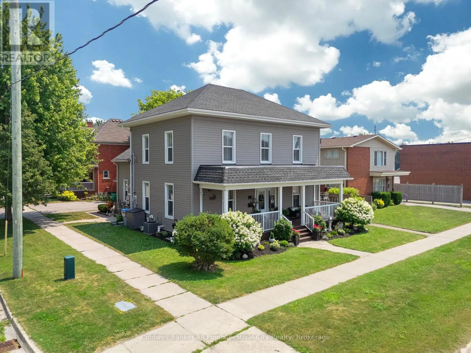 Cross Streets: St David St. ** Directions: Corner of Victoria St S and St David St. Charming Victorian Duplex with Income Potential Just Steps from Downtown! This beautifully updated Victorian home blends timeless character with modern upgrades, offering exceptional versatility and investment potential. Ideally situated on a desirable corner lot just one block from downtown, this legal duplex features a welcoming front verandah, a 1.5 car detached garage, and a layout perfectly suited for multi-generational living, rental income or portfolio expansion. Each unit has its own private entrance, separate hydro and gas meters, individual furnaces, central air, water heaters, laundry and even separate basements - making for truly independent living spaces. The spacious front unit retains its historic charm with original woodwork and hardwood flooring, complemented by an impressive large front porch. The layout includes a large living room, formal dining room, and vintage-style kitchen with island and pantry and 2 piece bathroom. Upstairs, you'll find three bedrooms, a 4 piece bathroom, and access to a private deck and yard. The bright rear unit (84 St. David St.) features two upper bedrooms, an updated eat-in kitchen, and a sunken living room with a walkout to a private deck. In-suite laundry and a full basement complete this self-contained space. With so many thoughtful updates already done, including replacement windows, this move-in ready property offers peace of mind and incredible value. Whether you're a homeowner looking to offset your mortgage or an investor searching for a turn-key rental in a prime location, this property checks all the boxes. (id:27476)