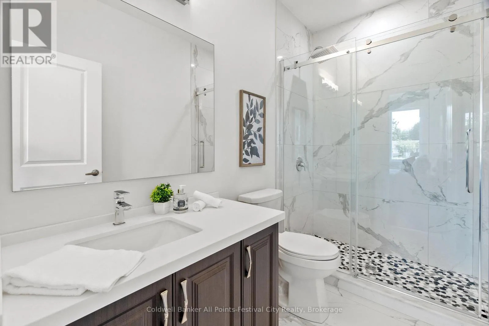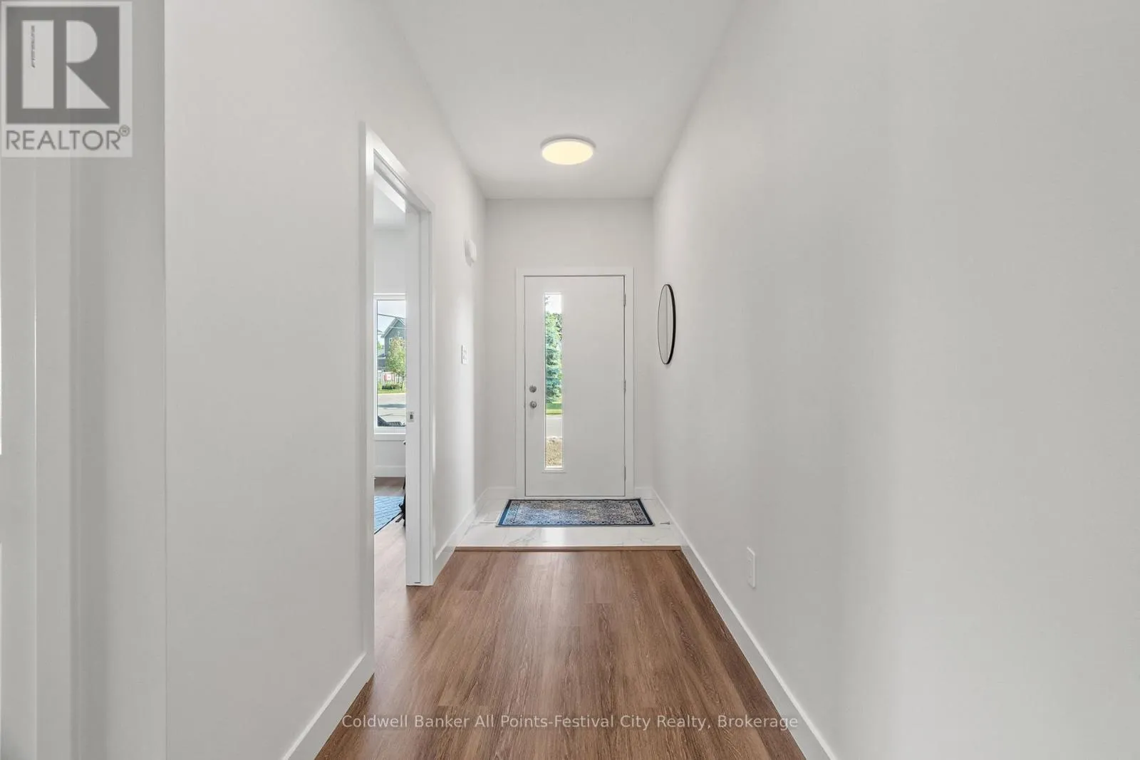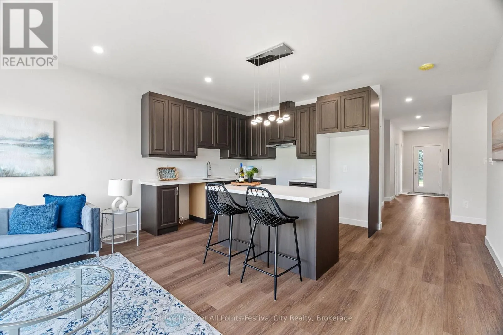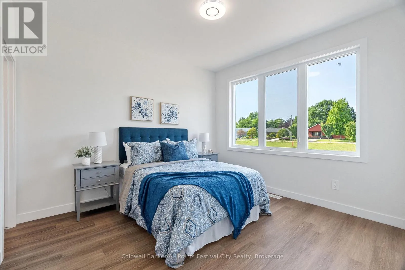 Cross Streets: Elgin Ave E and Cambria Rd. ** Directions: From Hwy 8, take Huron Rd to Cambria, then east on Elgin, home is on the left. MODEL HOME. Stunning, Brand New Bungalow in Goderich! Beautifully designed 4 bedroom, semi-detached bungalow offering over 1,700 sq.ft. of modern living space in a quiet Goderich location. The exterior features elegant brickwork, covered porch, attached garage, double driveway, and private rear patio. Inside, enjoy an open-concept layout with quartz countertops, porcelain tile, and premium finishes throughout. The main level includes a luxurious primary suite with glass shower ensuite, second bedroom, large laundry room, and direct garage access. The fully finished lower level adds exceptional space with a second kitchen, two bedrooms, full bath and bright living area - ideal for family or guests. Separate entrances offer income potential! Choose your own colours, flooring, and cabinets to make it truly your own. (id:27476)