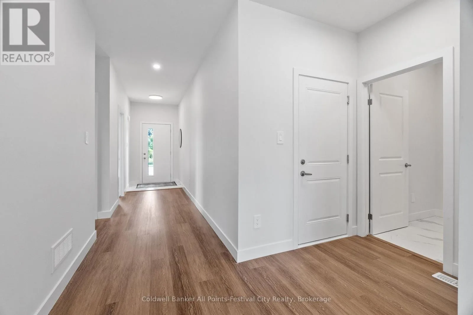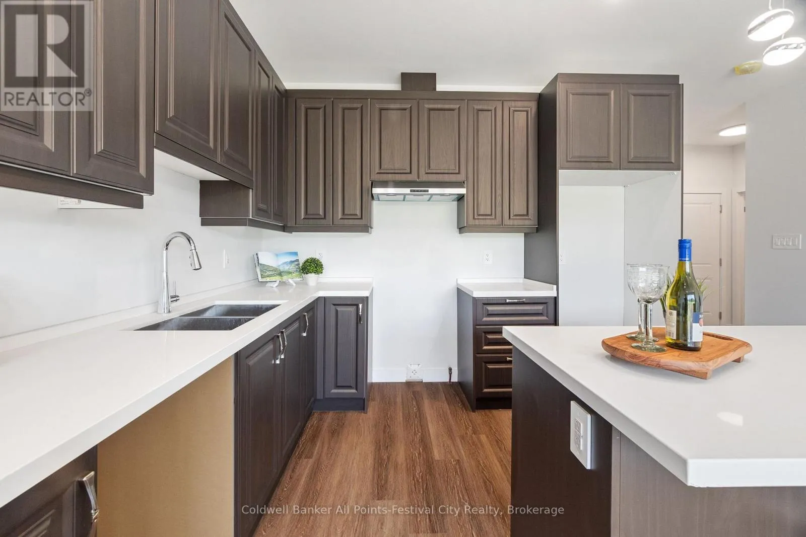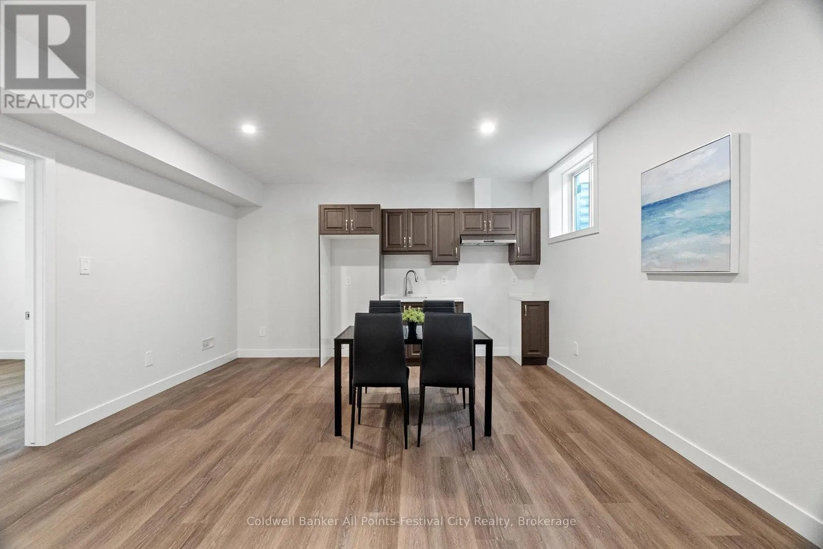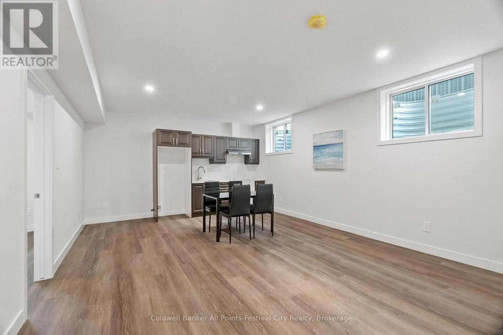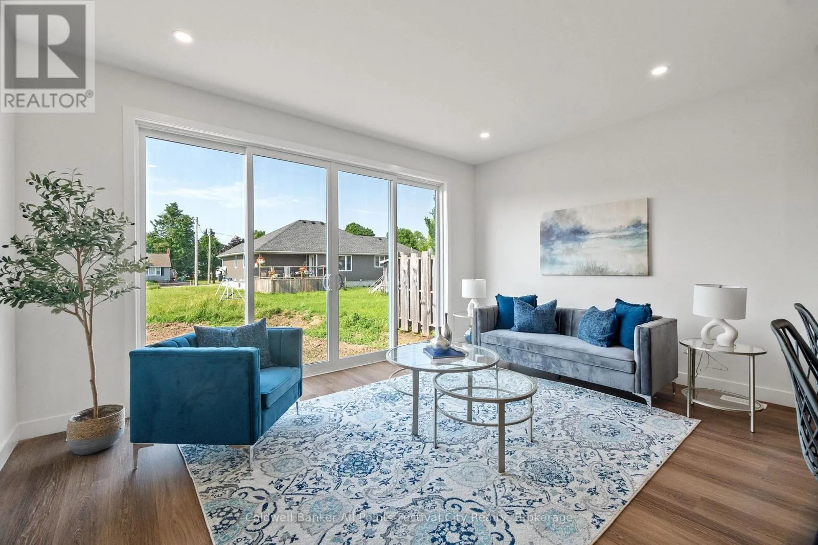Cross Streets: Elgin Ave E and Cambria Rd. ** Directions: From Hwy 8, take Huron Rd to Cambria, then east on Elgin, home is on the left. MODEL HOME. Stunning, Brand New Bungalow in Goderich! Beautifully designed 4 bedroom, semi-detached bungalow offering over 1,700 sq.ft. of modern living space in a quiet Goderich location. The exterior features elegant brickwork, covered porch, attached garage, double driveway, and private rear patio. Inside, enjoy an open-concept layout with quartz countertops, porcelain tile, and premium finishes throughout. The main level includes a luxurious primary suite with glass shower ensuite, second bedroom, large laundry room, and direct garage access. The fully finished lower level adds exceptional space with a second kitchen, two bedrooms, full bath and bright living area - ideal for family or guests. Separate entrances offer income potential! Choose your own colours, flooring, and cabinets to make it truly your own. (id:27476)