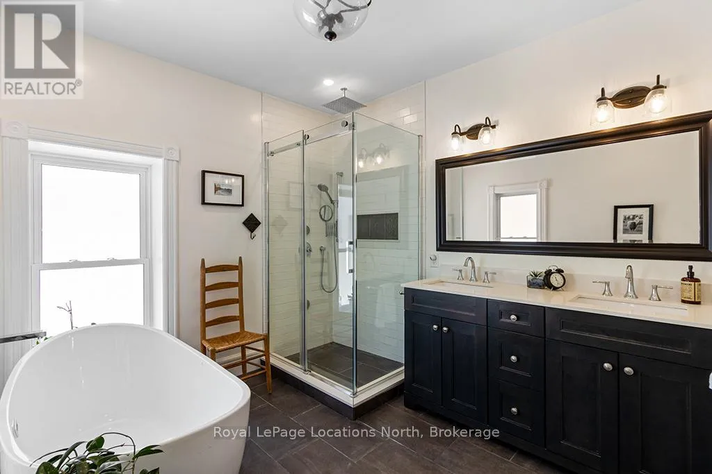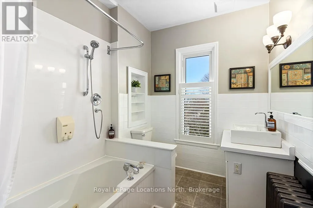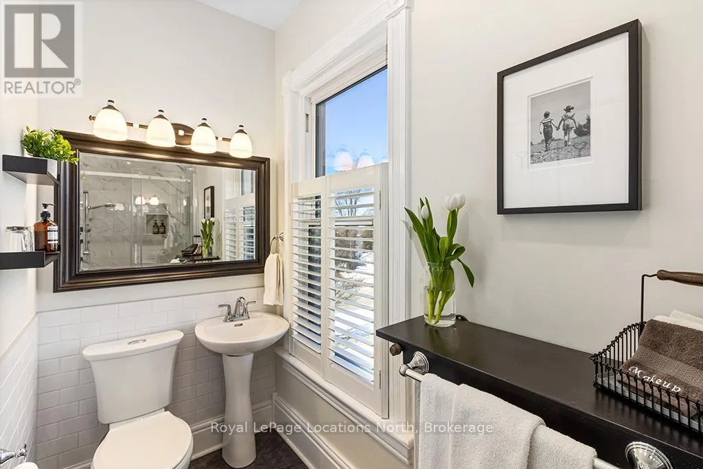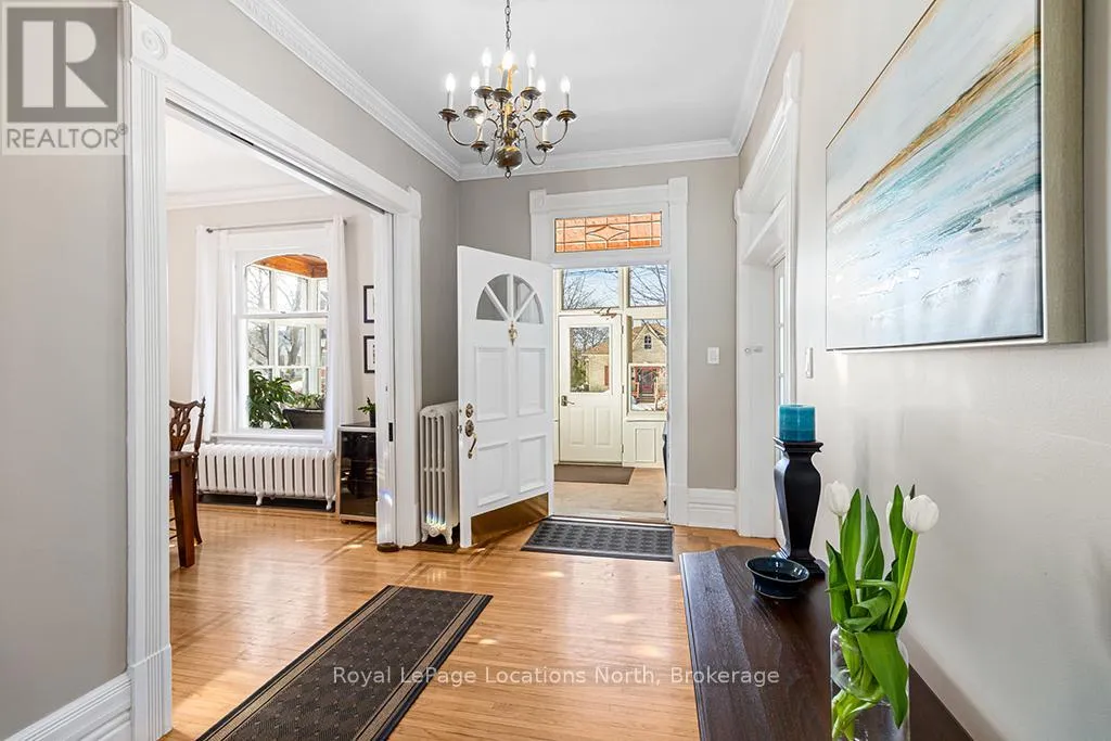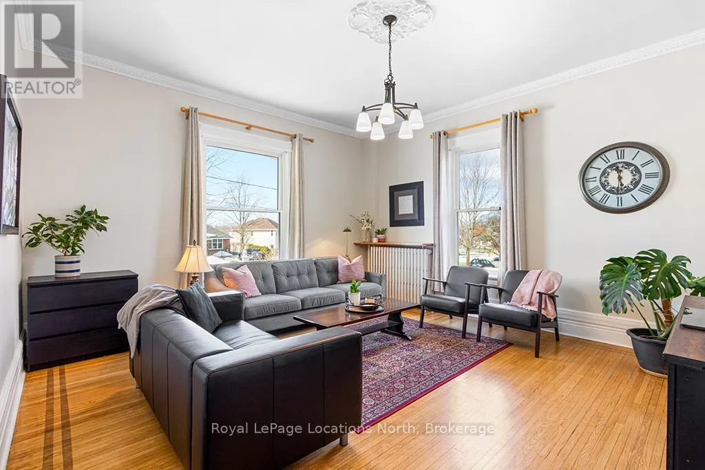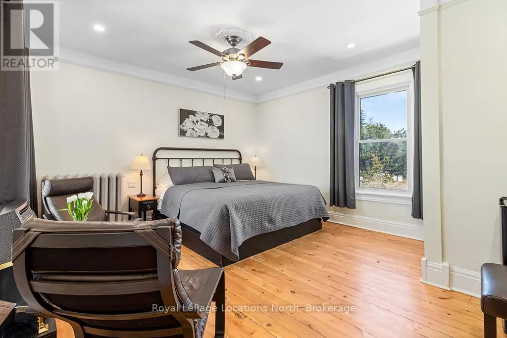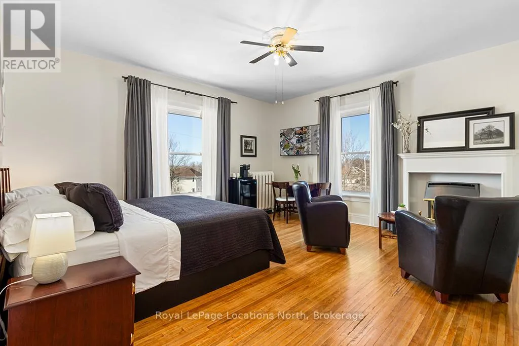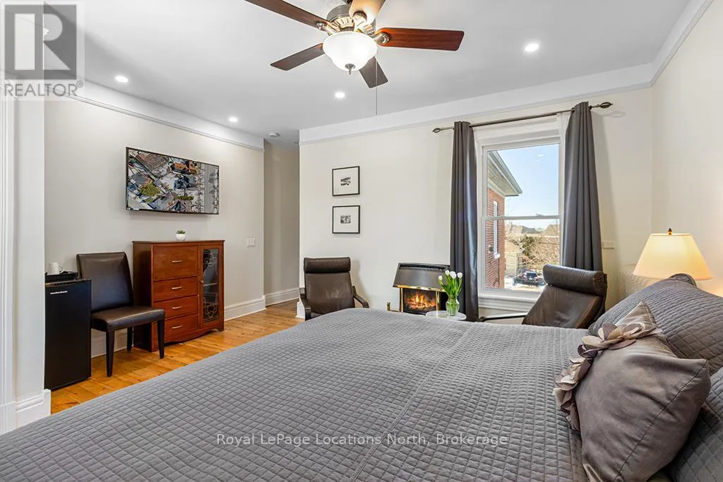 Cross Streets: Colborne St and Church St. ** Directions: Hwy 21 to Nelson Street West to Colborne Street. Enjoy the grandeur of this red brick century home that was once the Manse for the local Presbyterian Church. With 3,400 square feet on three floors, it is a sprawling family home which is currently being used as a fabulous Bed and Breakfast. Four sunny and cheerful bedrooms are on the second floor, all with their own bathrooms, televisions and coffee stations. The hidden gem on the third floor has a large bedroom and living room and top notch air conditioning. This entire home is flooded in natural light. The main floor welcomes you with a lovely enclosed front porch to relax and enjoy the views of this serene, tree-lined, historic, old Ontario neighbourhood. A large dining room, living room and sunny den with a walkout to the deck will make family life a breeze. Managing this large home is easy especially with two stairways, an expansive kitchen with double washer and dryers, two ovens and two refrigerators and a second sink and large island. Gas fireplaces in the large bedrooms and den add warmth and grace to this property. Tall ceilings, wide crown moldings and baseboards point to its Victorian heritage as well as the stained glass windows and oak flooring. The gardens are as beautifully maintained as the home and owners can relax on a deck, in the pergola or just pull up a chair near the flower beds. Goderich is well known for its access to the 130 km Goderich-to-Guelph Rail Trail. But there is more than cycling. This property is three minutes from the farmers' market, outdoor concert venue, shops, the library and quaint cafes. A 15 minute walk and you will be on the eastern shore of Lake Huron for a swim at the beautiful beach, enjoying an ice cream, or a sunset walk on the boardwalk. Within an hour, you can be in Stratford, Kitchener or London. This is a fresh and elegant home full of sunlight and thoughtful and functional design touches. (id:27476)