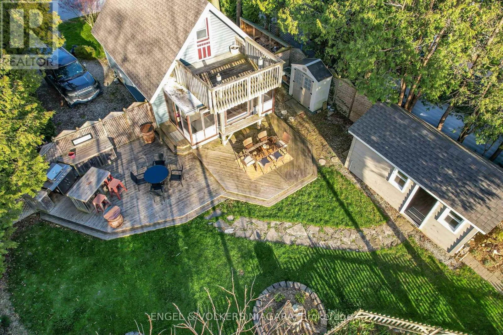 Cross Streets: Highway 21. ** Directions: Highway 21 to Bluewater Beach to Andrew Crescent. LAKEVIEW 4 season cottage with a 3 season sunroom, adorable board-and-batten bunkie, fenced yard and loads of privacy! Take in the magnificent Lake Huron views and sunsets from any of the 4 ground level seating areas or the upper level deck. Lovely community on the outskirts of Goderich and only minutes to Bayfield. Fantastic outdoor cooking area with island and bar fridge. Cosy around the gas fireplace which heats cottage sufficiently in winter. Enjoy the sunroom on a rainy evening or a cool morning. Take your morning coffee or your evening wine out of the bedroom to the upper level deck. Super cute bunkie with 2 built-in bunk beds and separate storage area. 4 piece bathroom with newer window, toilet, and flooring. Several updates make this cottage move-in ready. Roof 2017, Bunkie with separate hydro line 2017, front screen door, toilet, bathroom window and flooring, pine shiplap accent livingroom walls, curbstop and yard hydrant 2019, new front deck 2020. New flooring 2023. Meander through the hosta garden beside the driveway. 2 sheds for ample storage. Access to lake is via community path. 2 bedrooms upstairs, pullout couch in living room and 4 single beds in bunkie, so the cottage can accommodate 10 for sleeping. Affordable utility costs. Water included in association fee. Parking for 3 vehicles in driveway. A true gem! (id:27476)