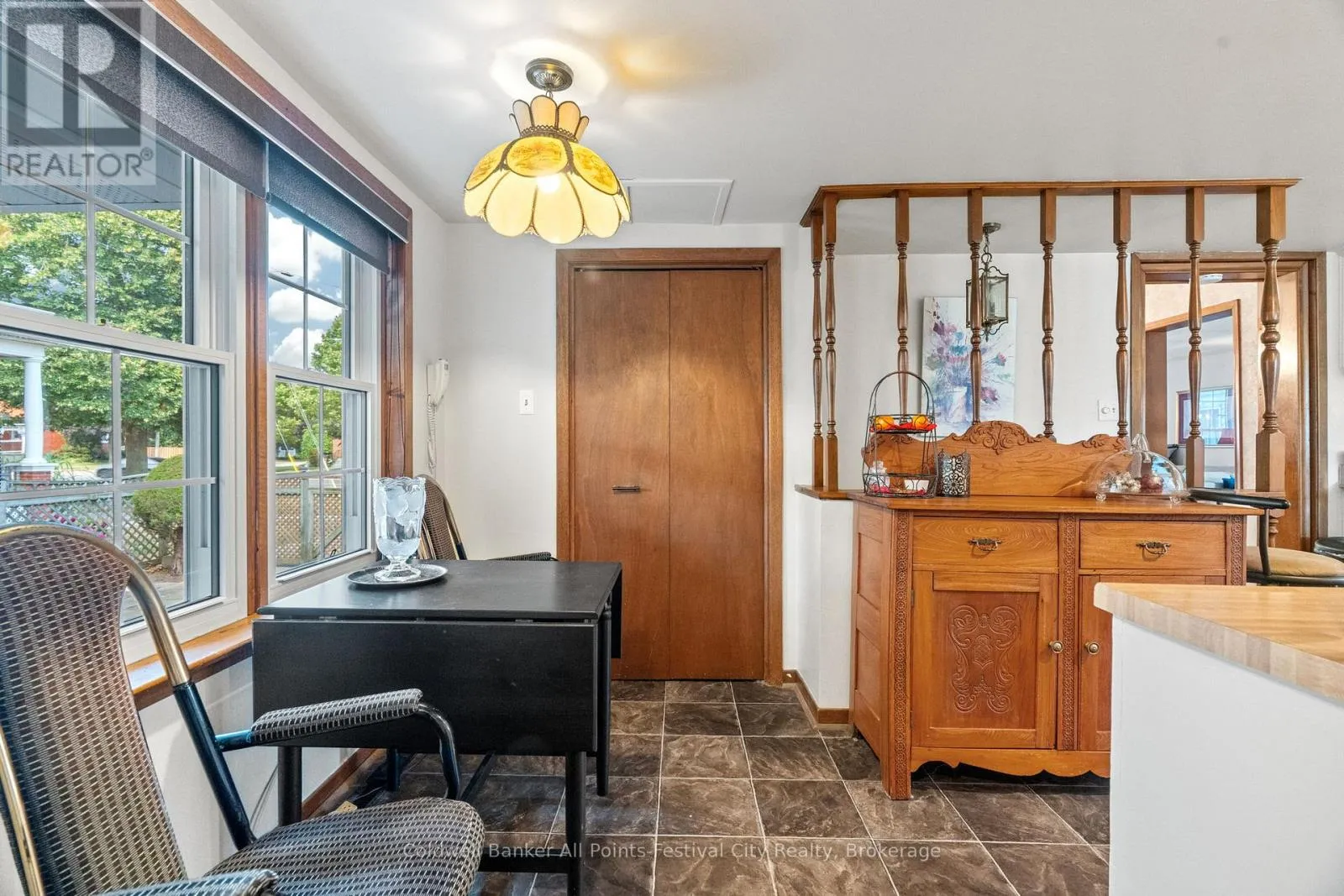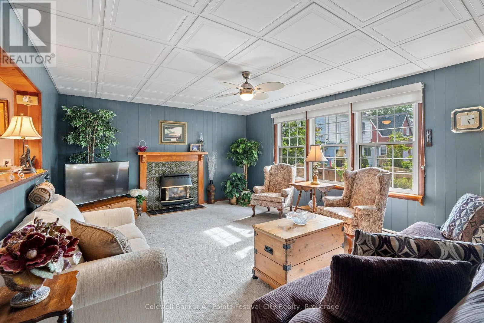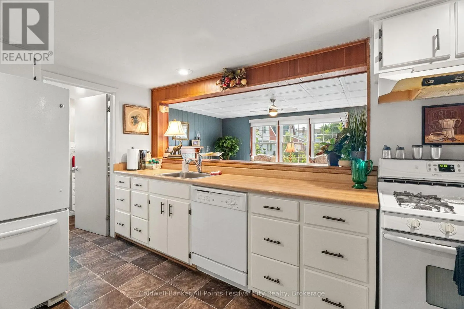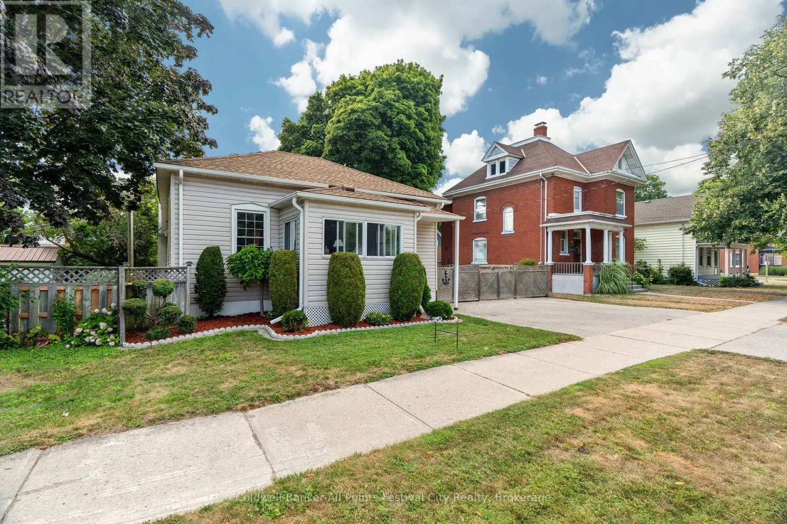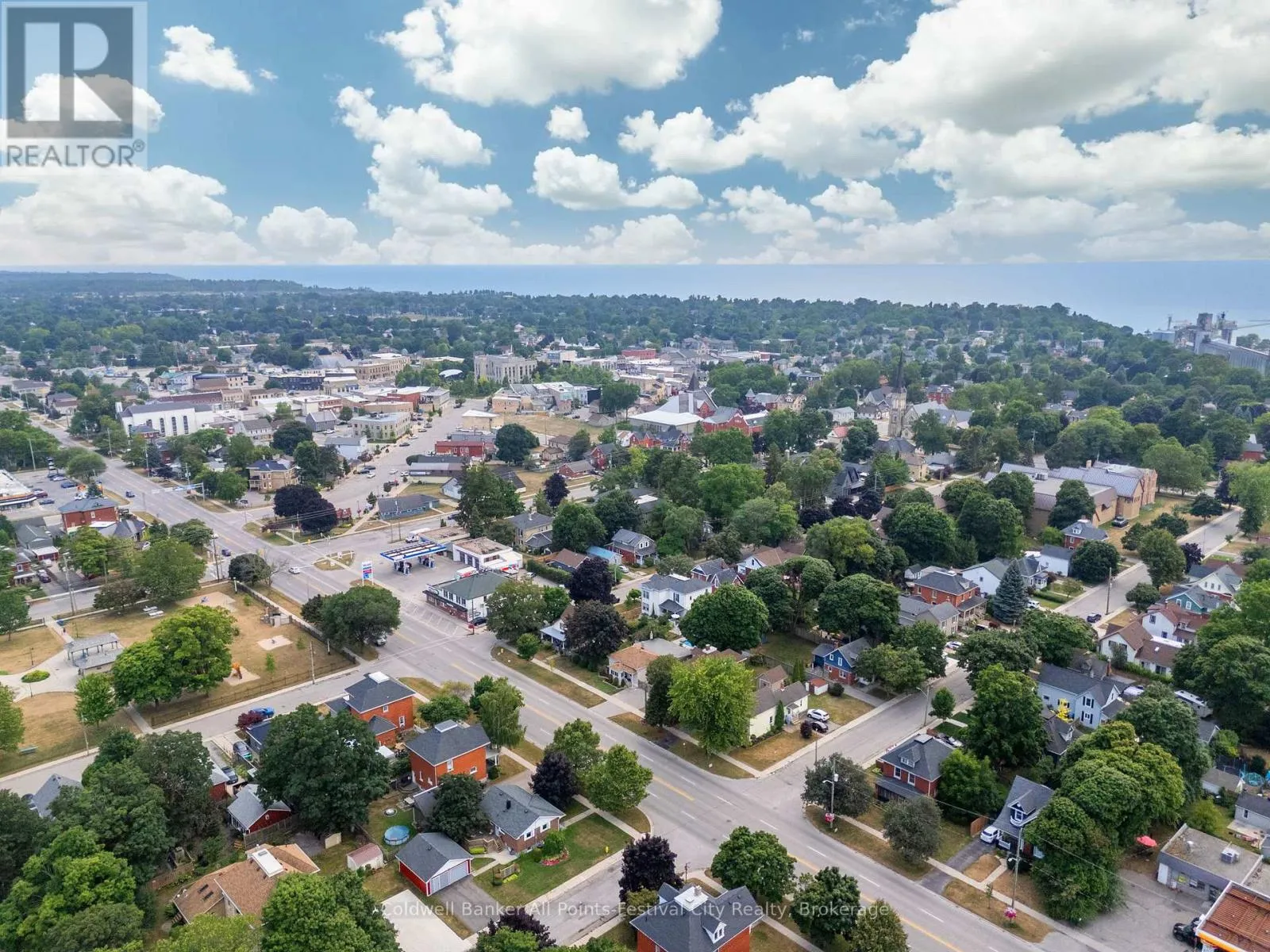 Cross Streets: Bruce St. ** Directions: Hwy 21 N (Victoria St N). Discover this charming bungalow style home, just off the square in beautiful downtown Goderich. Featuring 2 bedrooms and 1 bath this property is perfect for first-time buyers or retirees. The love and care is evident throughout. The seasonal front porch greets you upon arrival, a great place to kick off shoes and hang coats. With all the feels of an Ontario cottage, the inviting front hall opens into a double living room and the formal dining room. Through to the spacious kitchen, which overlooks the large family room with a cozy gas fireplace, creating an inviting space for gatherings. Incredible storage throughout this home. Enjoy the convenience of a fenced-in yard, ideal for outdoor activities and relaxation. Located within walking distance to Victoria splash pad park, downtown shops and dining, and the Menesetung bridge and G2G trail, this home offers both comfort and community. Call today for more on this lovely property. (id:27476)